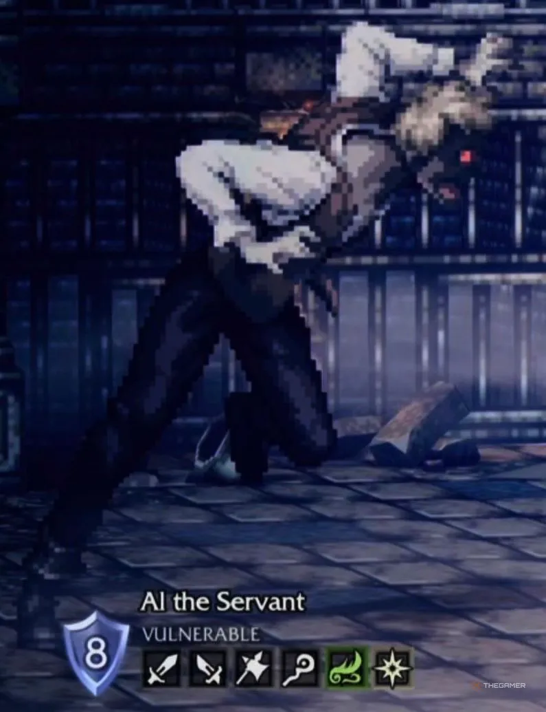 Использование защиты против его «Дикого кровавого когтя» обычно достаточно для выживания, особенно если Велнорт наложил на вас «Эликсир защиты». Главное — поддерживайте здоровье персонажей с помощью Мэйси и Стии. Вдвоём они смогут пробить щит Эла, даже если вы не завербовали других персонажей, если будете грамотно расходовать очки усиления (BP).