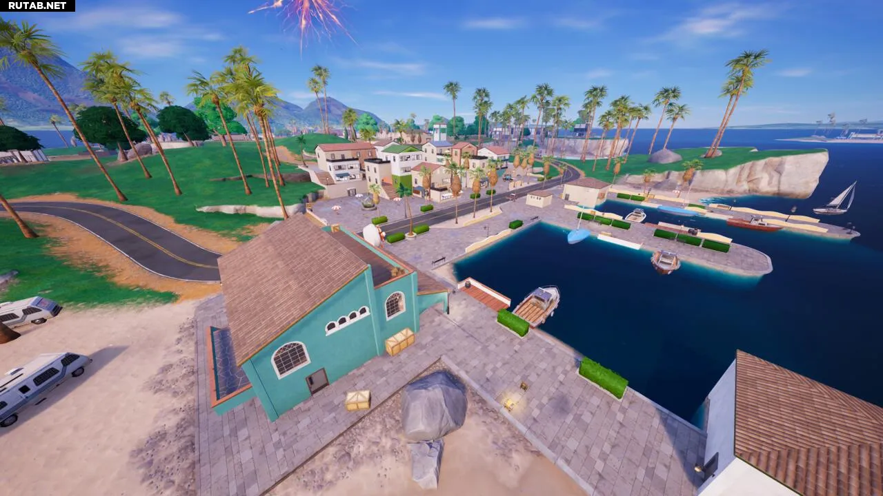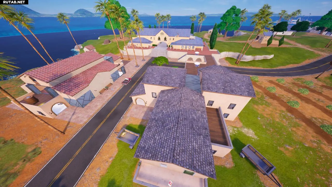 Новая карта вдохновлена средиземноморской архитектурой и географией. Однако две локации на ней заимствованы из свежей седьмой главы, представленной 29 ноября. Речь идёт о «Доме Холлоуэй» (отсылка к персонажу боевого пропуска Кэт Холлоуэй) и «Бутик-Бухте», стилизованной под магазины из Latte Landing и Ripped Tides.