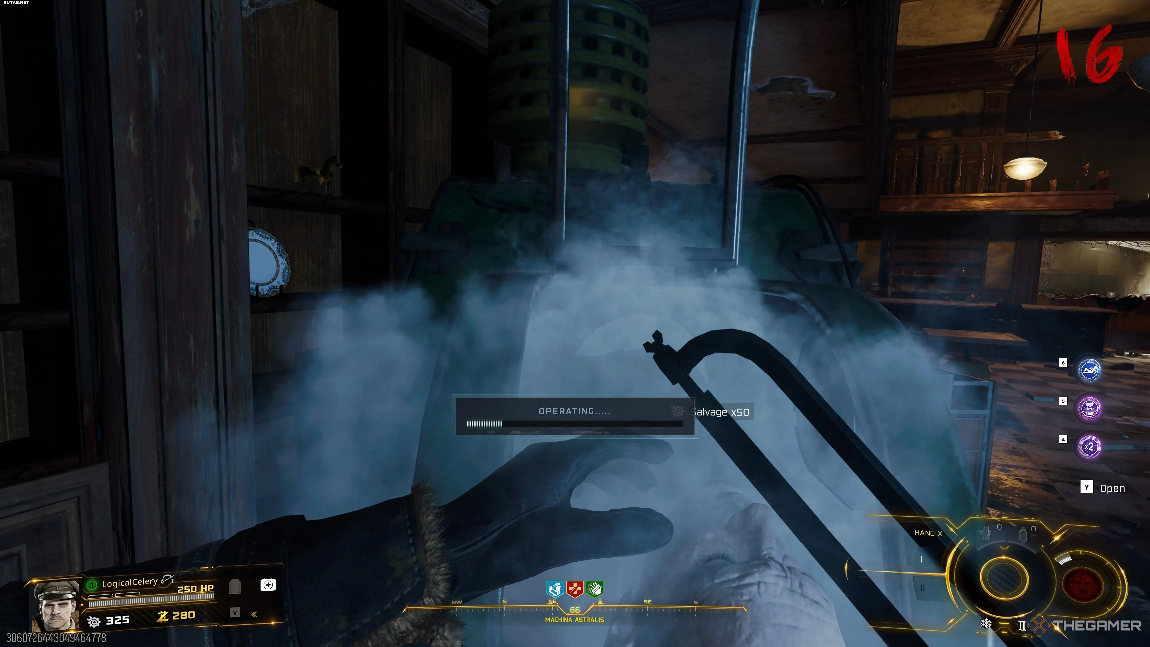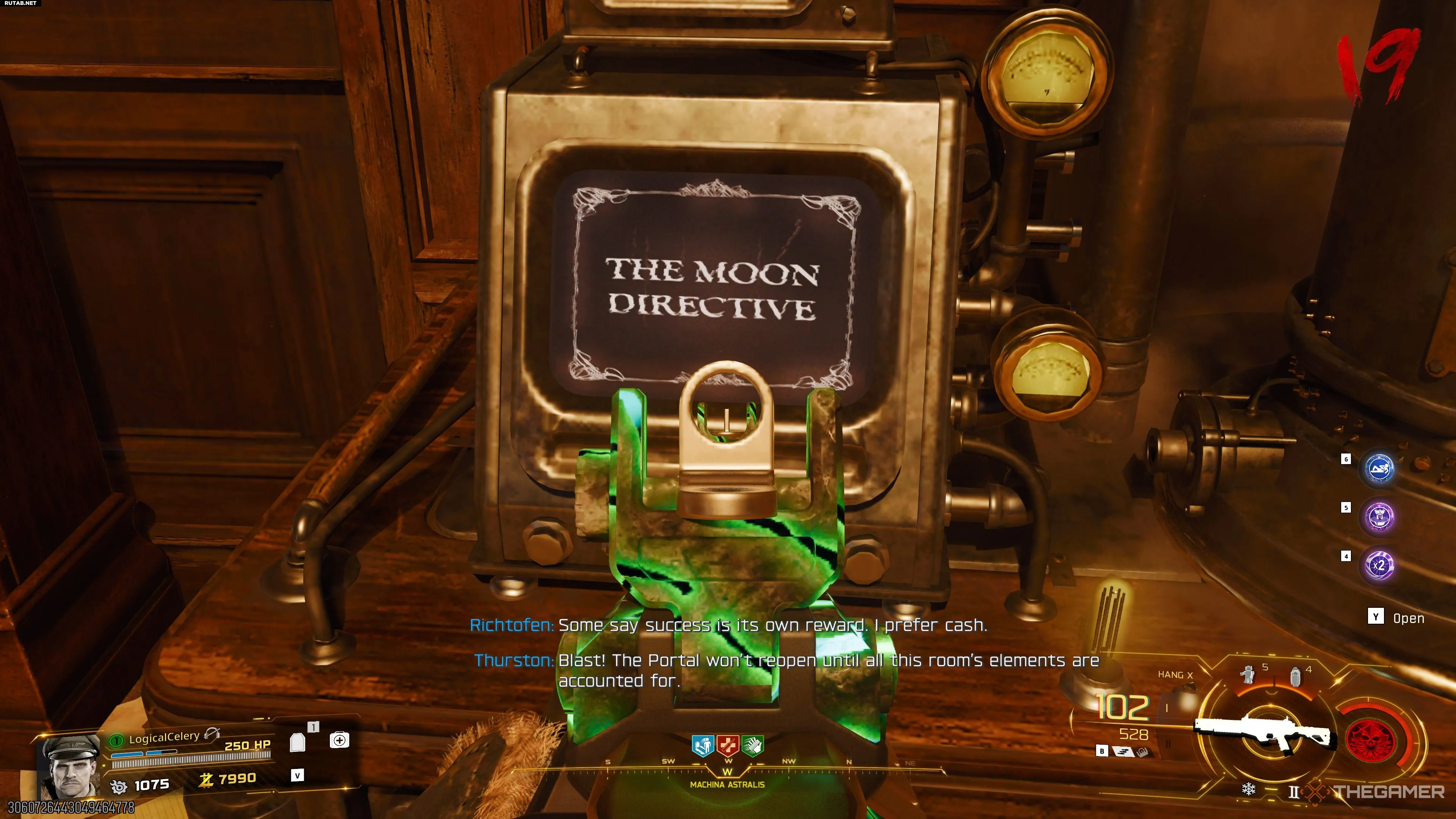 Как только они зарядятся, экран вспыхнет белым. Теперь вы можете взаимодействовать с аппаратом, в котором находится мозг Терстона, чтобы выстрелить по Калтерис лазером.