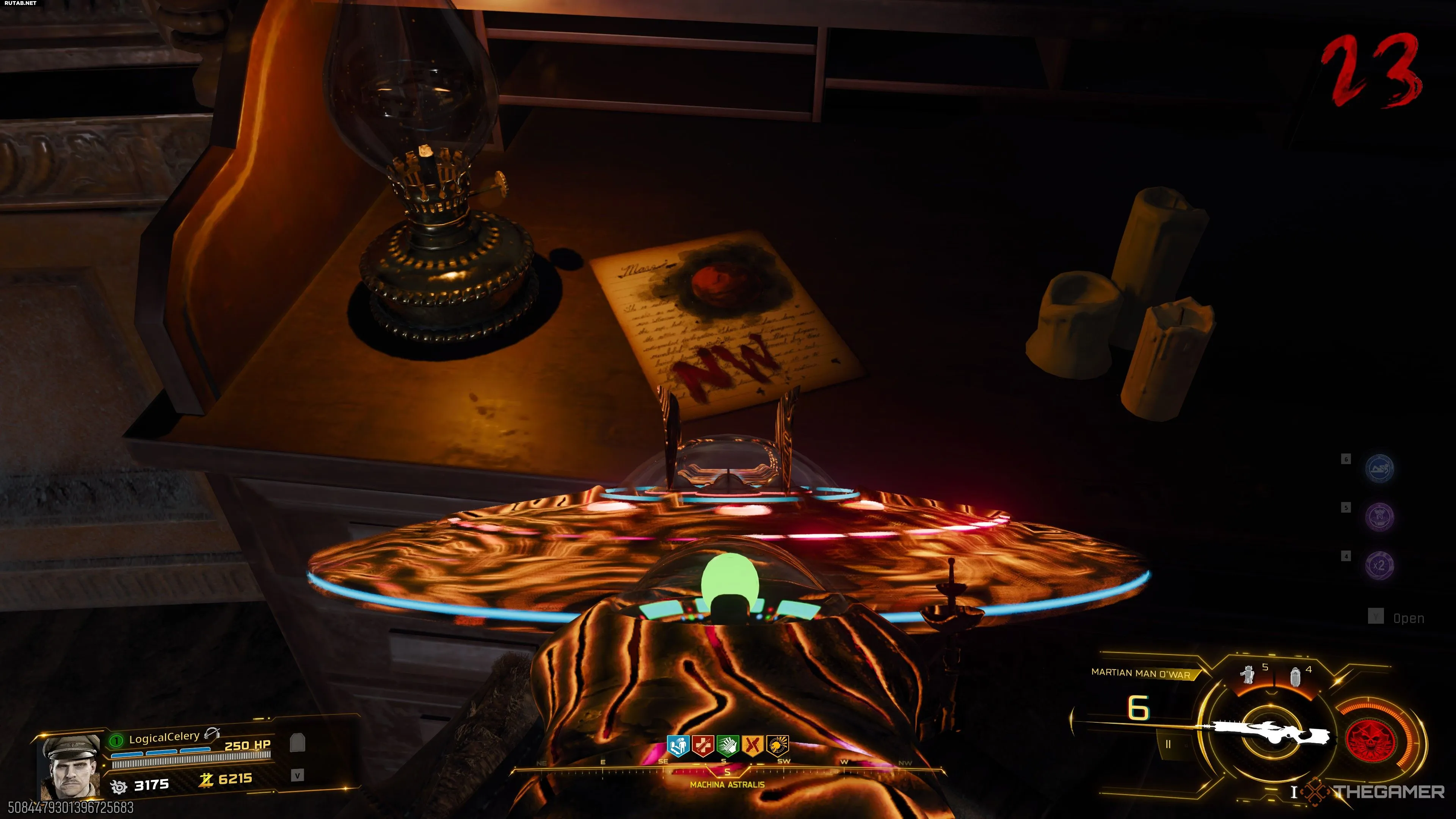 Вернитесь к телескопу в Обсерватории и найдите Марс. Как только перекрестие окажется точно на планете, запишите координаты (на изображении: 4225). Они генерируются случайным образом в каждой игре.