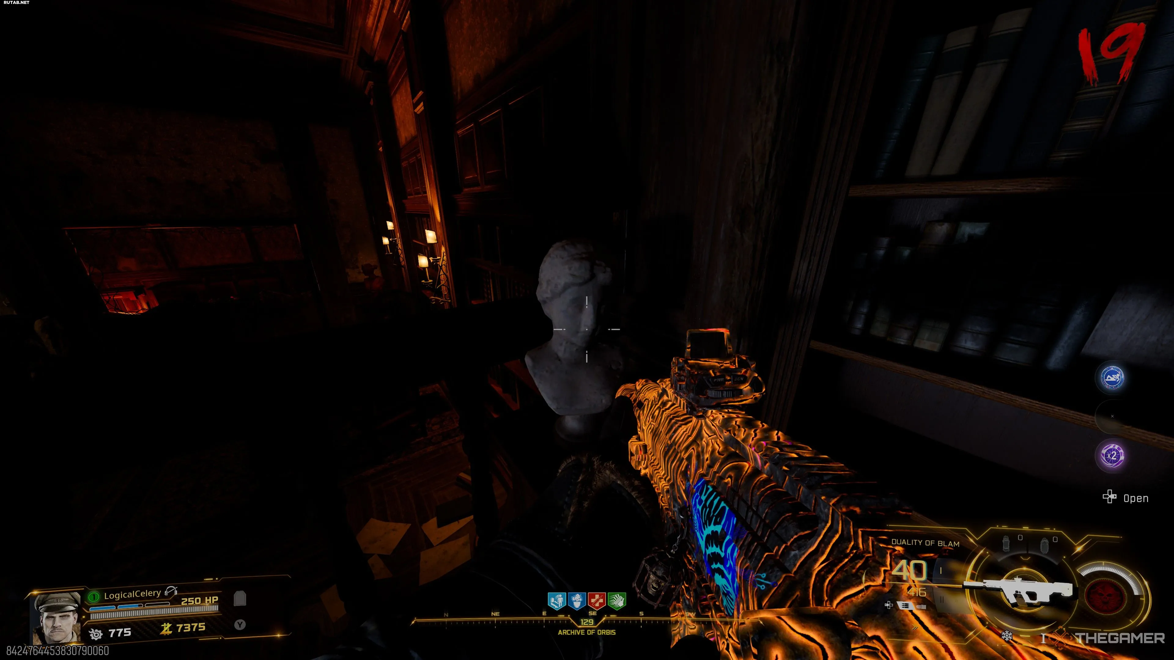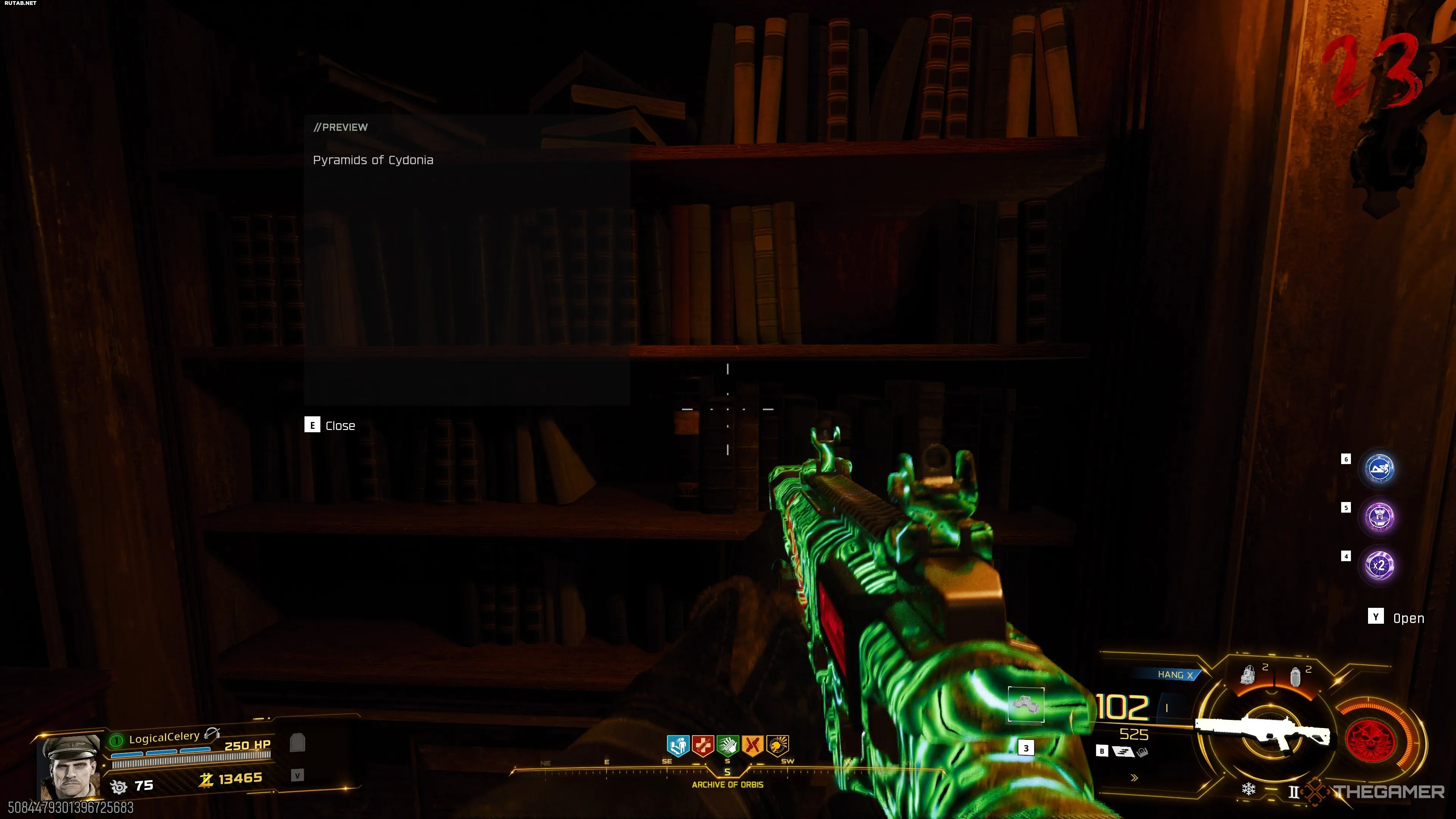 В «Архиве Орбиса» вы найдёте три статуи-головы рядом с несколькими книжными полками. Взаимодействуйте с каждой полкой, и на ней отобразится название романа.