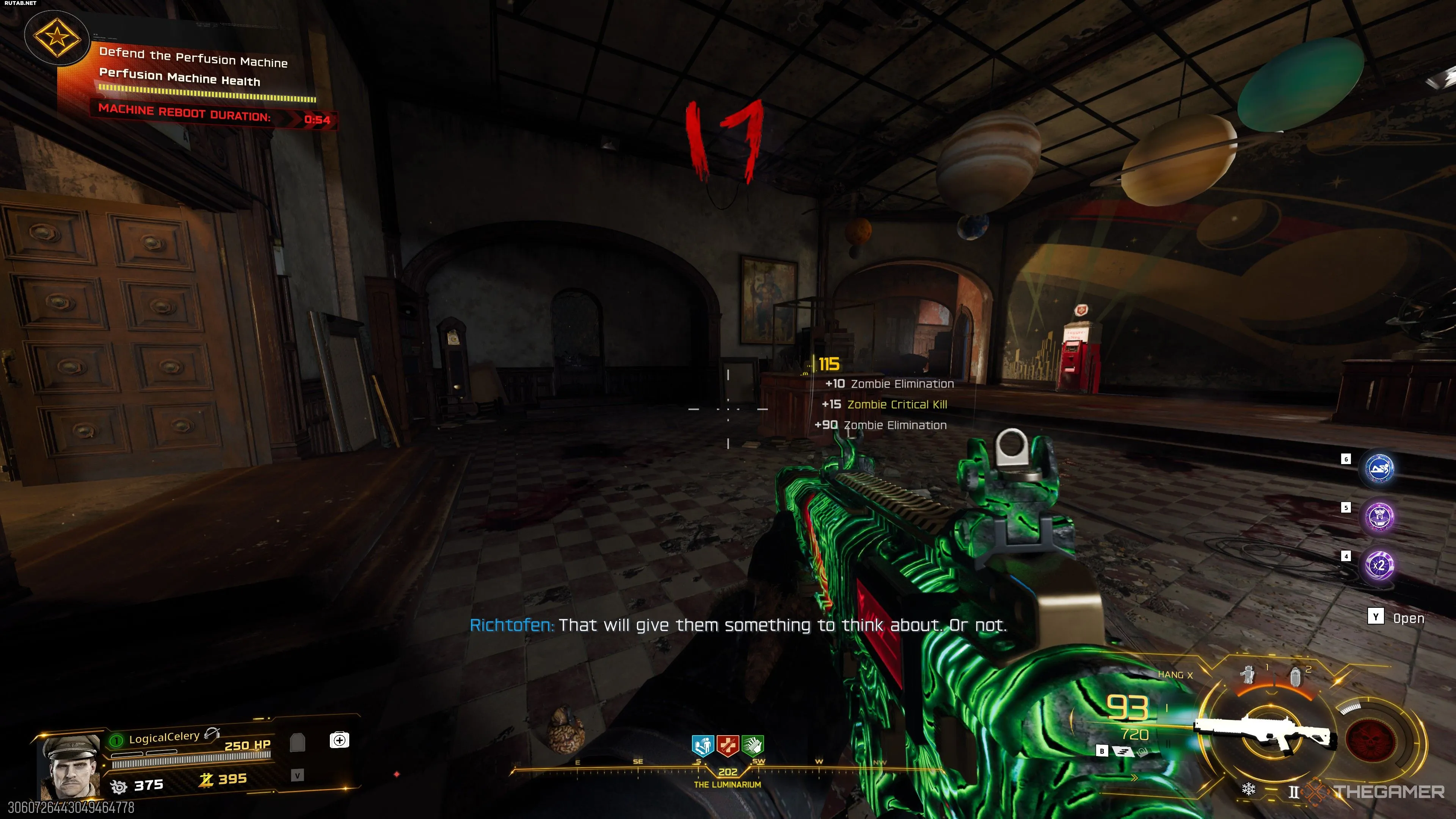 Взаимодействуйте с мозгом Терстона, чтобы запустить блокировку портала в Машине Астралис. Вам предстоит защищать телепорт от О.С.К.А.Р., который периодически стреляет по нему НЛО.