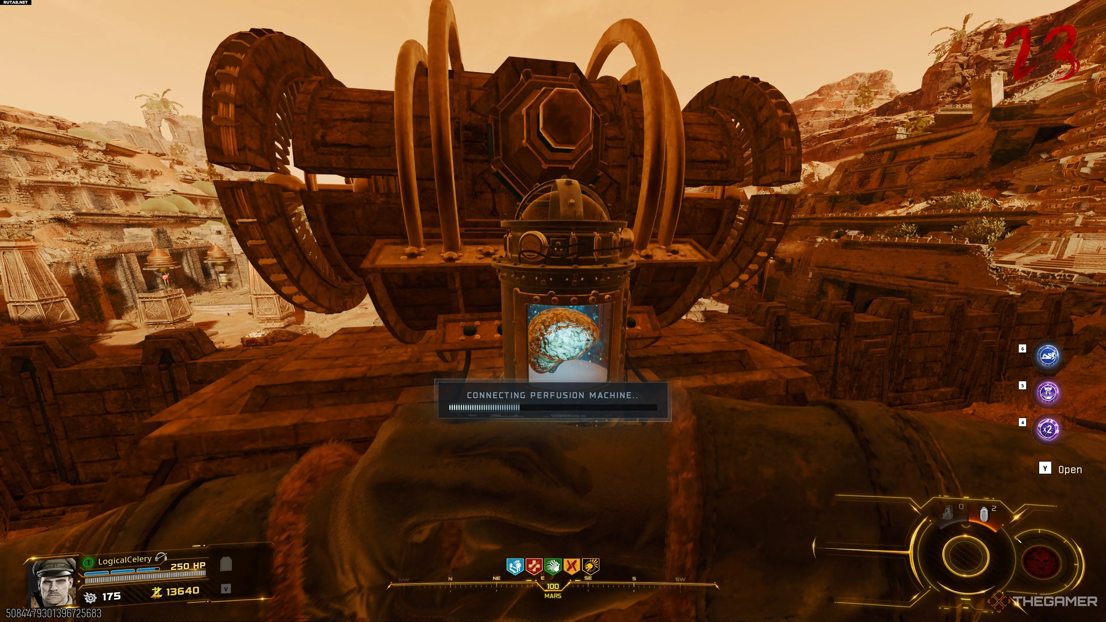 Оказавшись на Марсе, добегите до центральной платформы и поднимите мозг Терстона.