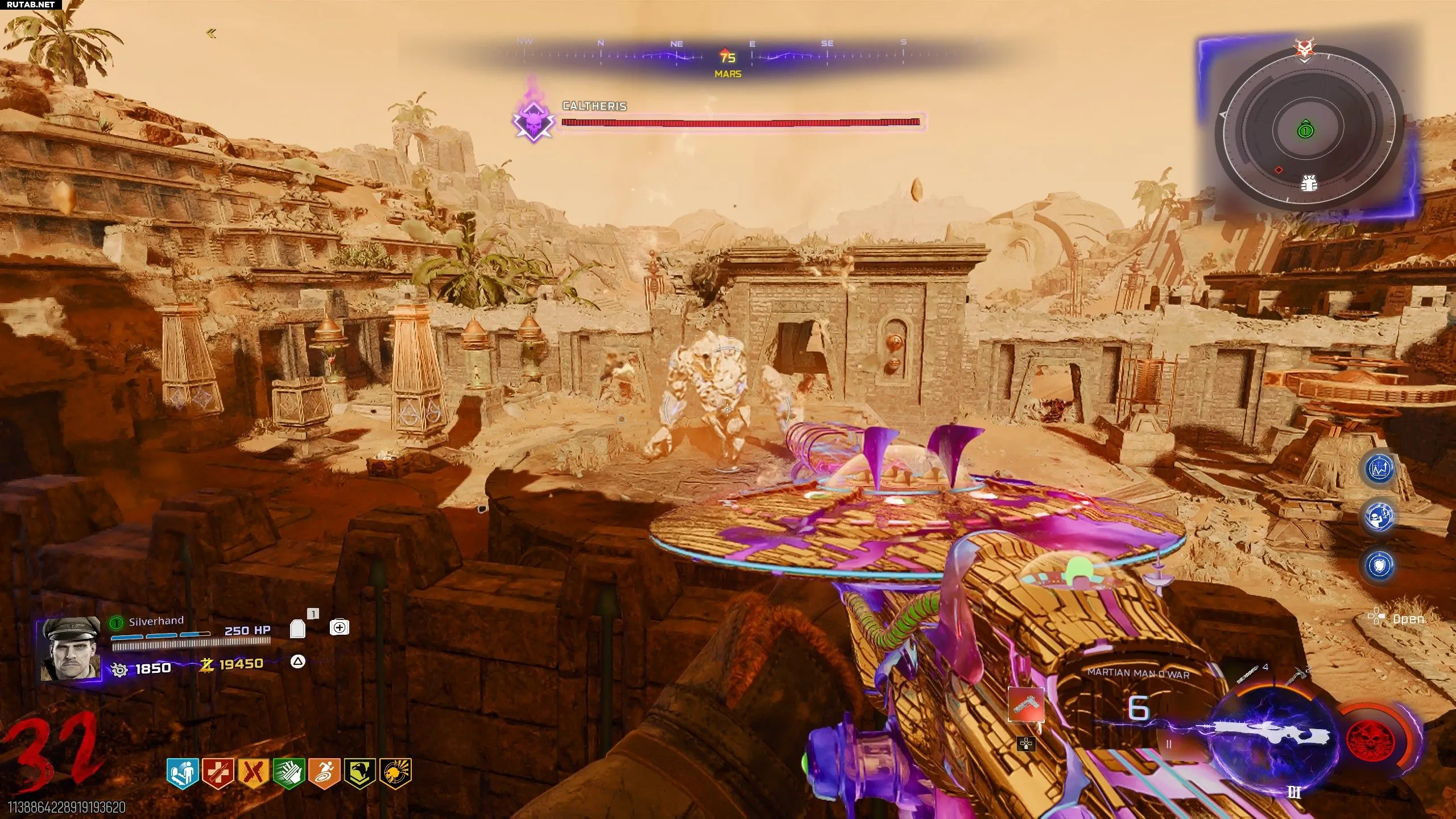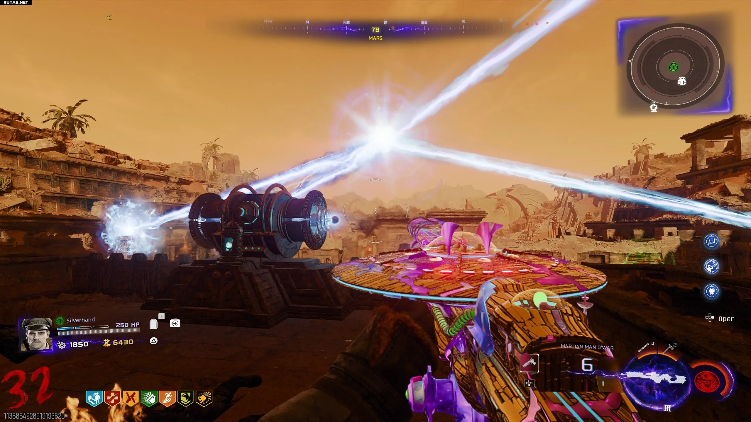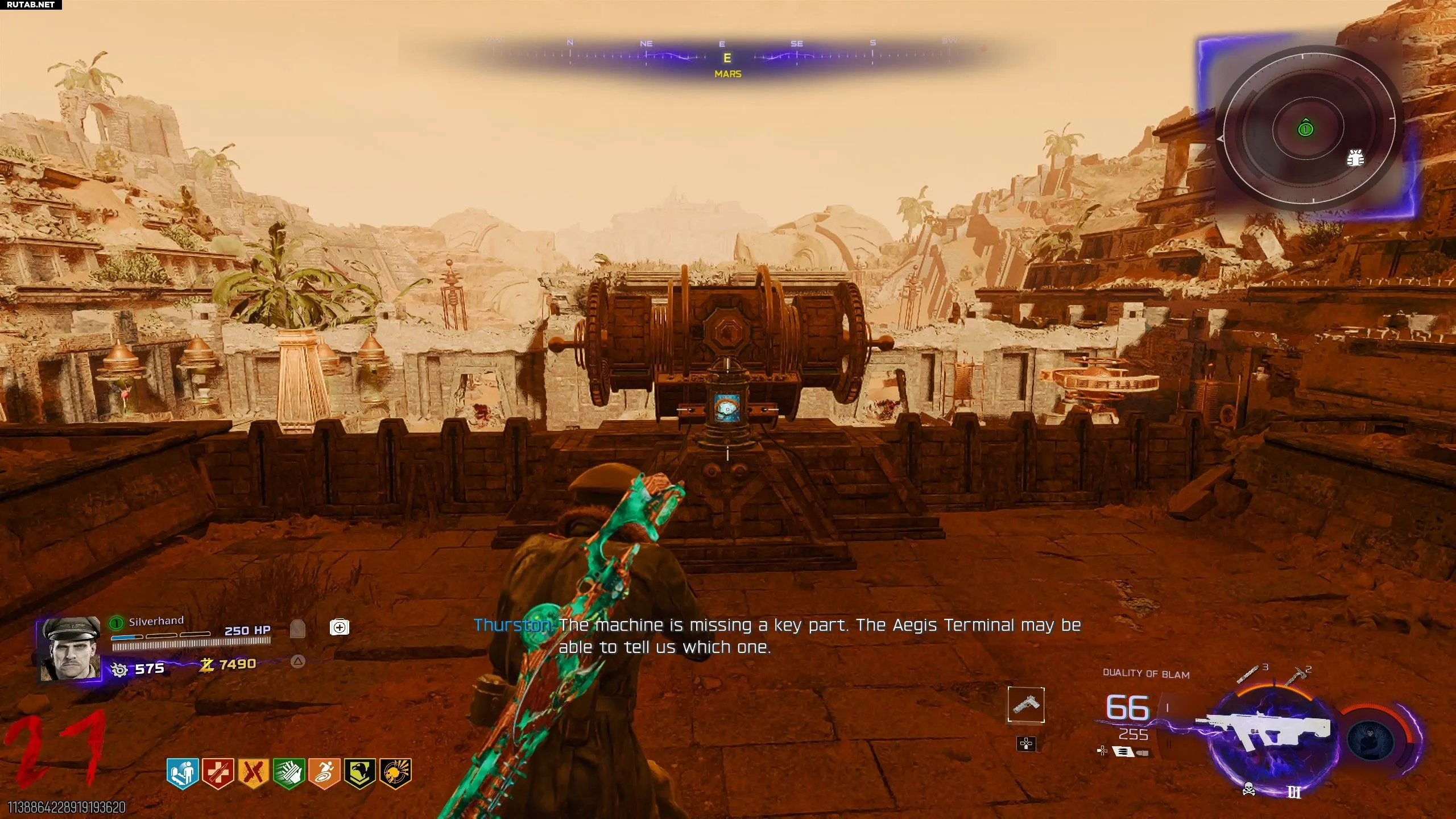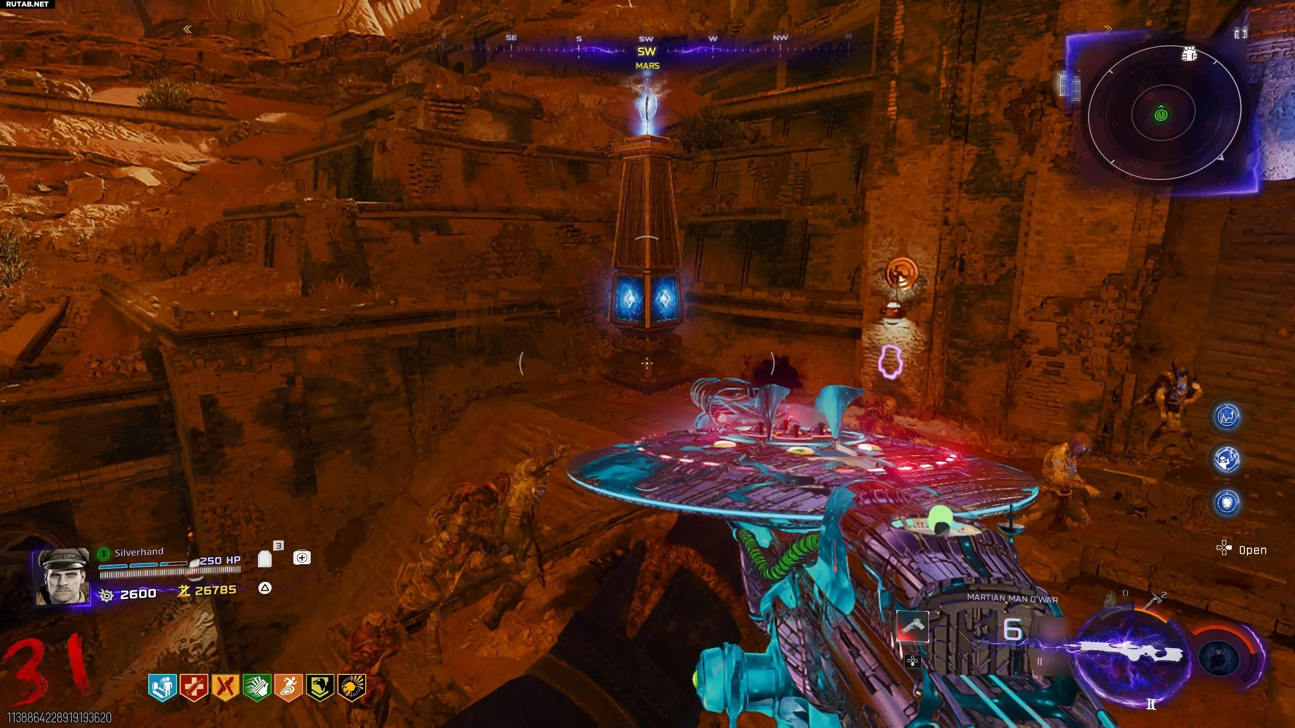 Оказавшись на Марсе, направляйтесь к центру и подберите мозг. Его можно поместить на алтарь в дальней части карты, где находится портал, ведущий обратно в Астру Малориум. Теперь в начале раунда можно взаимодействовать с мозгом, чтобы воспроизвести звук. Как только он прозвучит, немедленно бегите к юго-восточному отверстию в стене, откуда вдалеке будут видны четыре пилона. Стрелять в них нужно в следующем порядке: задний правый → задний левый → передний правый → передний левый (от самого дальнего к самому ближнему к вам). При правильном выстреле пилон загорится синим светом.