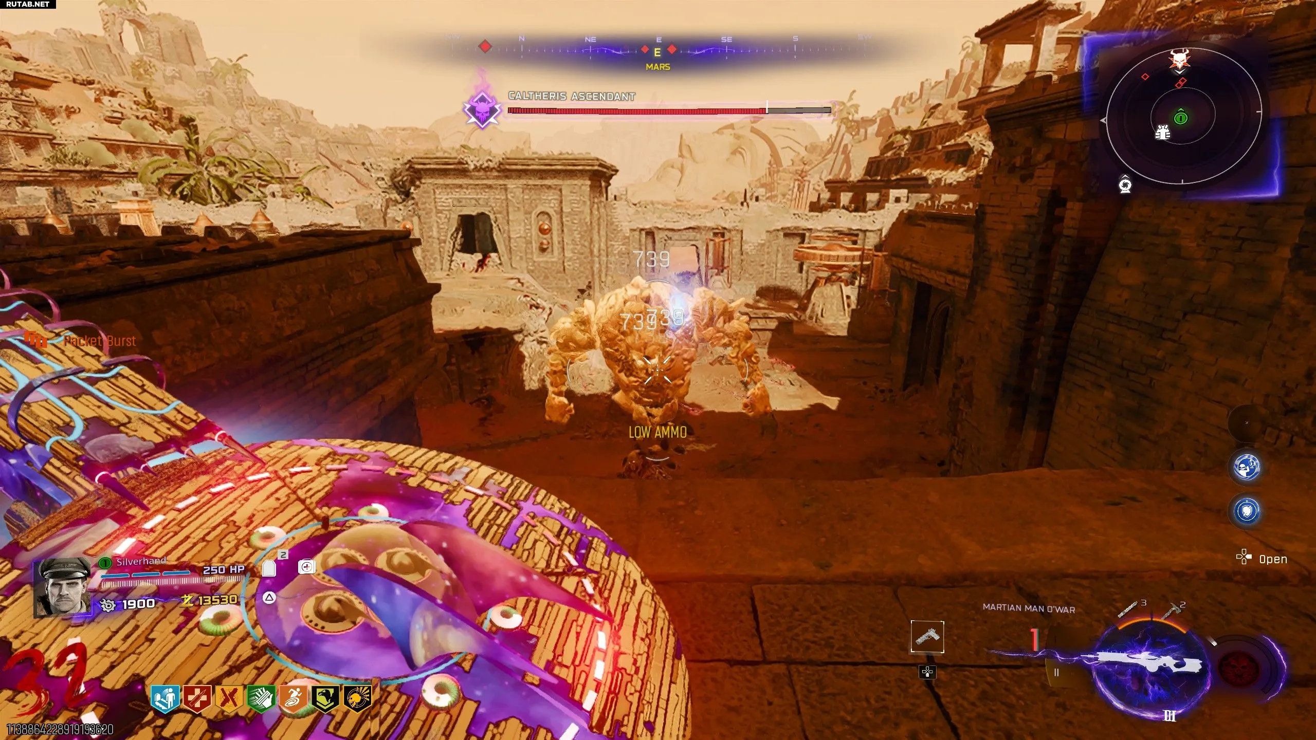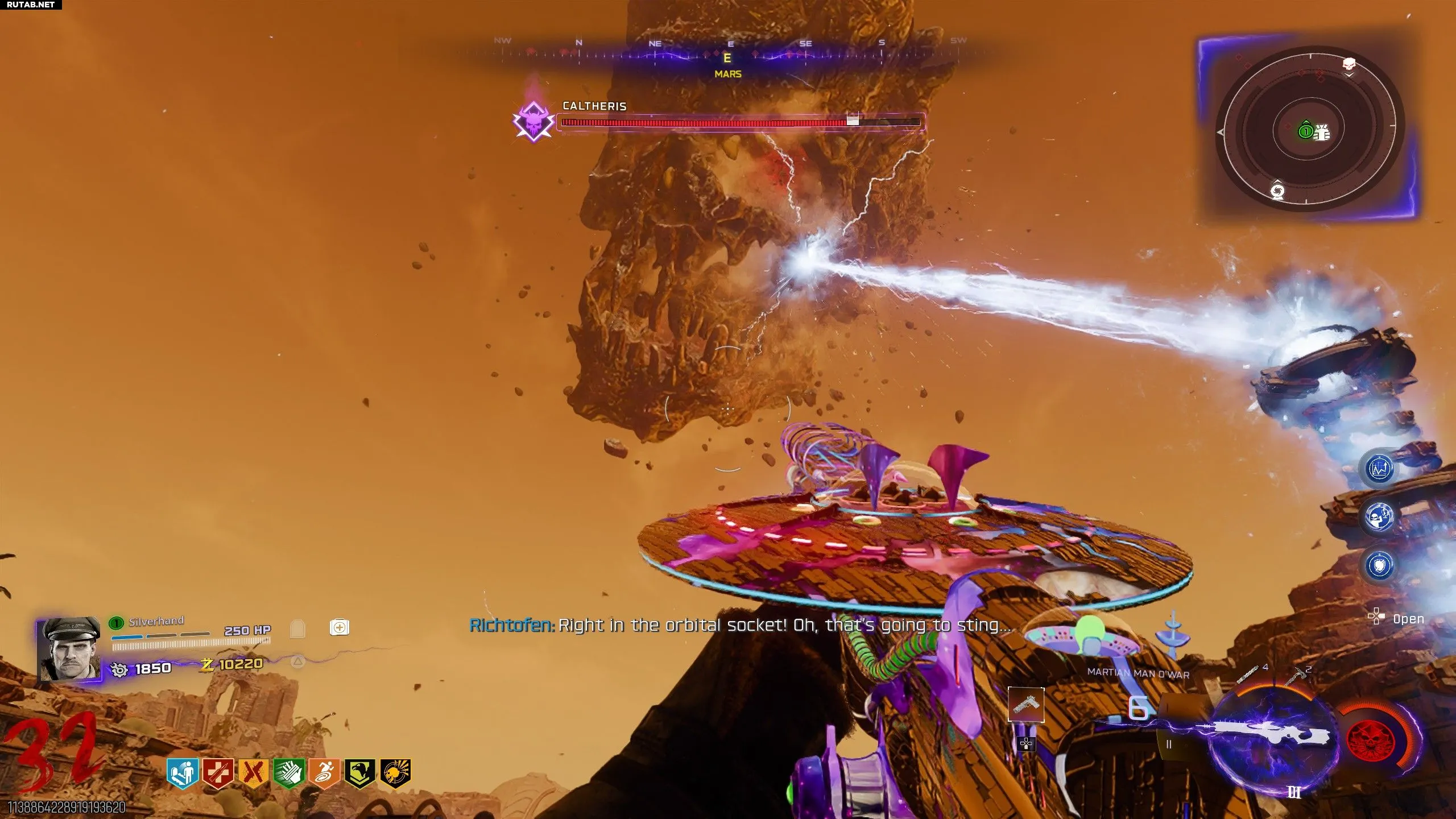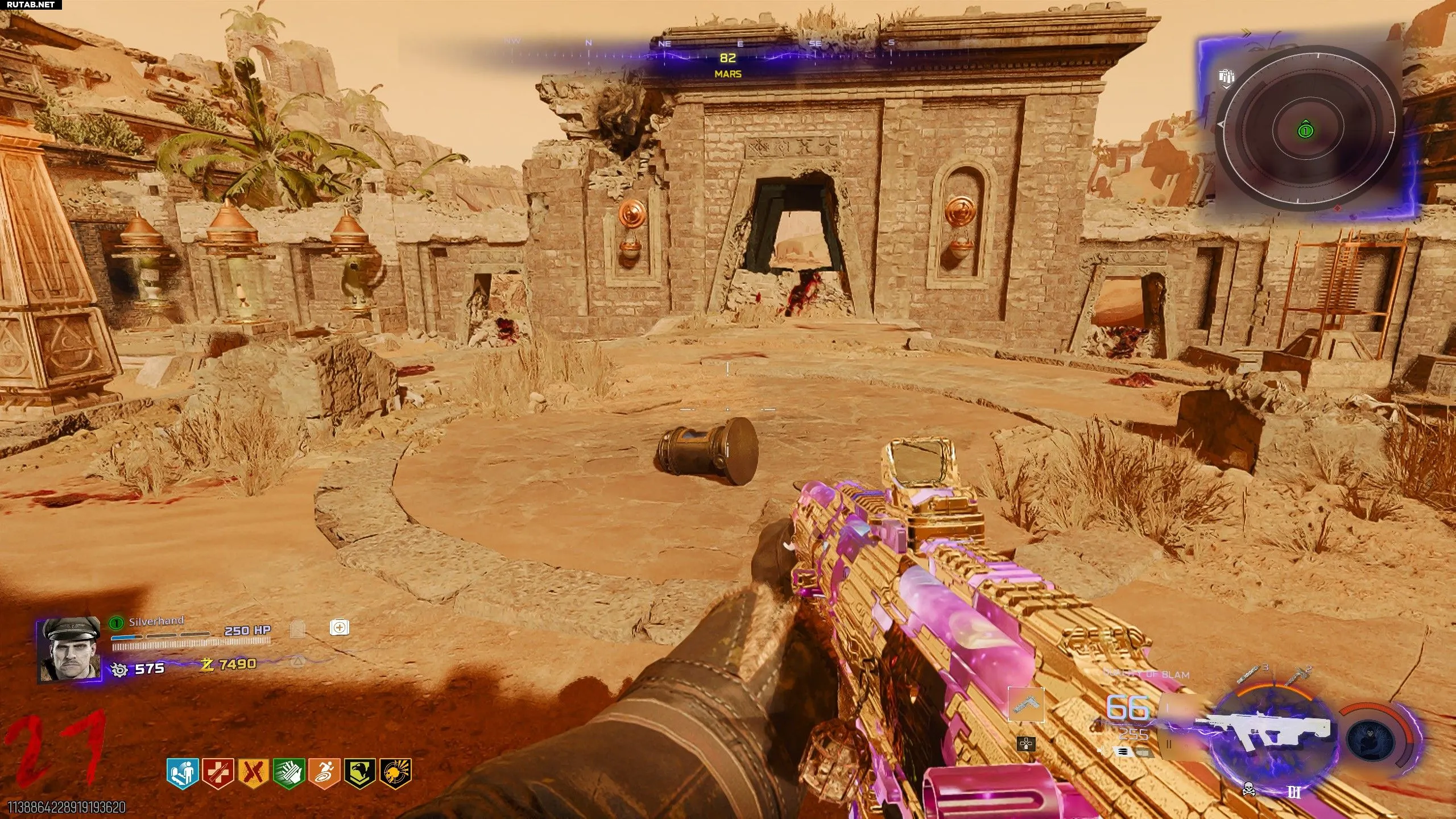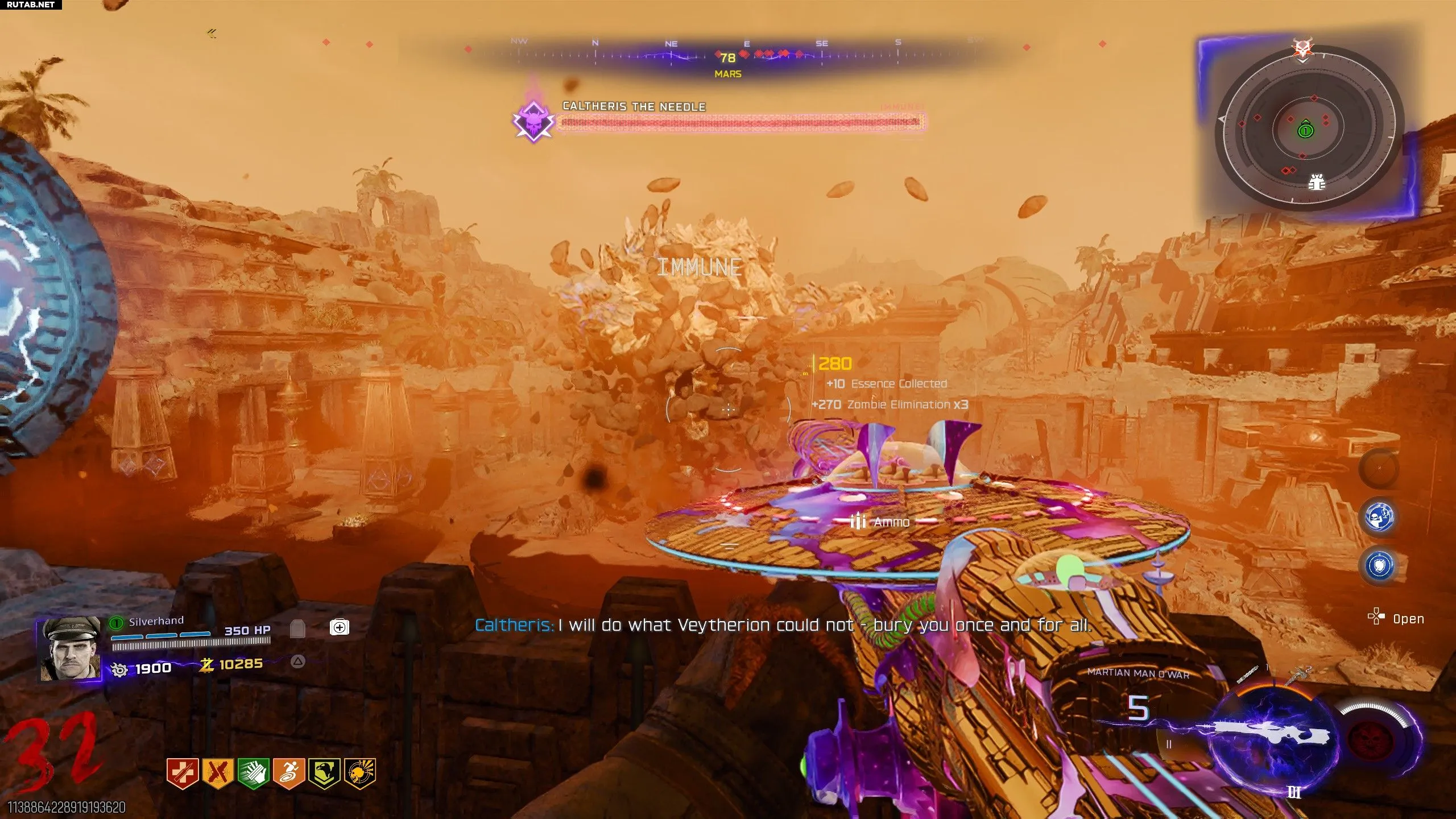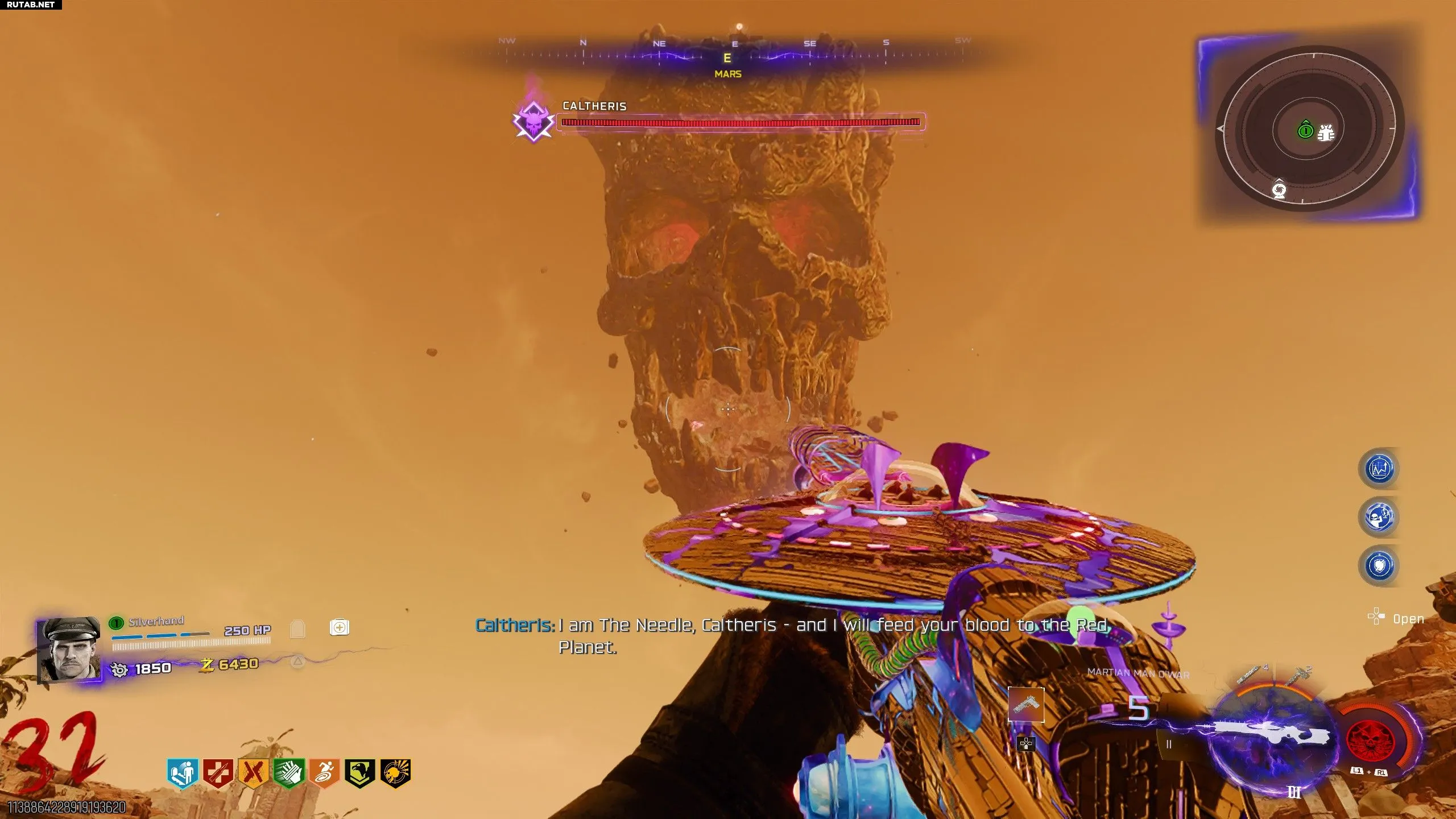 Оказавшись на Марсе, направляйтесь к центру и подберите мозг. Его можно поместить на алтарь в дальней части карты, где находится портал, ведущий обратно в Астру Малориум. Теперь в начале раунда можно взаимодействовать с мозгом, чтобы воспроизвести звук. Как только он прозвучит, немедленно бегите к юго-восточному отверстию в стене, откуда вдалеке будут видны четыре пилона. Стрелять в них нужно в следующем порядке: задний правый → задний левый → передний правый → передний левый (от самого дальнего к самому ближнему к вам). При правильном выстреле пилон загорится синим светом.