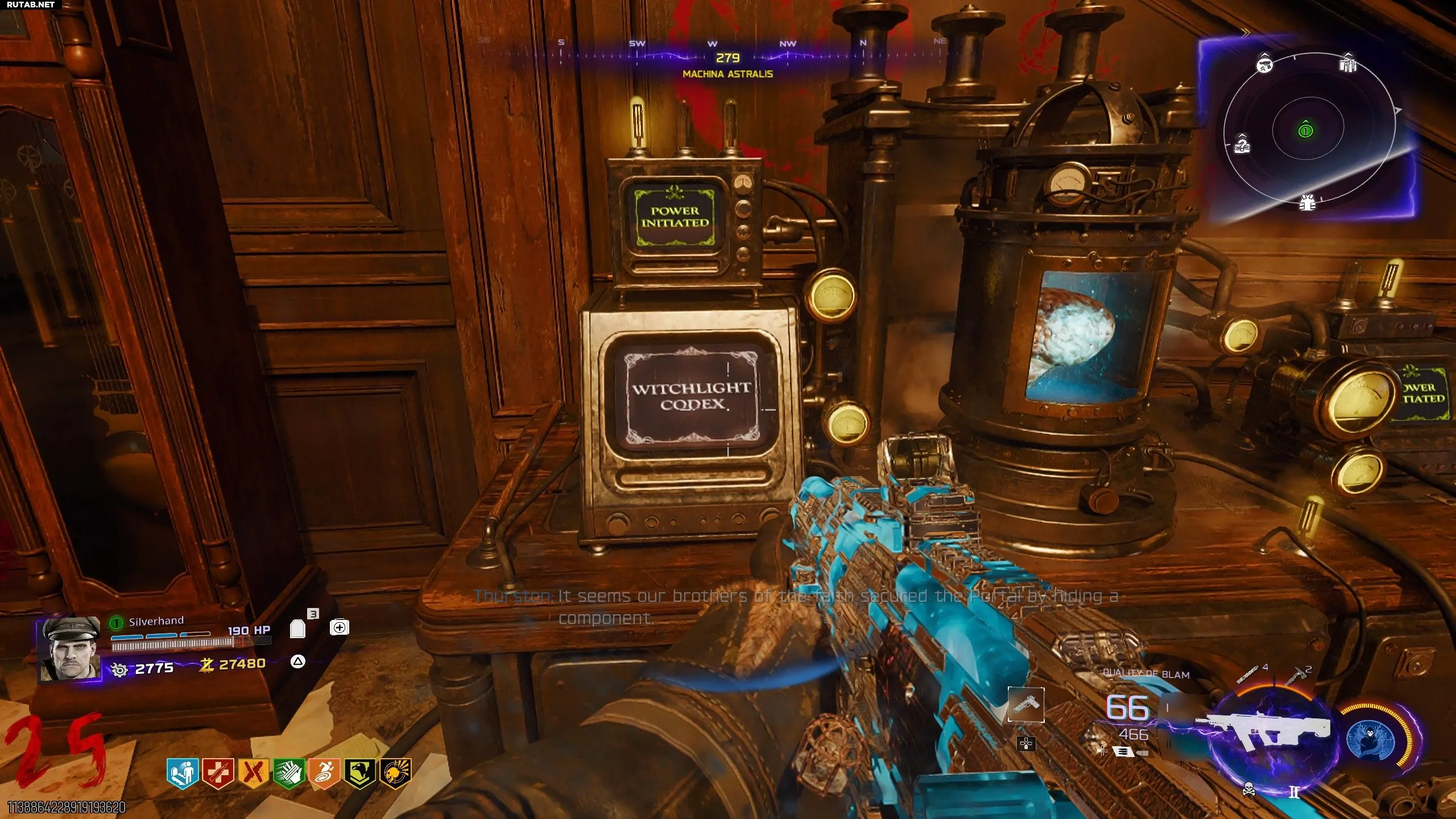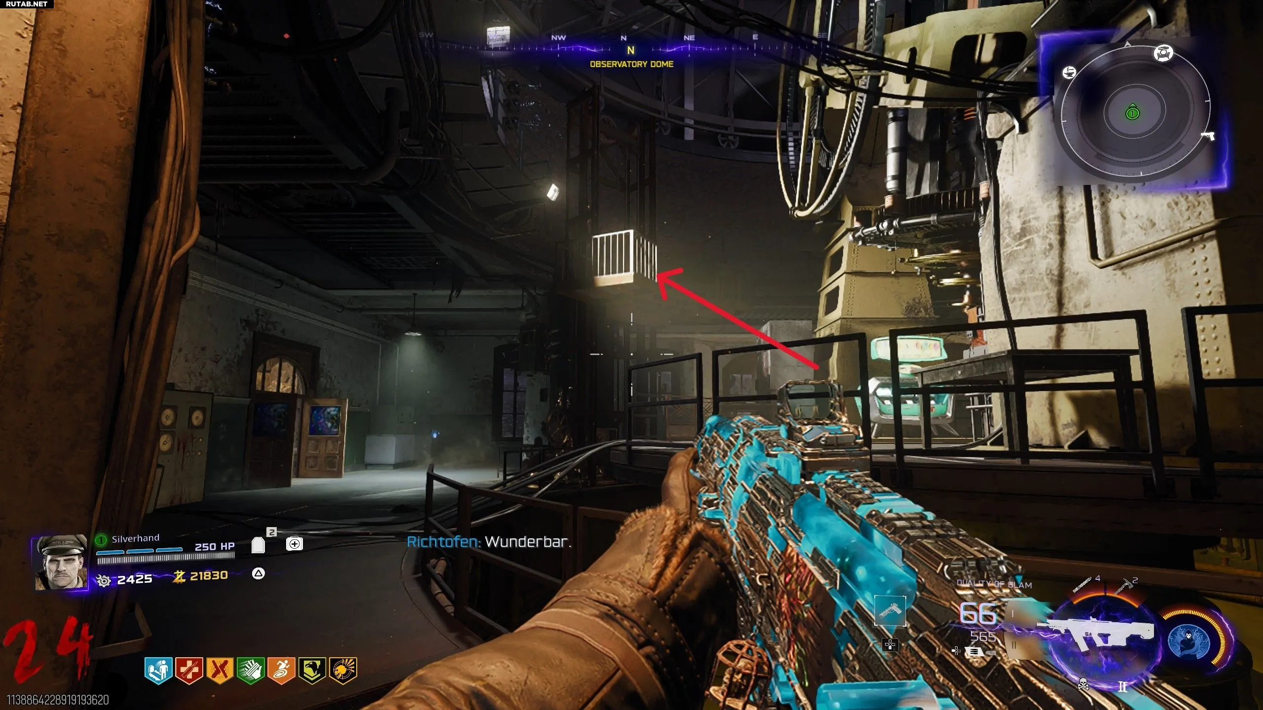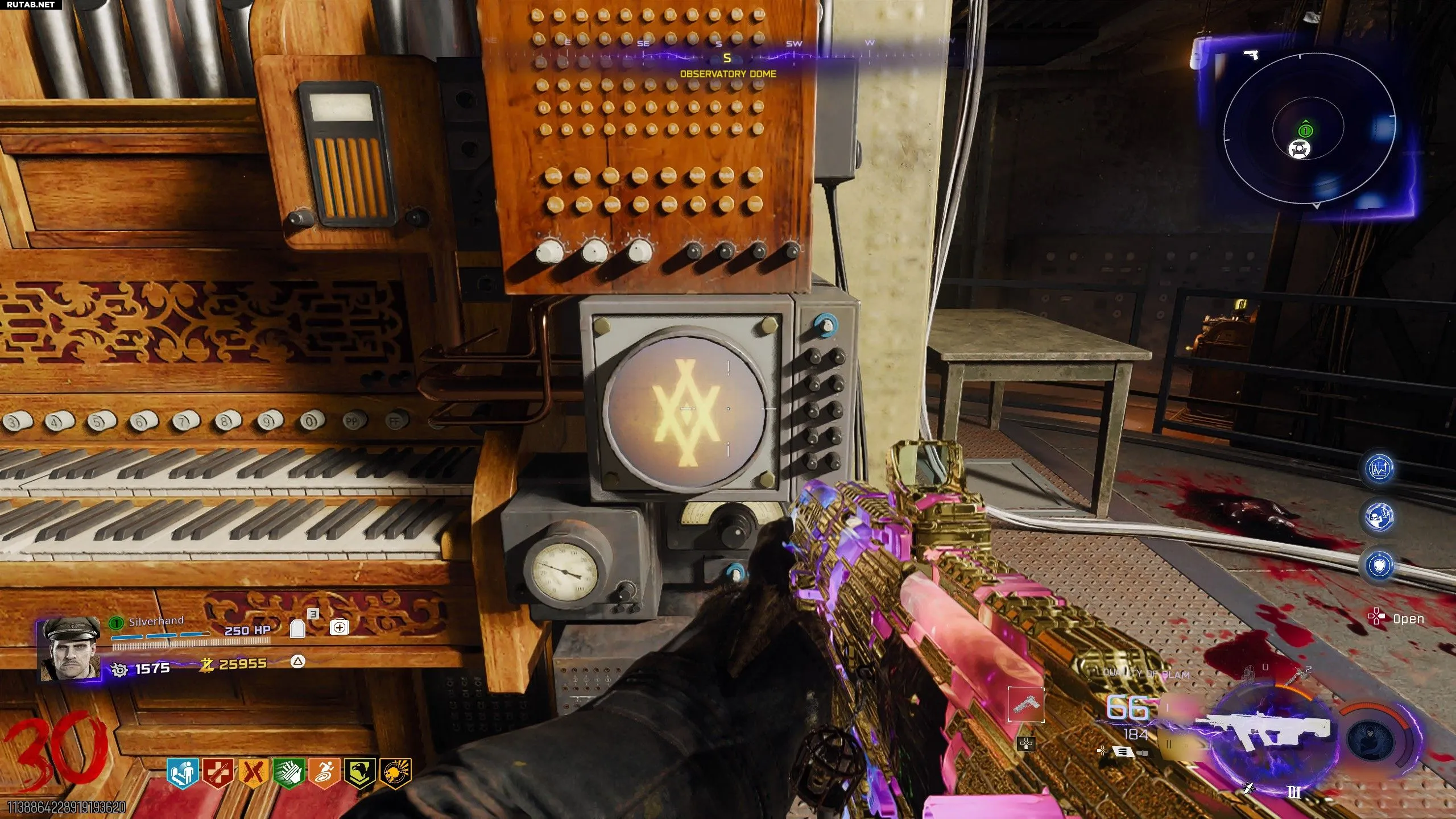 - Убейте О.С.К.А.Р. с помощью ловушки в Обсерватории. Заставьте его встать в луч лазера, который активируется после выстрела в 5 шипящих паром труб с клапанами, а затем взаимодействуйте с пианино напротив Pack-a-Punch, чтобы навести телескоп на Солнце.