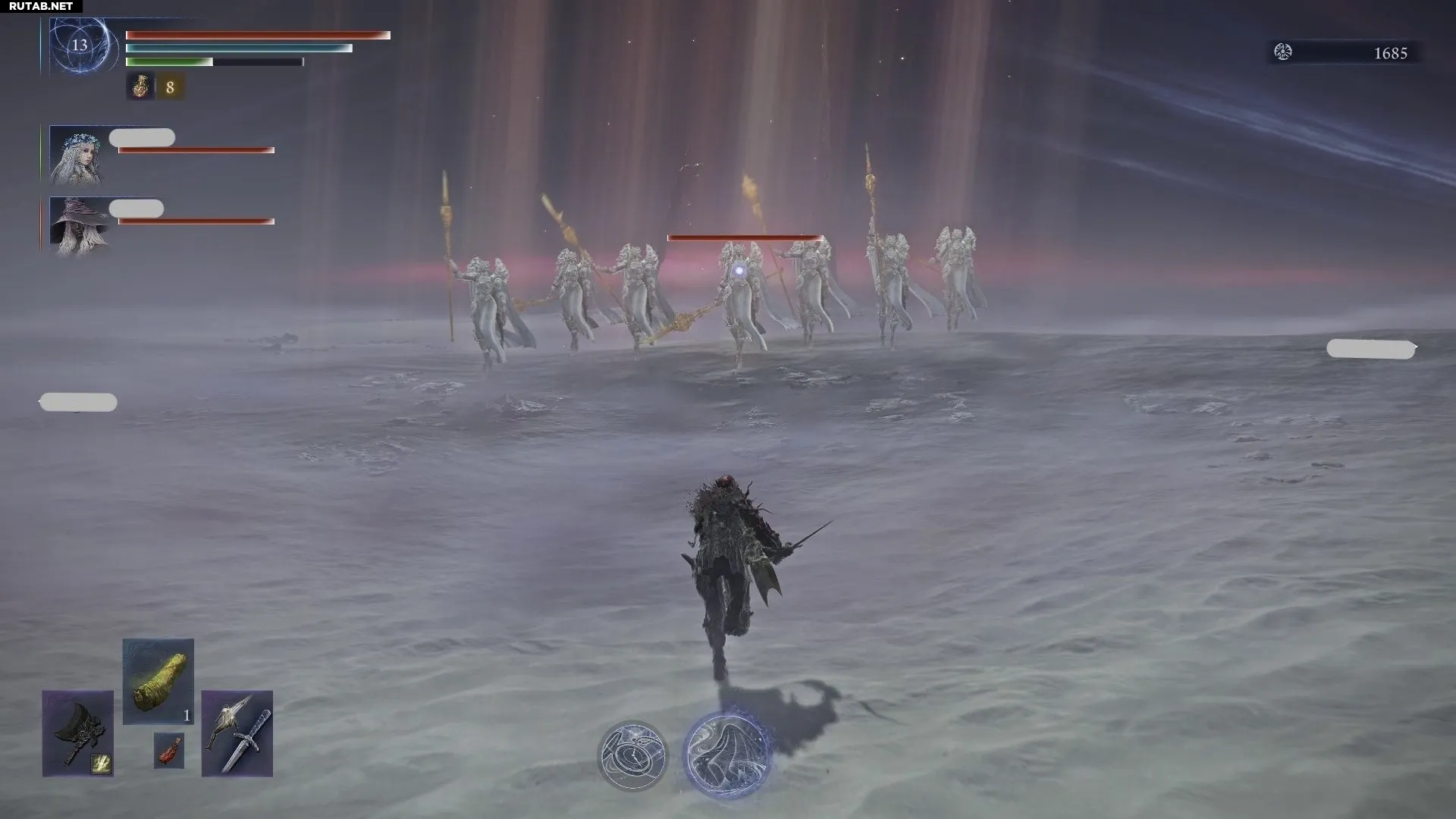 Всё потому, что Балансеры состоят из семи тяжелобронированных рыцарей, которые делят одну полосу здоровья. Это означает, что в любой момент времени вам придётся управлять аггро нескольких врагов. Однако есть и плюс: по крайней мере, в этой схватке не придётся беспокоиться о надоедливых недугах или элементальном уроне.