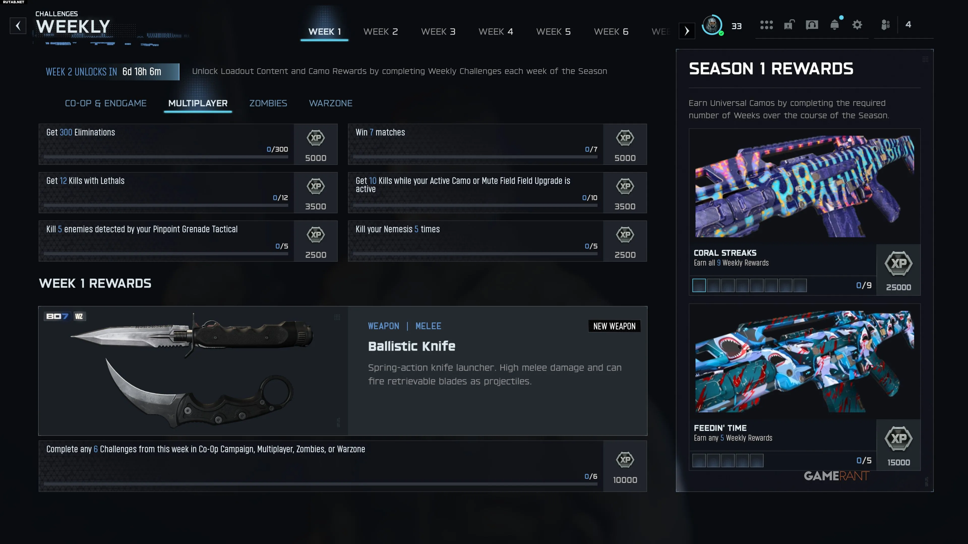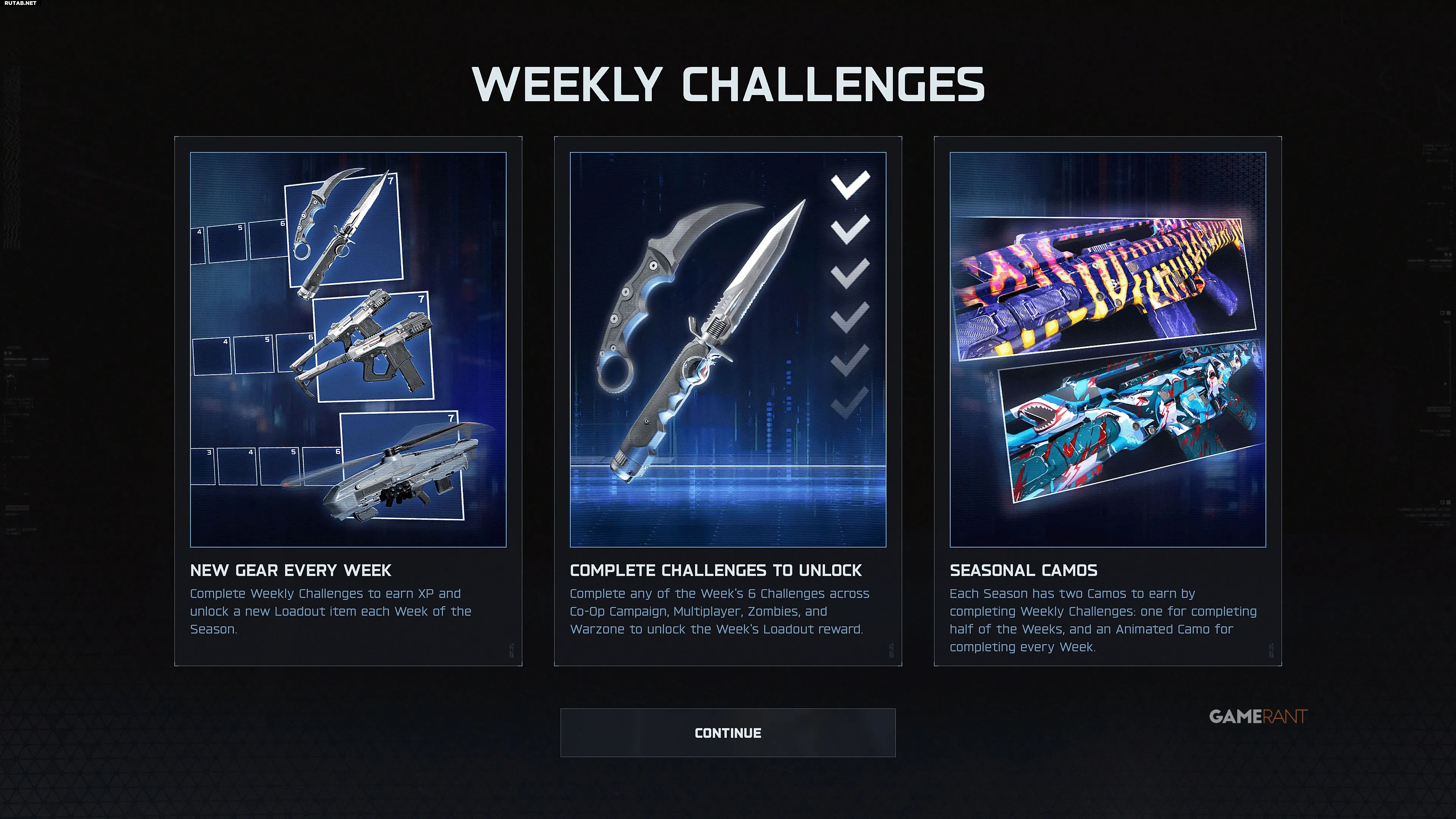 Игроки могут получить девять еженедельных наград, а также два универсальных камуфляжа, которые открываются за сбор всех наград.