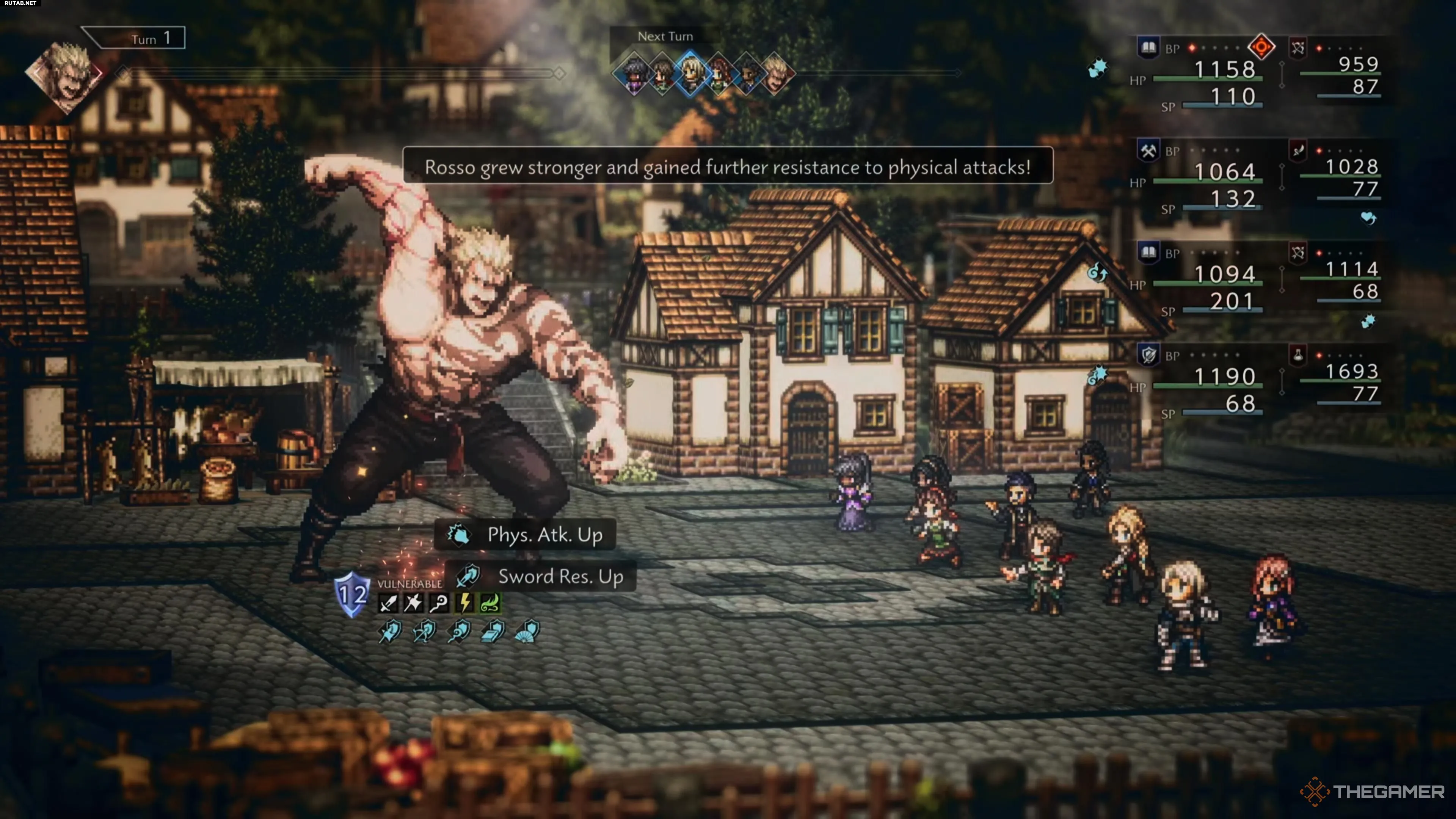 Самая сложная часть в бою с Россо — это обойти его повышенное сопротивление. Пока его защита не сломана, большинство ваших физических атак будут наносить ему всего один пункт урона, когда он получает дополнительную устойчивость к физическим атакам.
