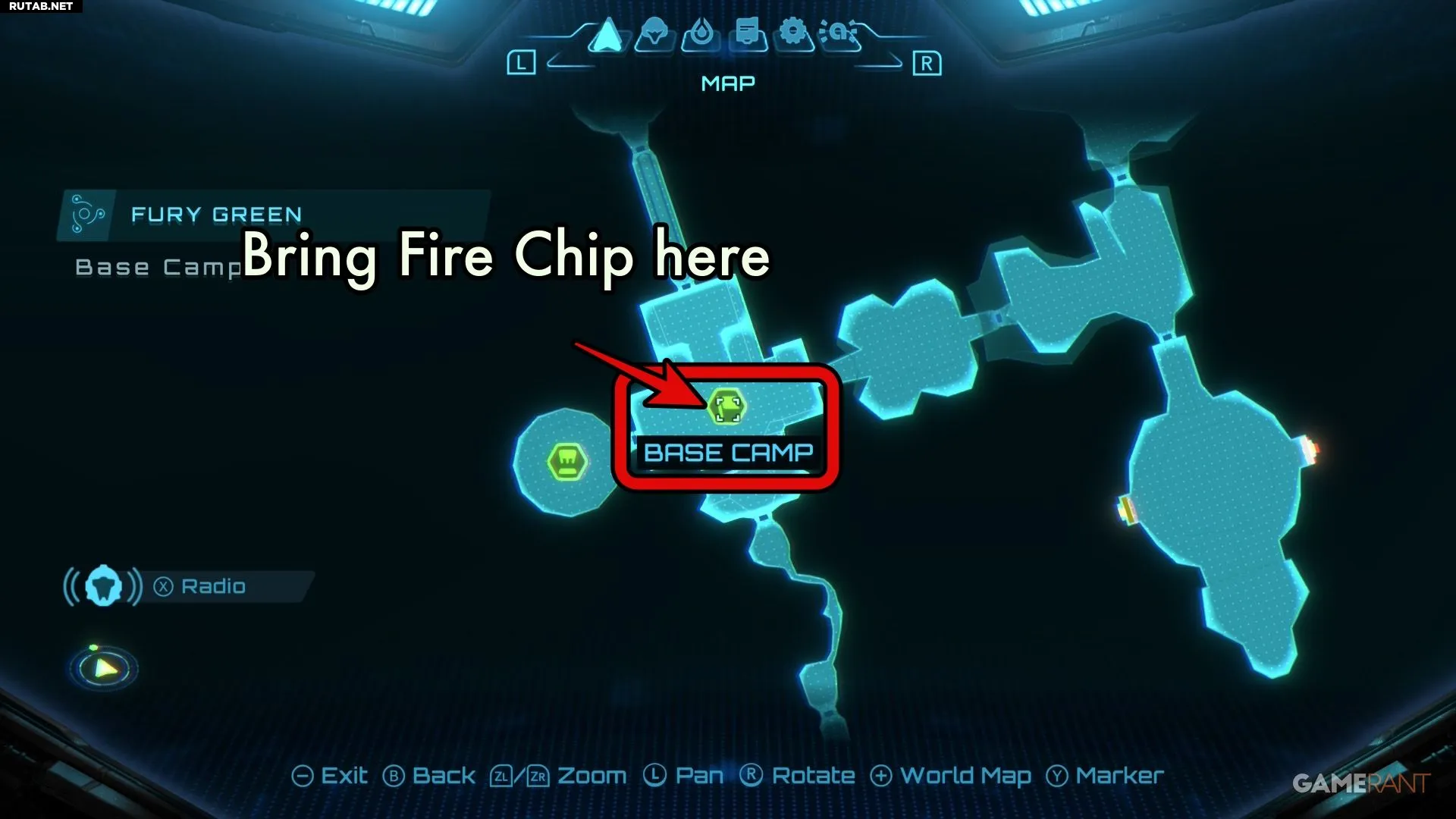 Подойдите к нему и взаимодействуйте. В награду Сэмус получит Огненный чип — ключевой компонент для разблокировки Огненного выстрела. Теперь покиньте Огненный бассейн, и вы получите сообщение от Майлза с просьбой вернуться в базовый лагерь в Яростной зелени.