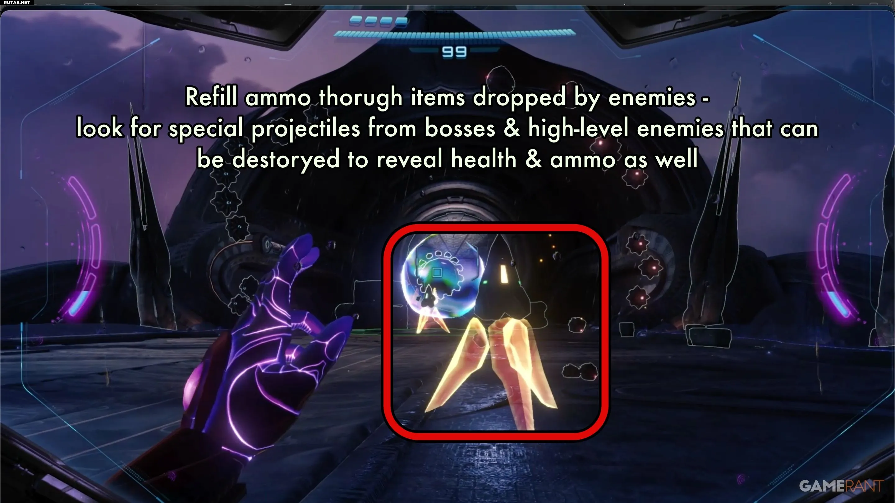 Если уровень энергии или количество ракет на исходе, ищите два типа объектов. Первый — враги. Убийство врагов в Metroid Prime 4 — один из лучших способов собрать аптечки и боеприпасы, которые появляются в виде парящих предметов после исчезновения тела противника.