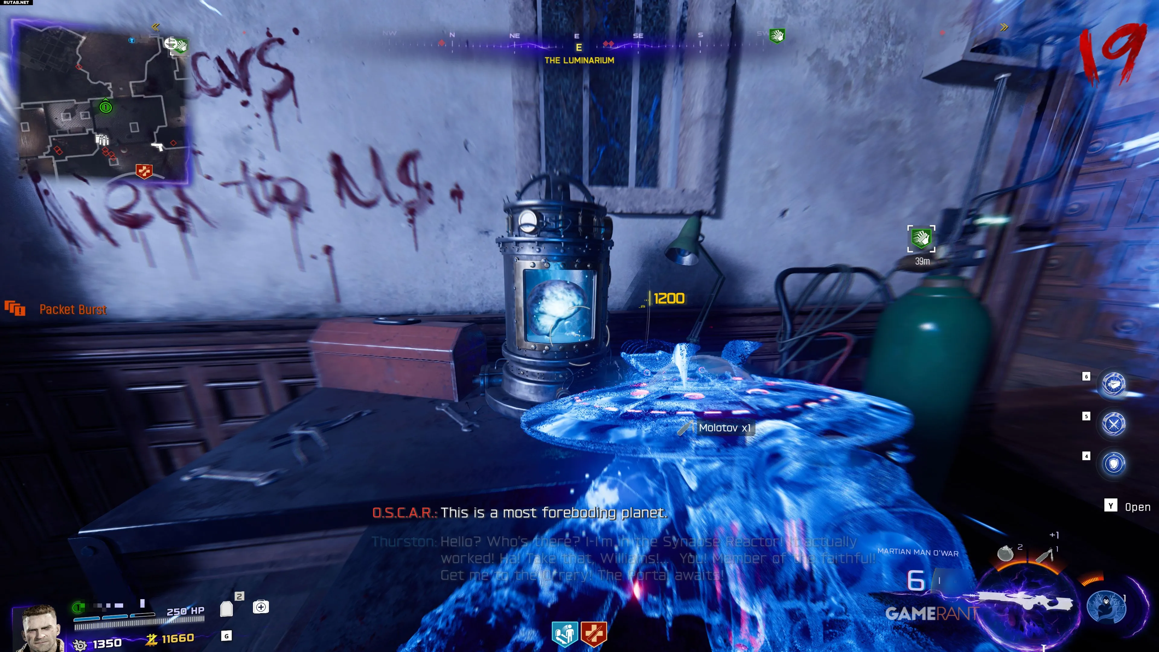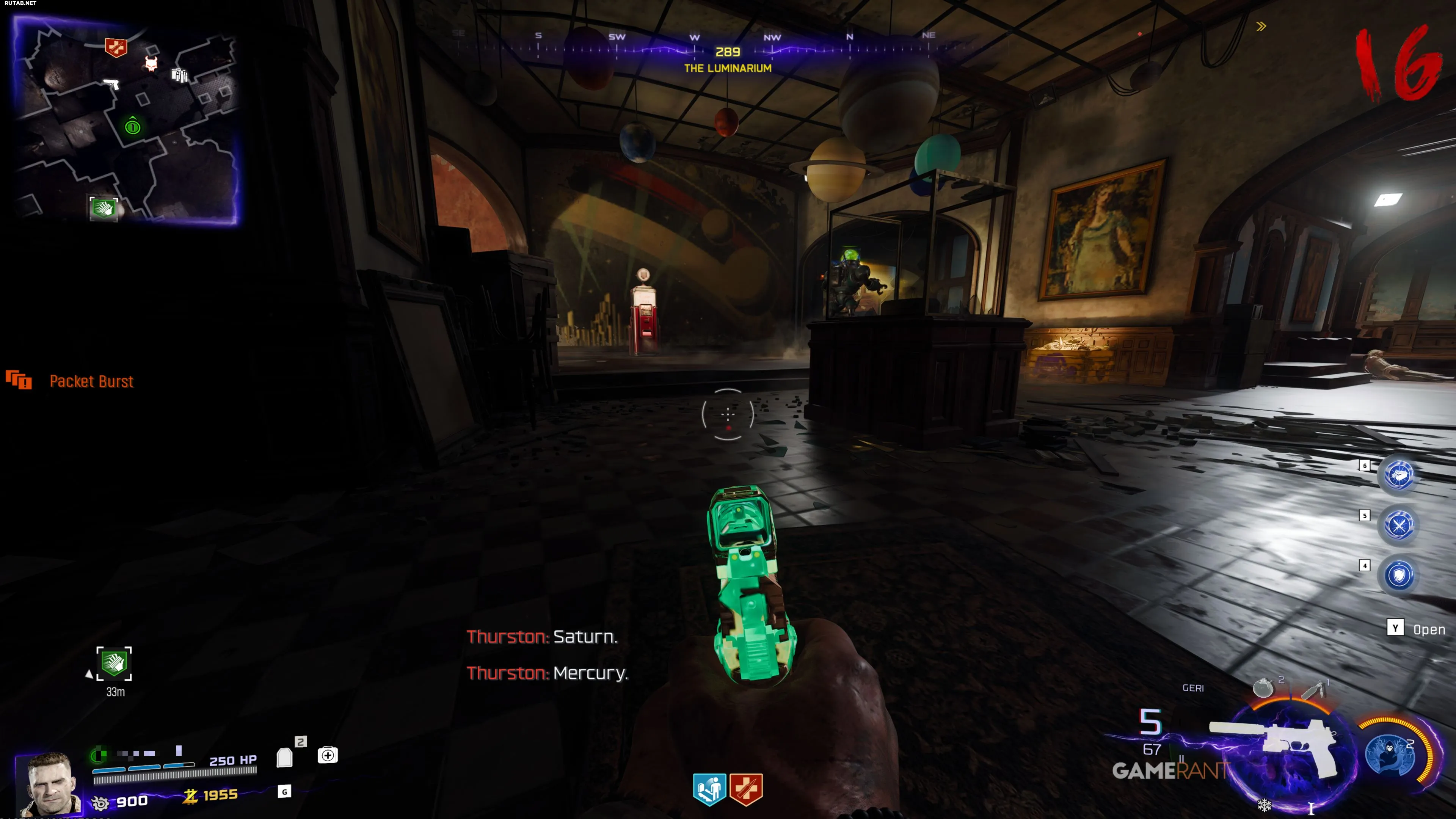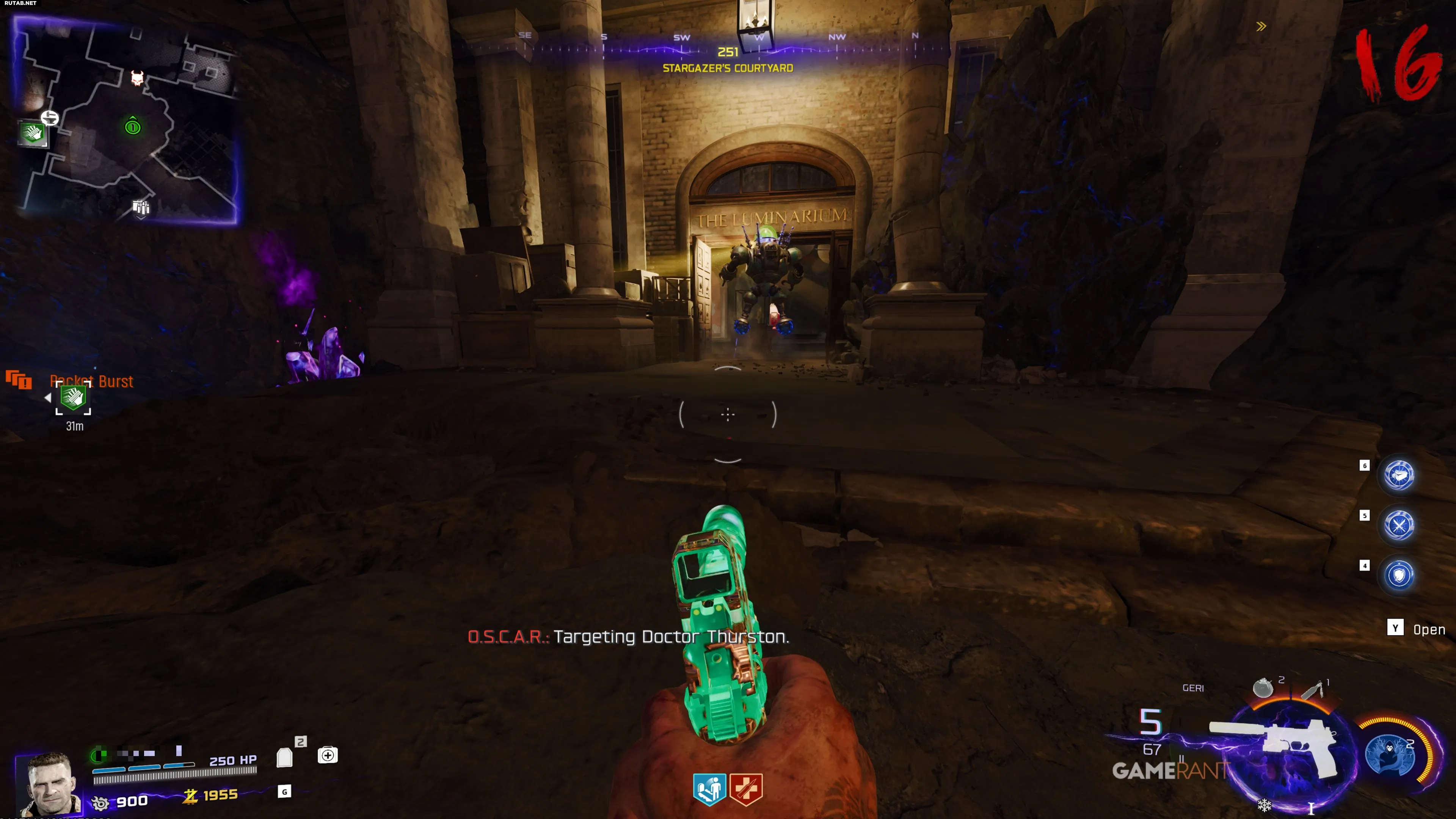 Убедитесь, что у вас включены субтитры, так как вам нужно будет услышать фразу «Наведение на доктора Терстона» и запомнить, что будет сказано дальше. В этот момент O.S.C.A.R. воспроизведёт запись, где доктор Терстон называет три планеты, и каждая планета будет соответствовать цифре трёхзначного кода.