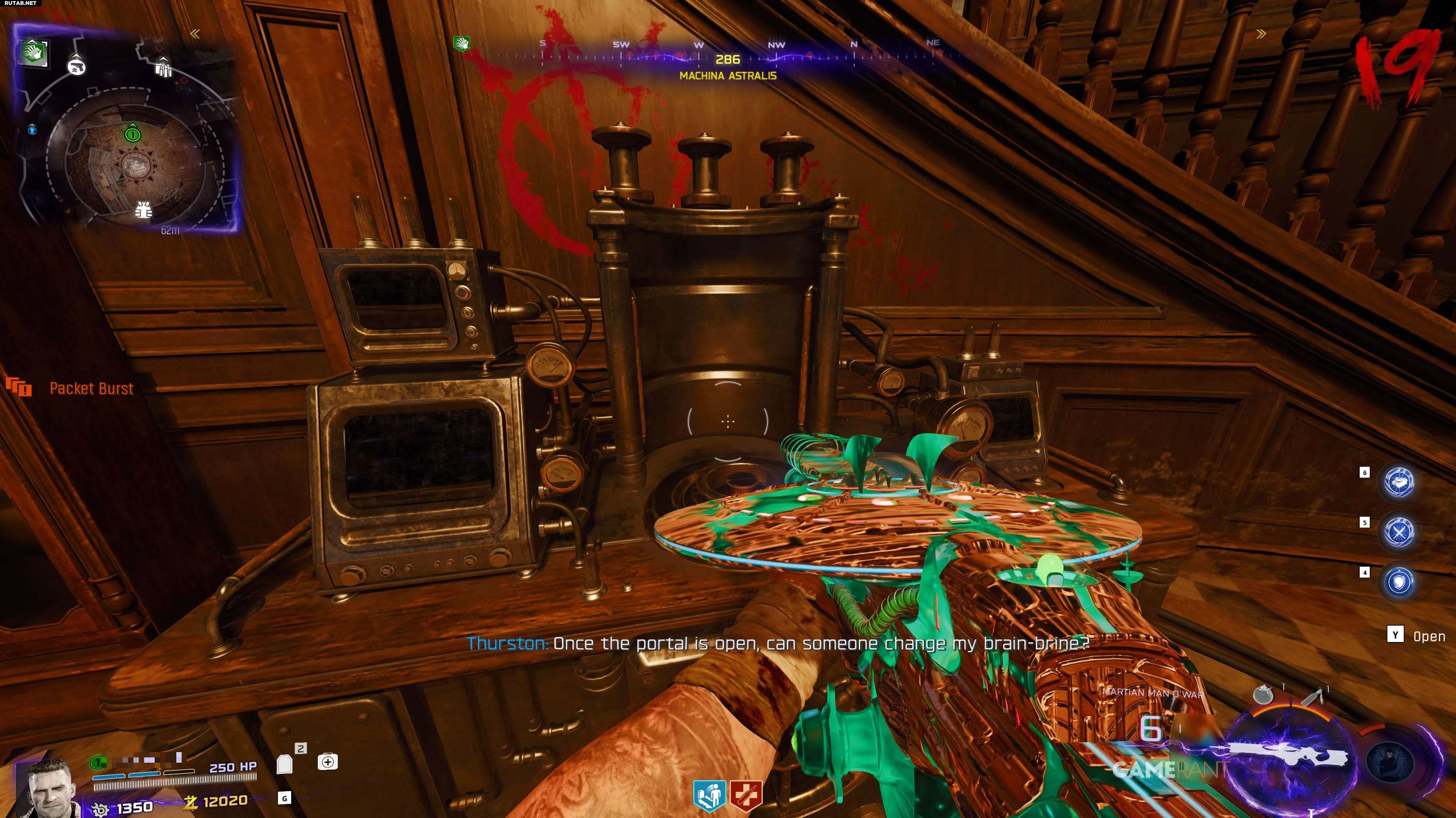 Затем вам нужно отправиться в «Музей Инфинитум» и взять каменную пилу в юго-западном углу локации. С пилой идите к «Машине Астралис» и в комнату прямо перед выходом к «Спид Коле». Здесь взаимодействуйте с криоподом, чтобы открыть его, а затем с телом, чтобы забрать мозг Терстона.
