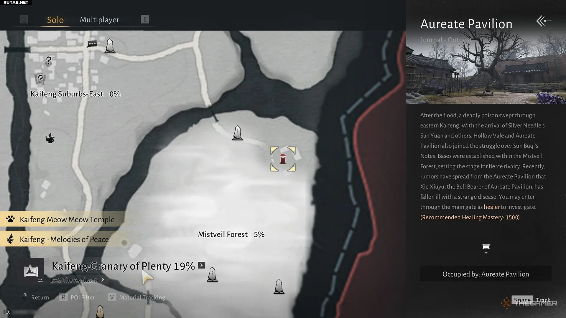 Записку Золотого павильона можно найти в северо-восточной части карты, к востоку от Пограничного камня северного Леса Туманной Завесы. Это также аванпост, поэтому его легко заметить.