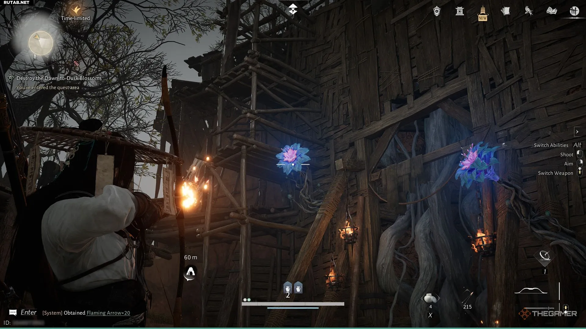 Разобравшись со стражами, продвиньтесь немного дальше и используйте огненные стрелы, чтобы уничтожить Цветы от зари до заката, открыв путь в туннель. Пройдите по туннелю до поляны и исследуйте четыре точки в этой области.