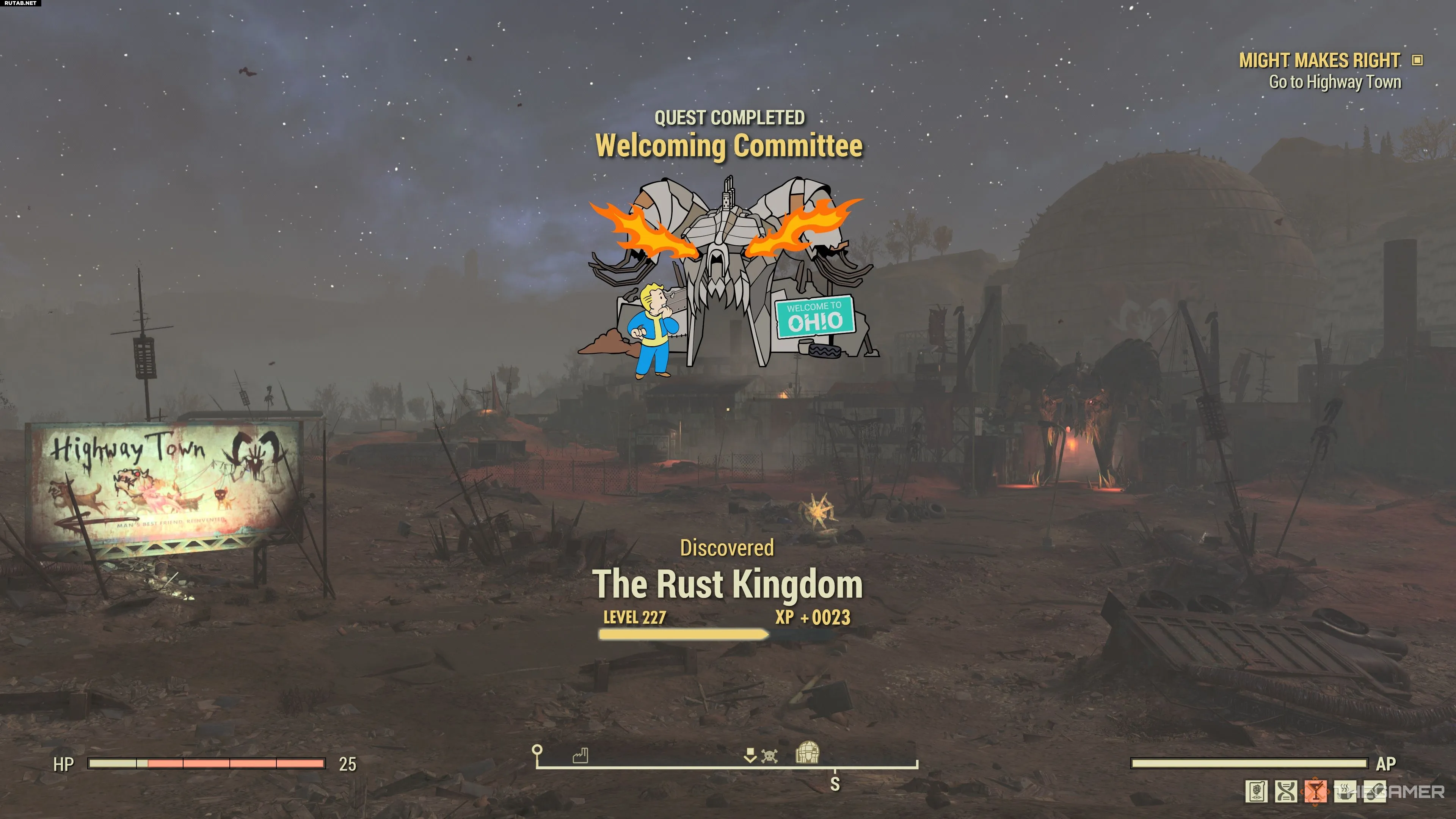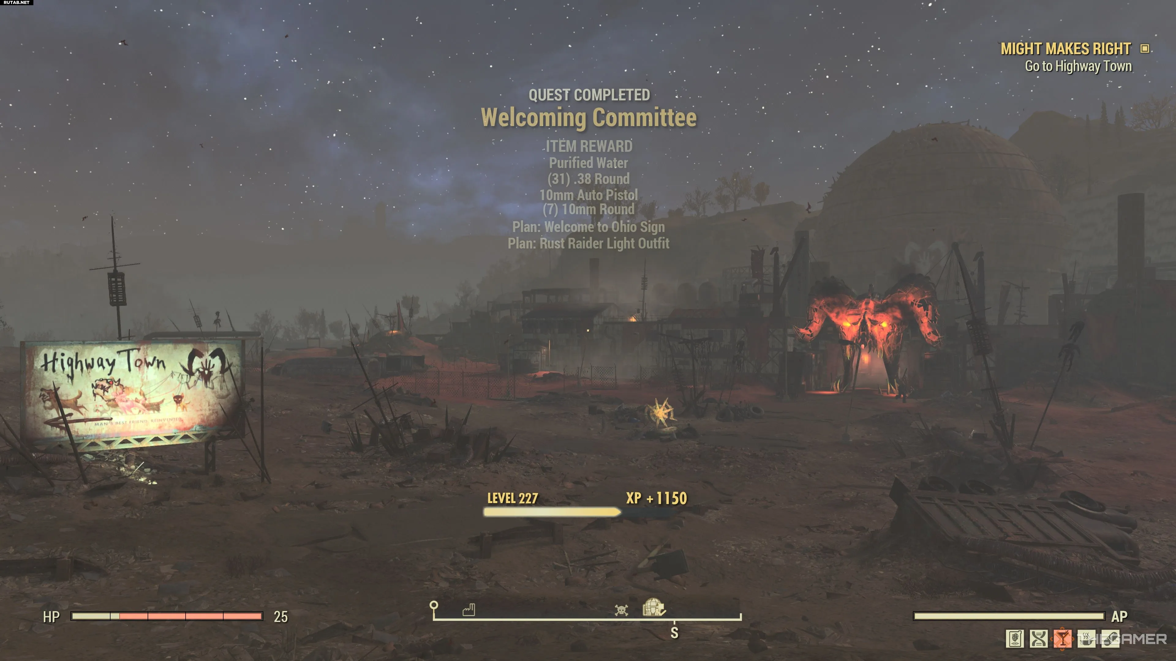 Быстро переместитесь в Пойнт-Плезант и следуйте на запад к Серебряному мосту. Перейдя мост, сразитесь с культистами и одичавшими гулями на пути к большой стене из металлолома — Каньону КПП.