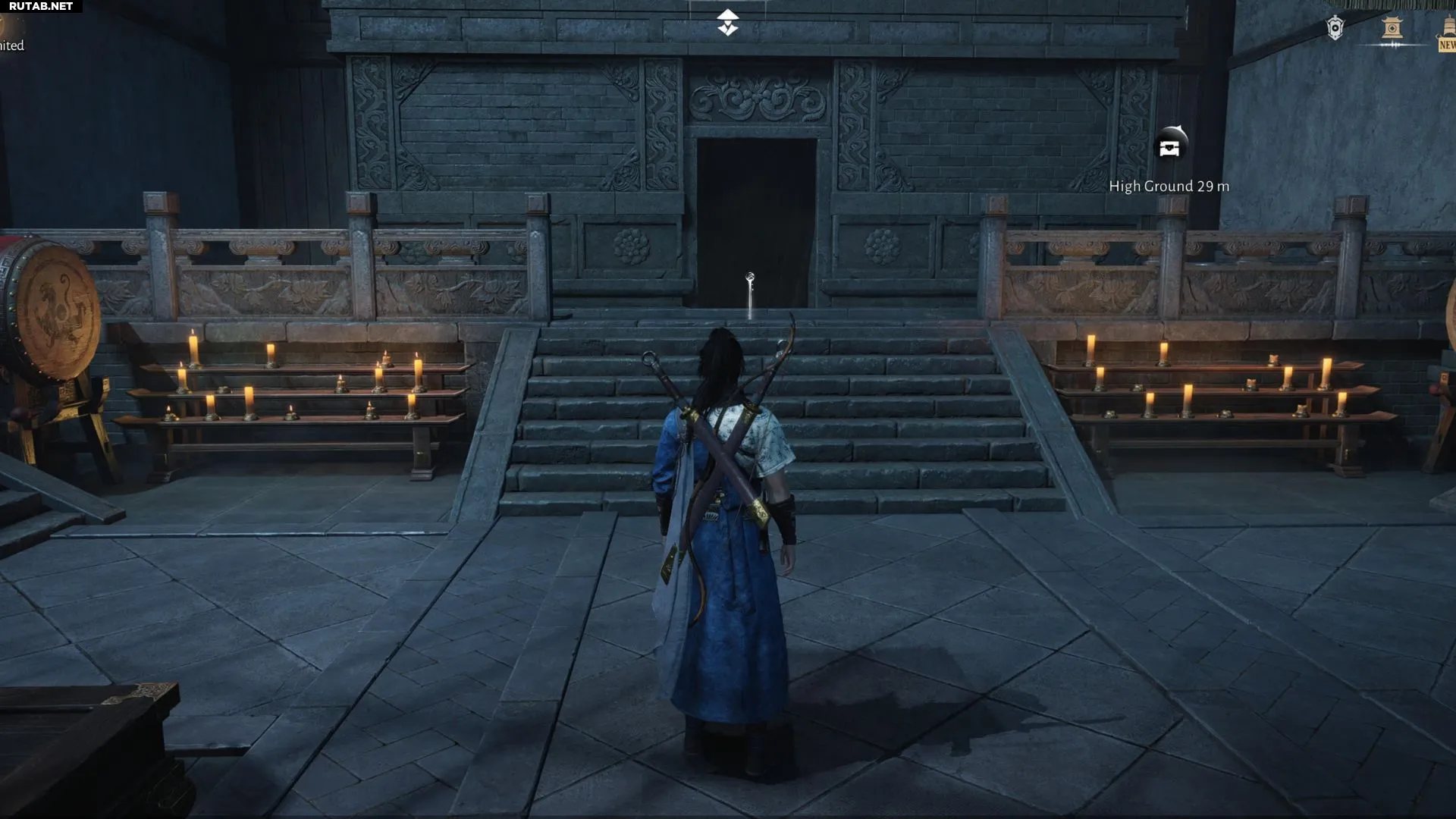 Когда будете готовы, следуйте за маркером квеста наружу, к крышам храма. Добравшись до возвышенности, войдите в Зал Воинских Искусств.
