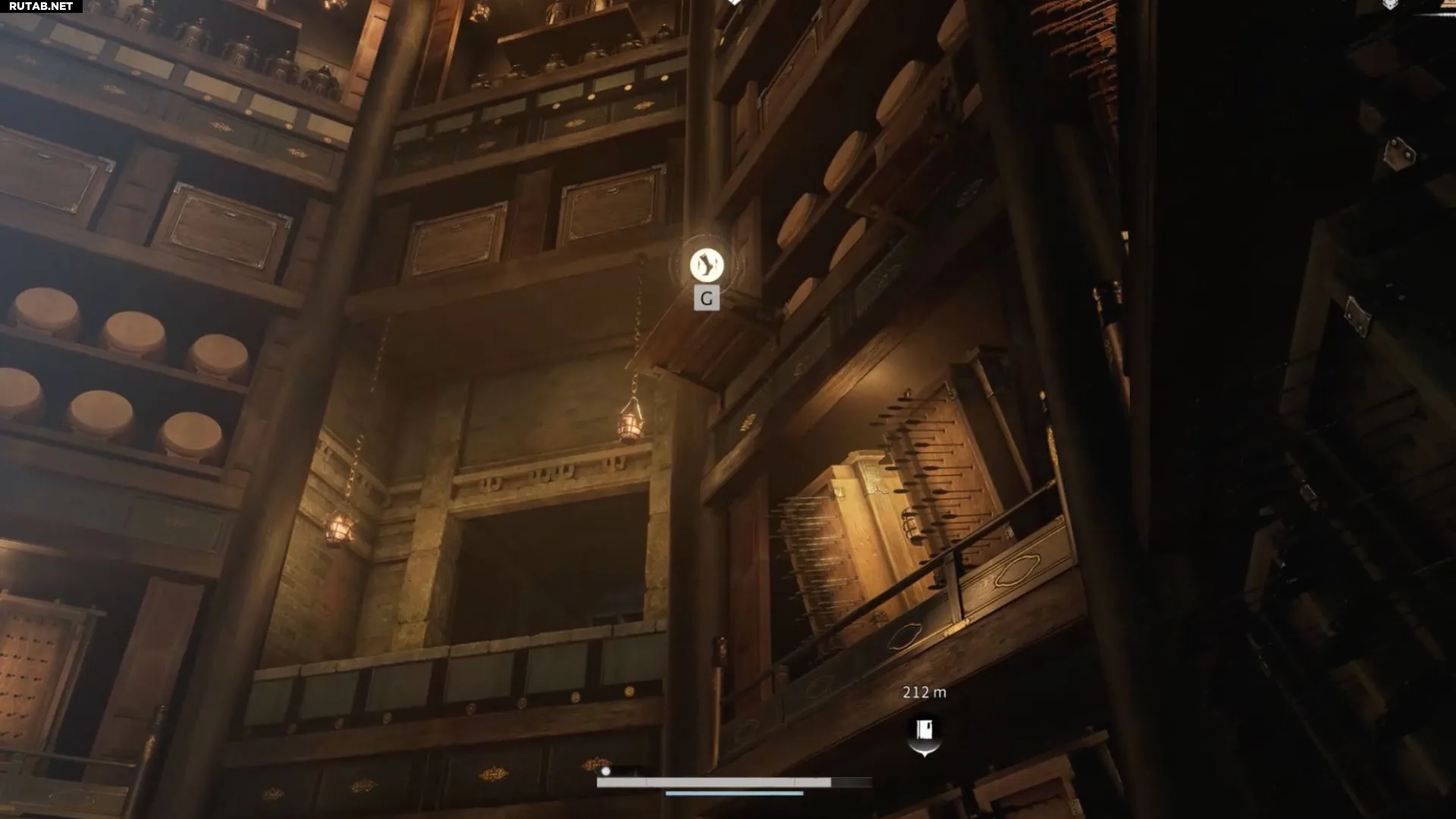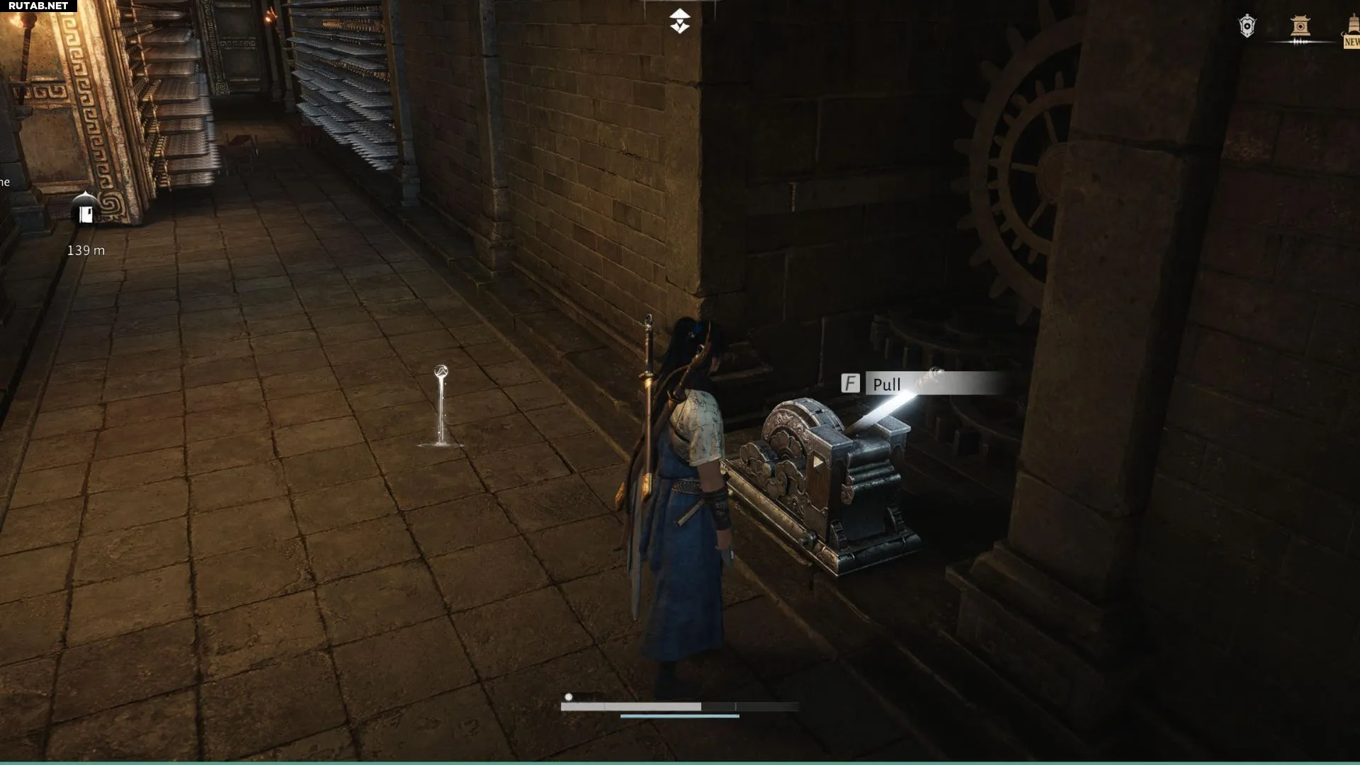Потяните рычаг, чтобы углубиться в залы и решить следующую головоломку с колоколом и молотком. В комнате, где хранится короткое оружие, вас ждёт хорошо защищённый стражник со щитом.