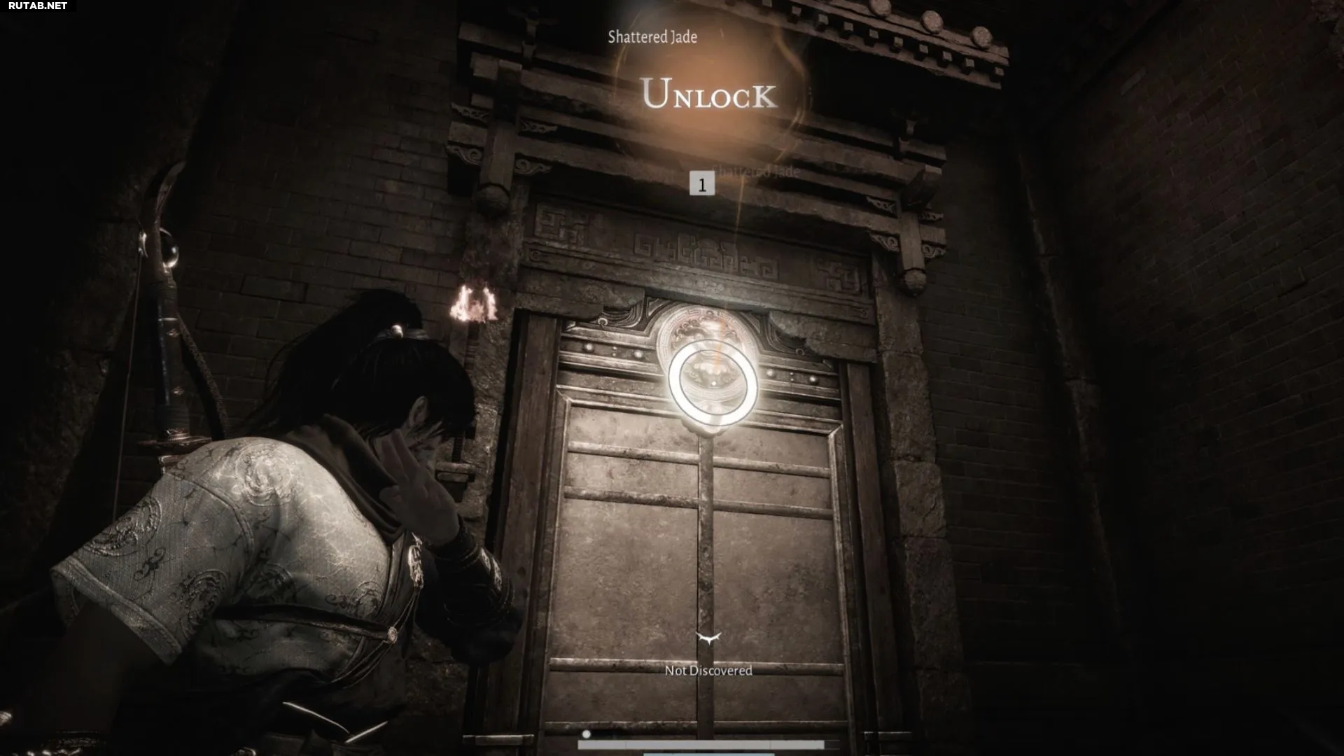 Чтобы открыть дверь впереди, которую охраняют нефритовый колокол и молоток, нужно решить небольшую загадку. Сначала ударьте в колокол, а затем немедленно используйте навык «Прикосновение к меридианам» на дверном молотке.