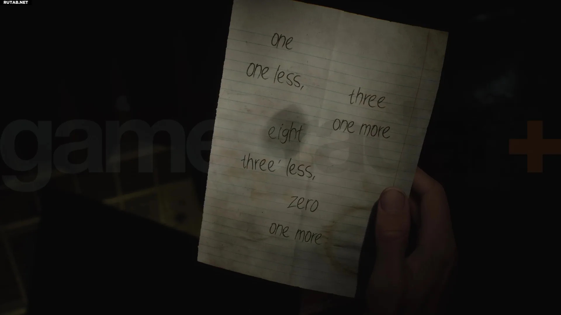 Если же вы хотите найти подсказку самостоятельно, отправляйтесь в мотель после битвы с Пирамидоголовым и перехода в парк Розуотер. Поднимитесь по лестнице на западной стороне здания и найдите комнату 108. Разбейте окно, заберитесь внутрь и пролезьте через щель в стене. На столе вы найдете записку «Инструменты» с загадкой: