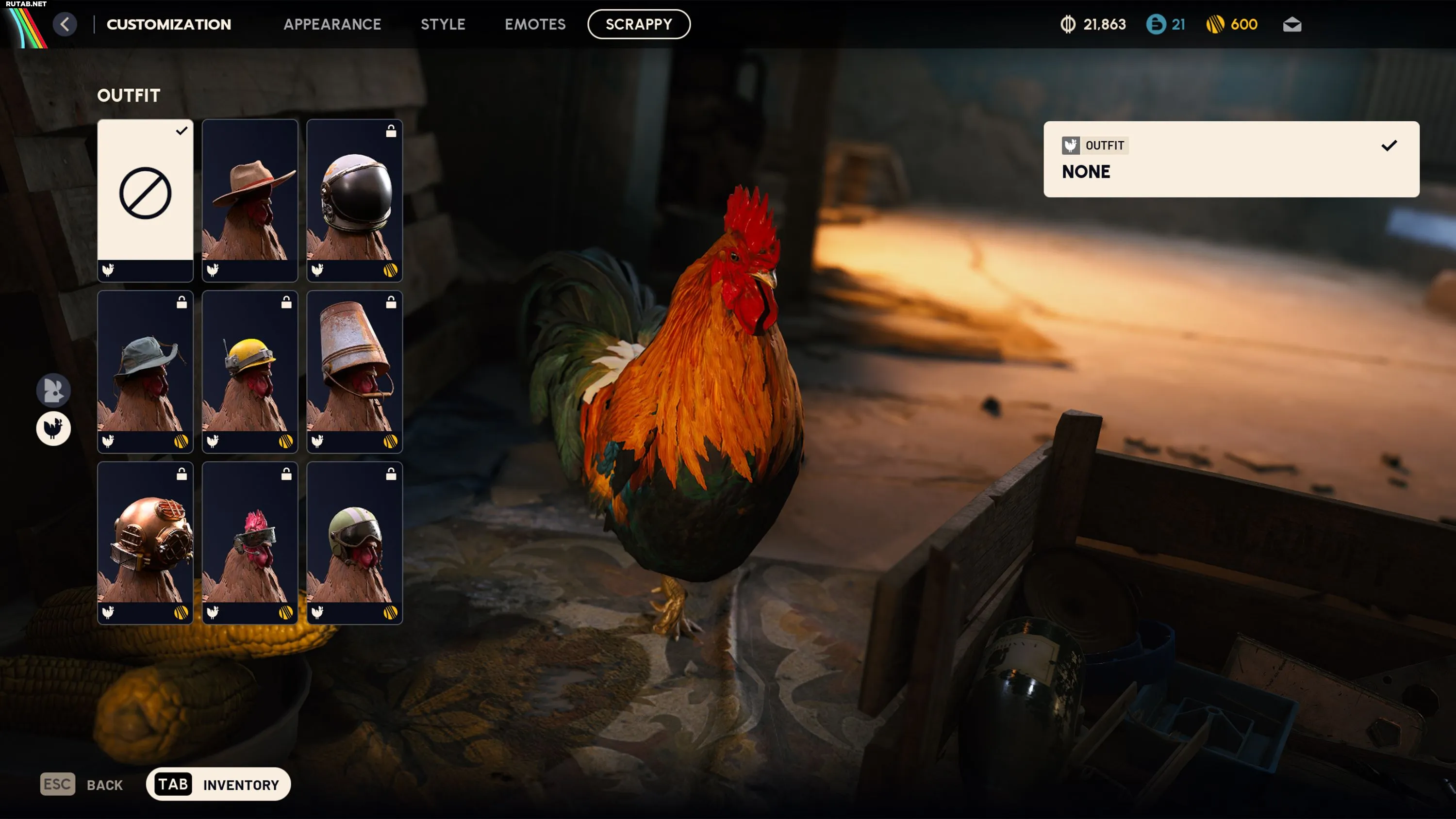 Улучшение Скрэппи — это не только скорость. Вы также можете кастомизировать своего петуха-питомца с помощью эксклюзивных косметических предметов, шляп и скинов.