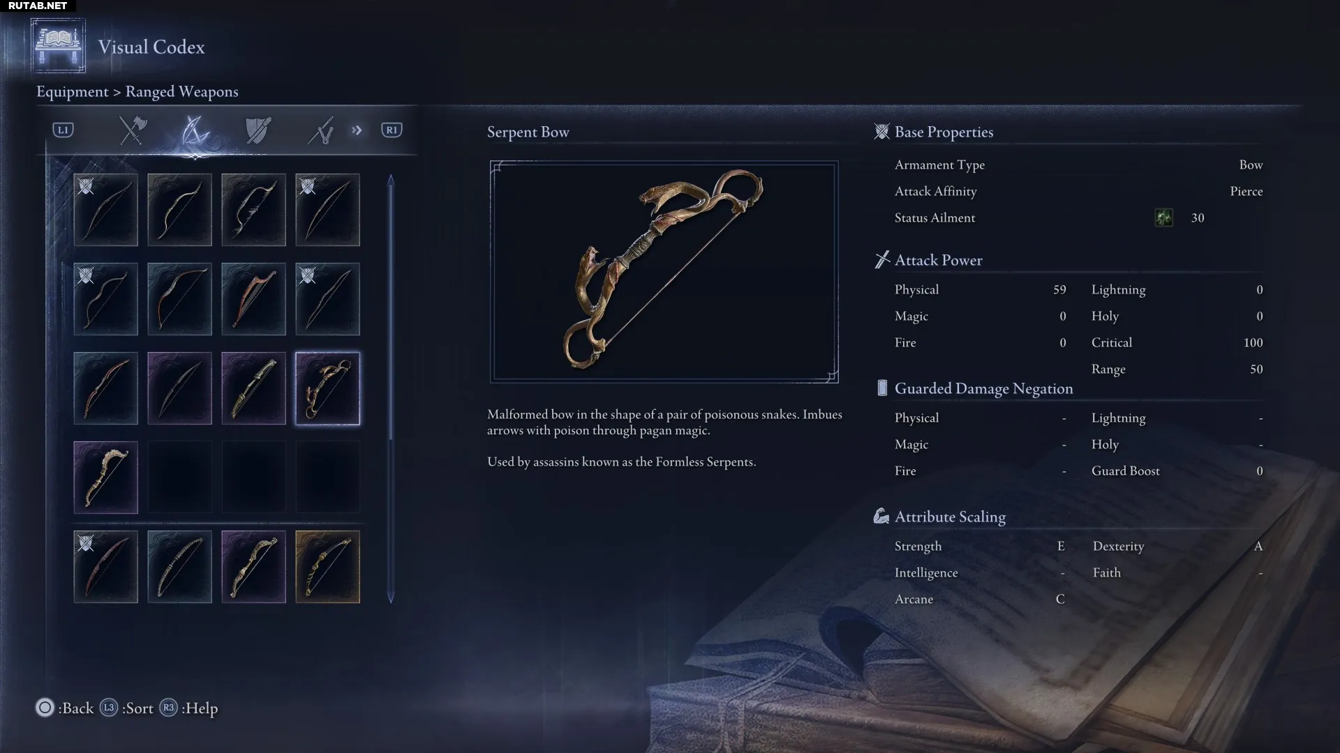 - Змеиный лук (Эпический лук): Этот универсальный и мощный лук также наносит ядовитый урон своими атаками и имеет скейлинг от Ловкости уровня A.
