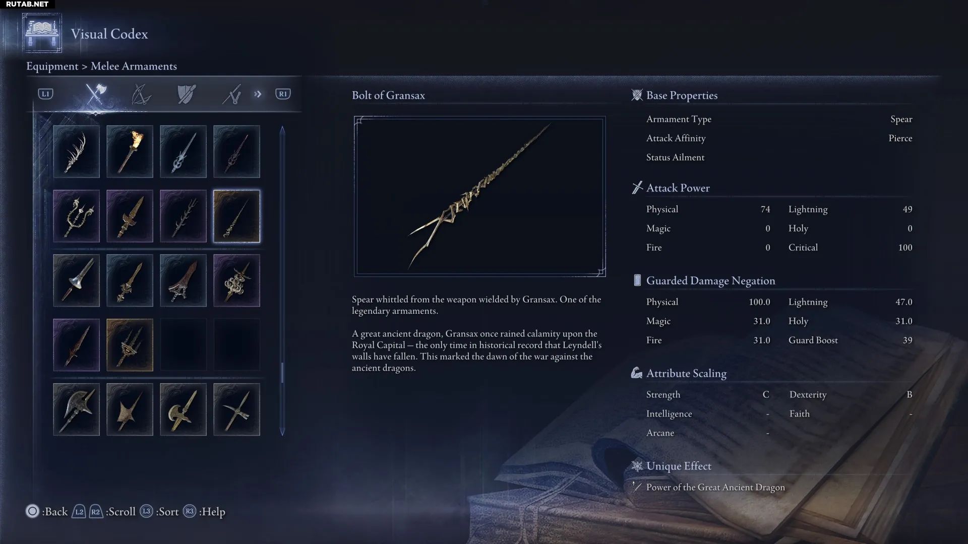- Копьё Грансакса (Легендарное копьё): У Стража есть несколько способностей для алебард, но в игре нет легендарных алебард. Ближайший вариант, подходящий для осторожного стиля со щитом, — это копьё Грансакса, которое добавляет удары молнией к заряженным атакам.