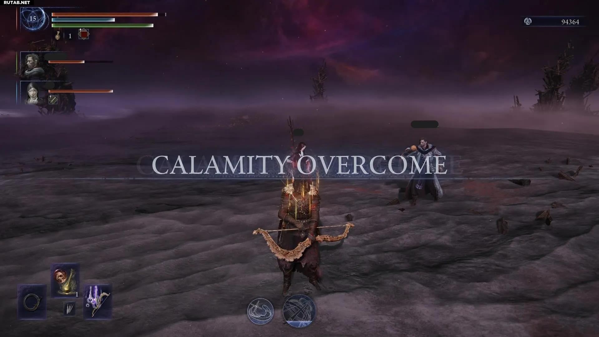 И последнее, но не менее важное: Железный Глаз — любимый многими Странник Ночи — всегда будет к месту. Вы можете держаться на расстоянии от Владычицы Осадков, используя его способность «Метка» для нанесения урона по стойке (или уклонения от атак), а также накладывать недуги, такие как кровотечение или обморожение, с помощью его лука (если другие союзники также используют эффекты статусов). Кроме того, можно наделить Лук Железного Глаза эффектом святости с помощью подходящей Реликвии, а его Высшее искусство отлично подходит для очистки территории от толп врагов или воскрешения союзников.