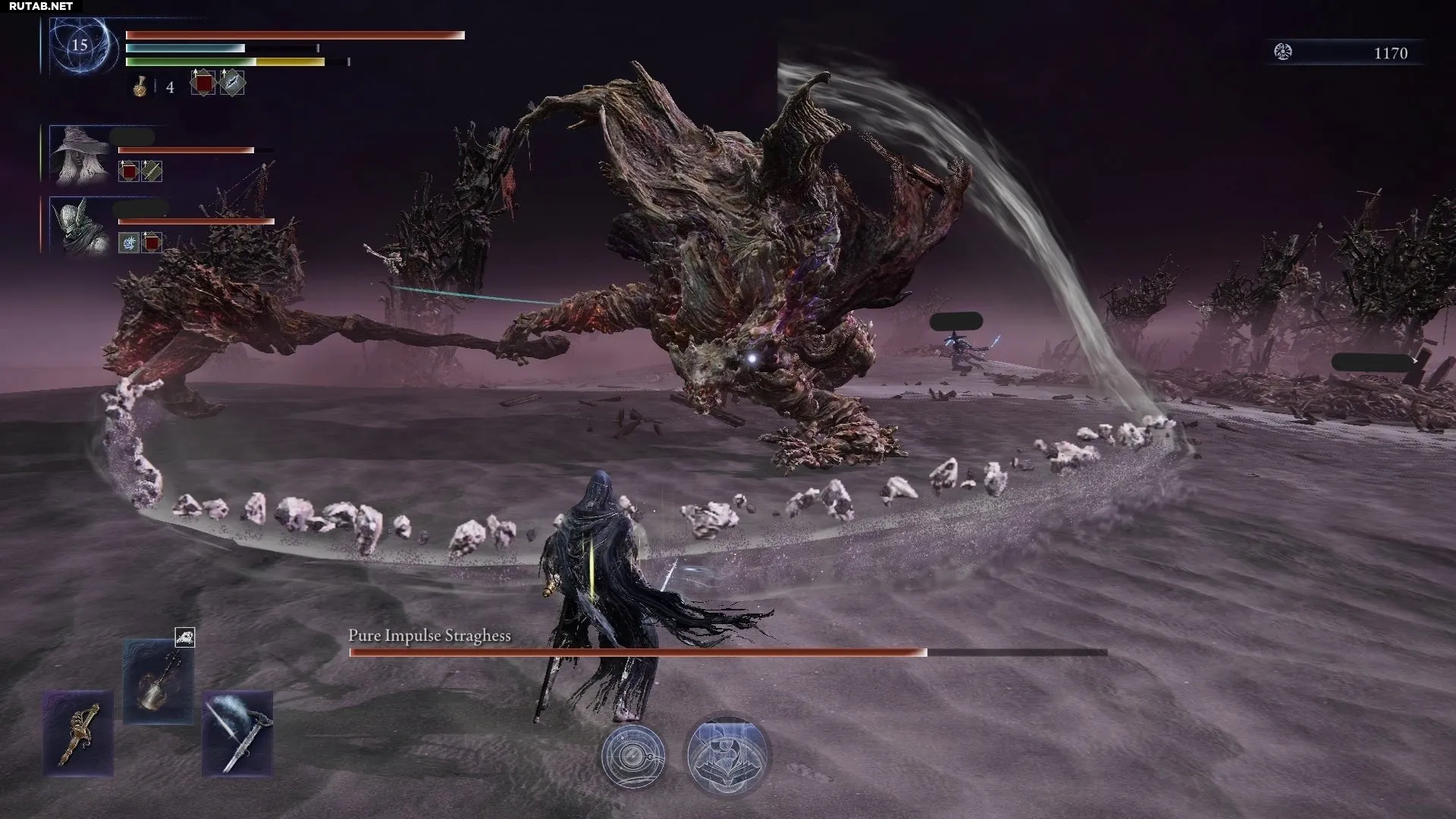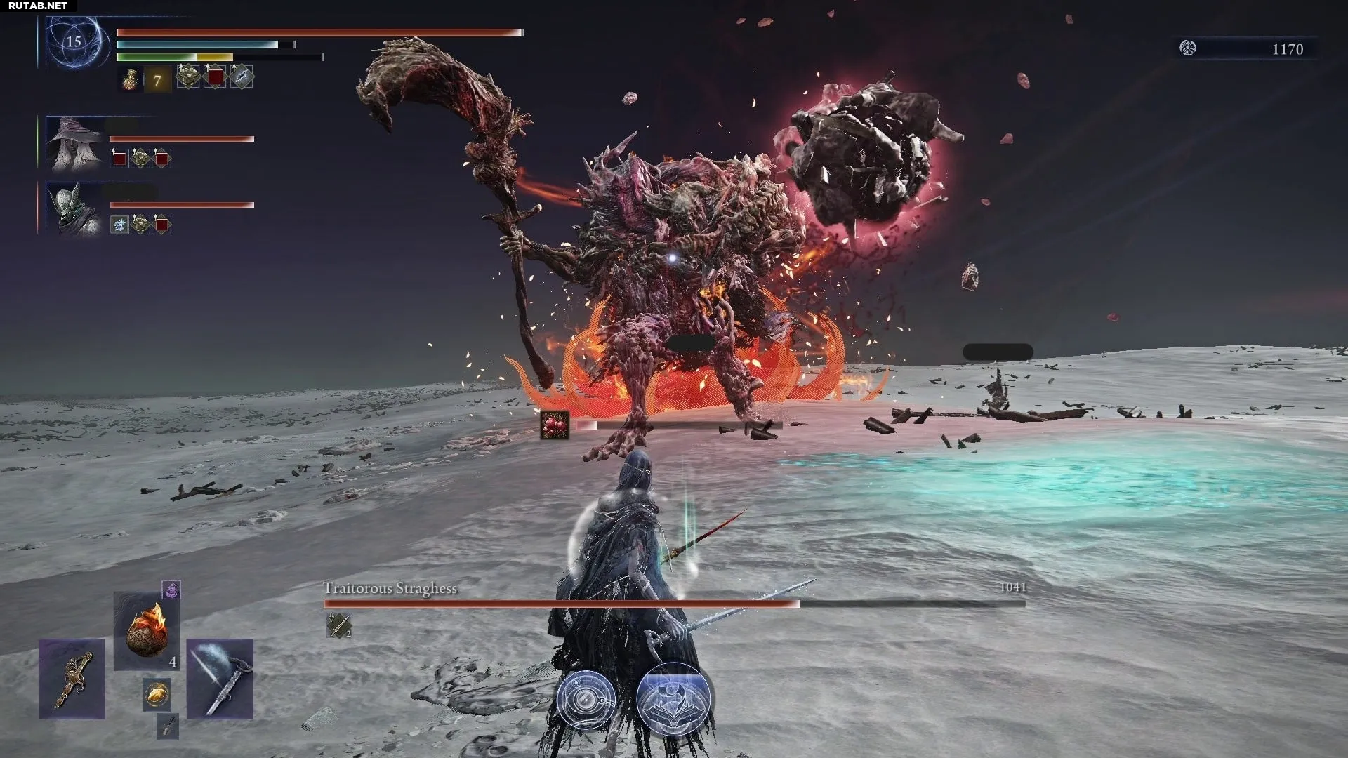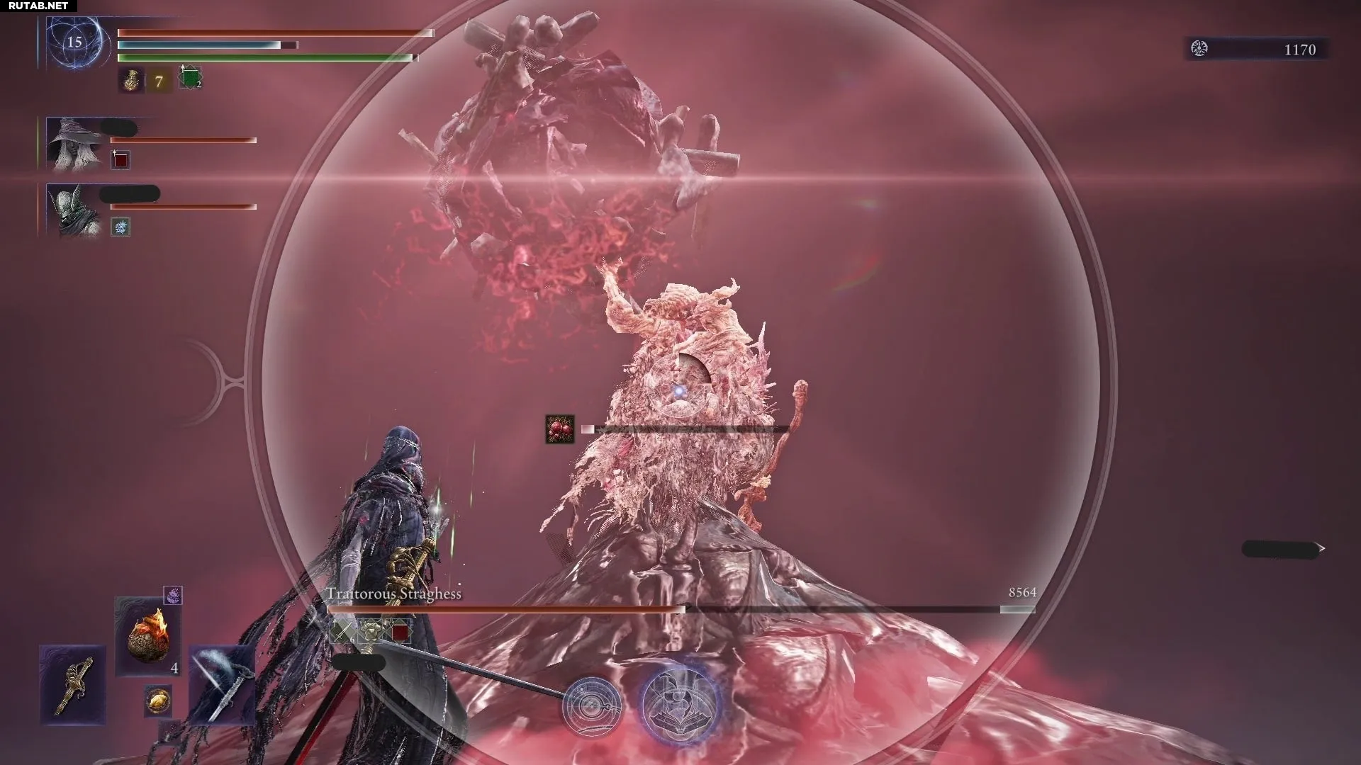 В начале боя с Владычицей Осадков вы сначала столкнётесь с Предательницей Стражей. Она будет размахивать огромной дубиной, нанося физический урон, а примерно при 60% ОЗ её атаки начнут также накладывать красную гниль.