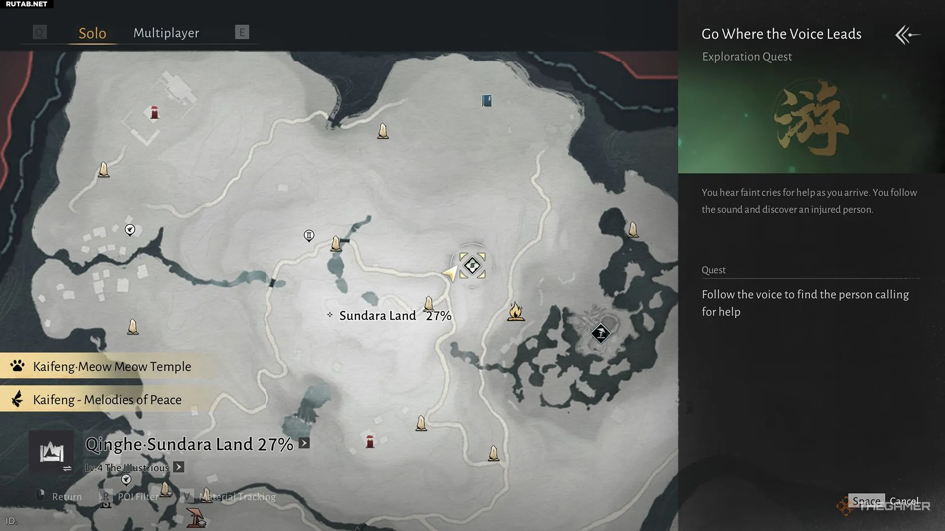 Путь в секту начинается с задания «Иди, куда ведёт голос». Чтобы его активировать, отправляйтесь в локацию «Ореол Пика» в землях Сундары, к пограничному камню Ореол Пика. Оттуда пройдите немного на северо-восток, пока не услышите умирающего мечника.