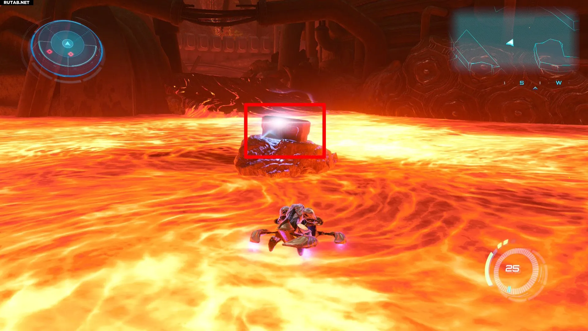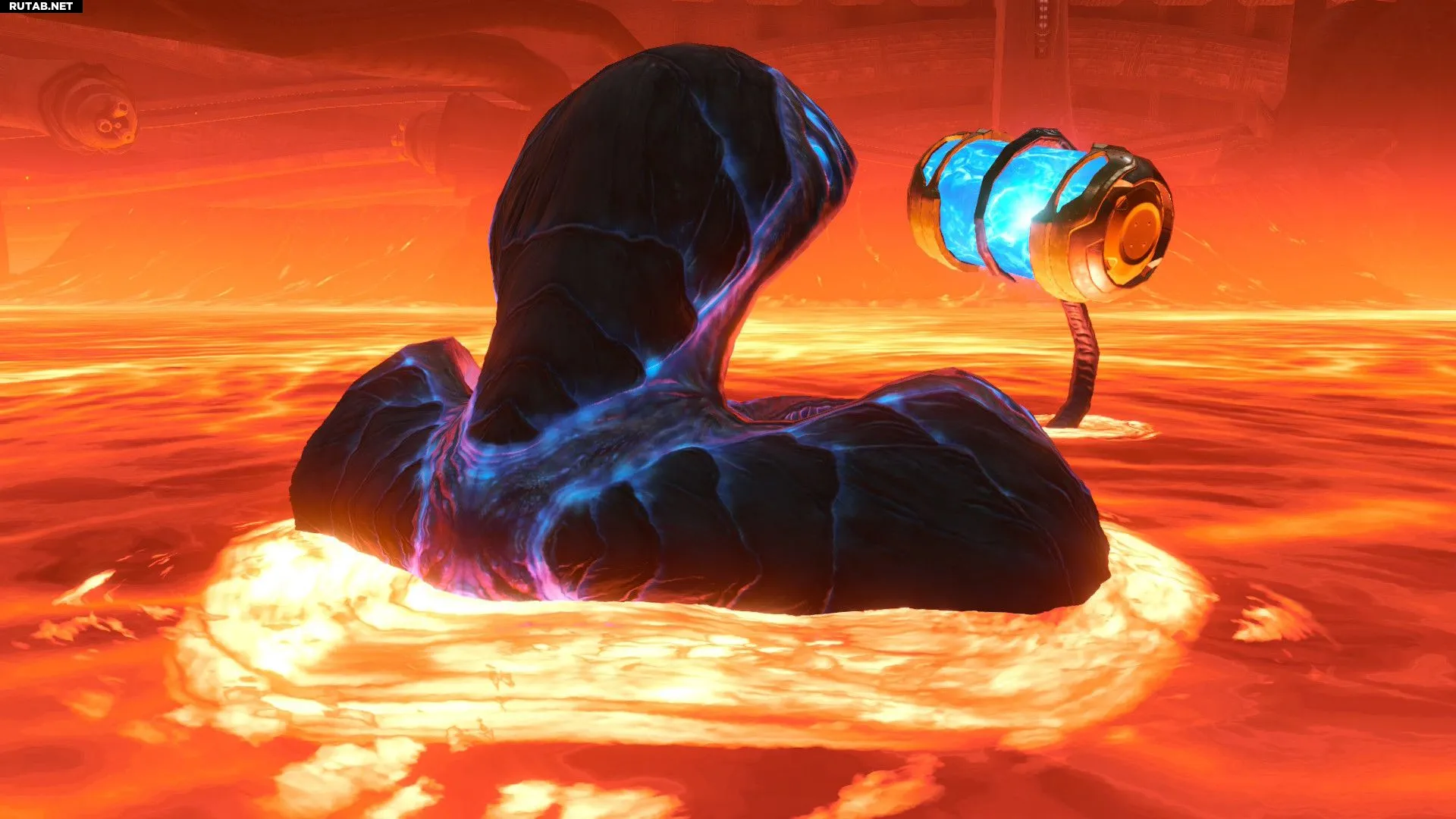 Вернитесь в Сердце Вулкана на Огненном Озере — на арену, где вы ранее сражались с Феноросом. Выстрелите в небольшой контейнер, стоящий на вершине скалы у входа в комнату, чтобы открыть контейнер с энергией. Затем догоните и победите существо, которое его украдёт, чтобы забрать награду.