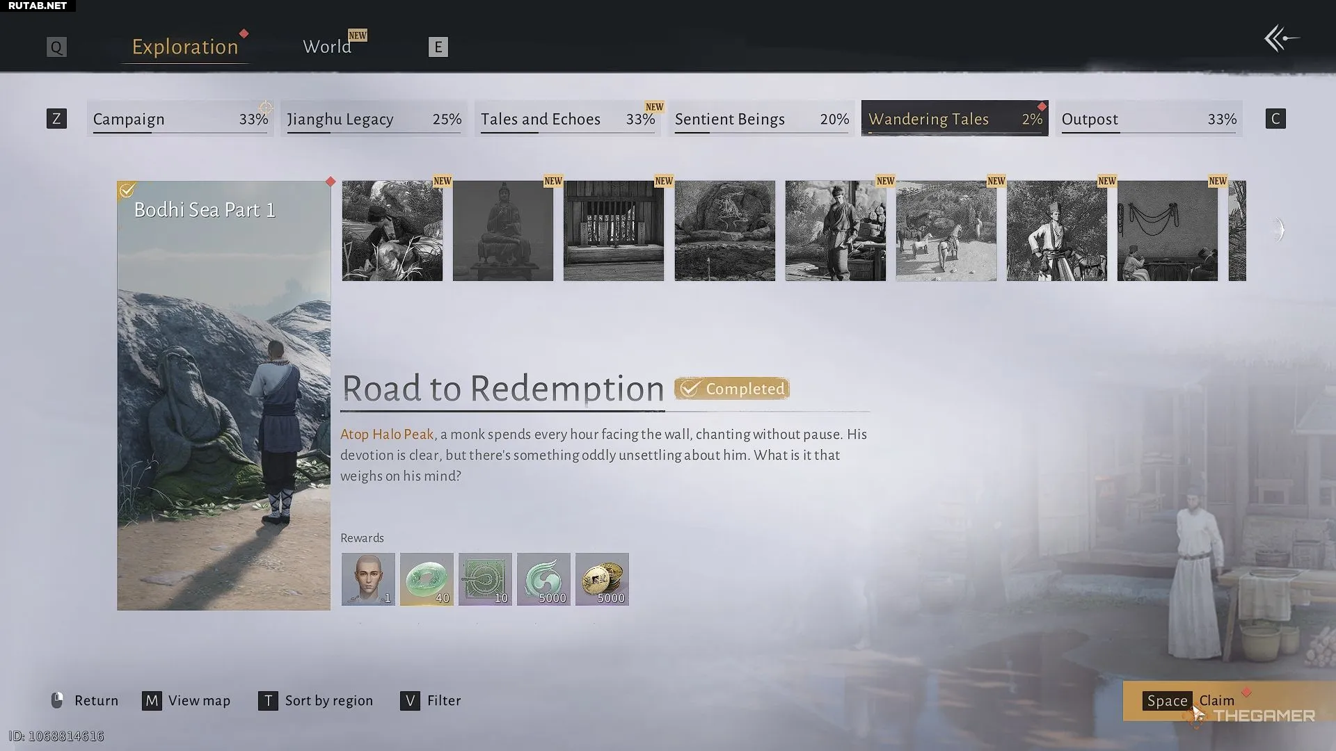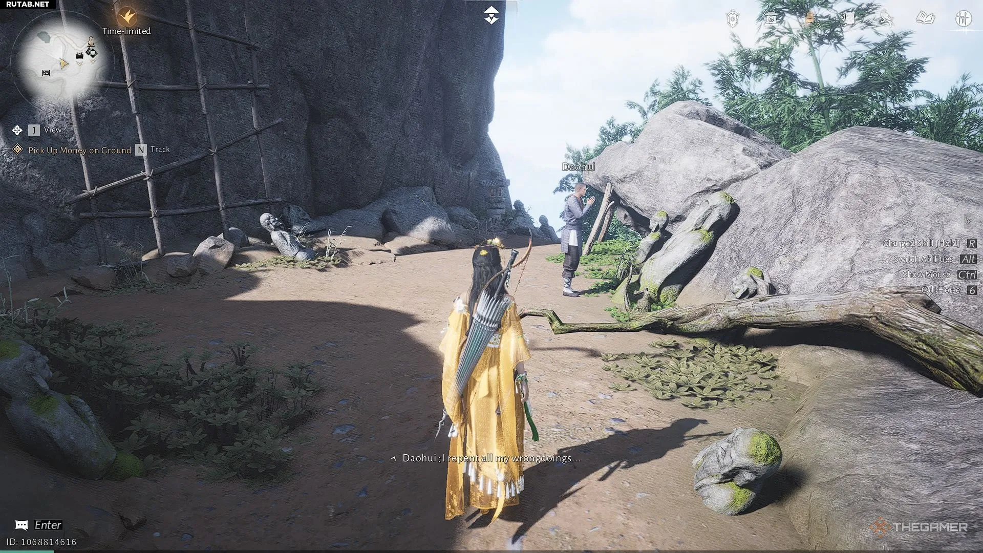 Поднявшись выше по горе, вы найдёте монаха по имени Даохуй, который молится. Поговорите с ним. Он расскажет, что пытается искупить прошлые грехи, считая себя виновным в трагедии, произошедшей в Море Бодхи.