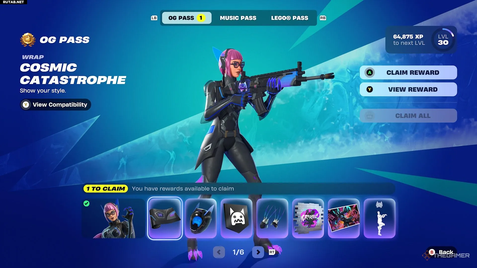 Перейдите во вкладку Пропуски в главном меню лобби и прокрутите вниз, чтобы найти свои пропуски: OG, Музыкальный и Fortnite Lego. Каждый из них будет показывать, готова ли награда к получению. Нажмите и удерживайте, чтобы разблокировать награду, после чего она появится в вашем инвентаре.