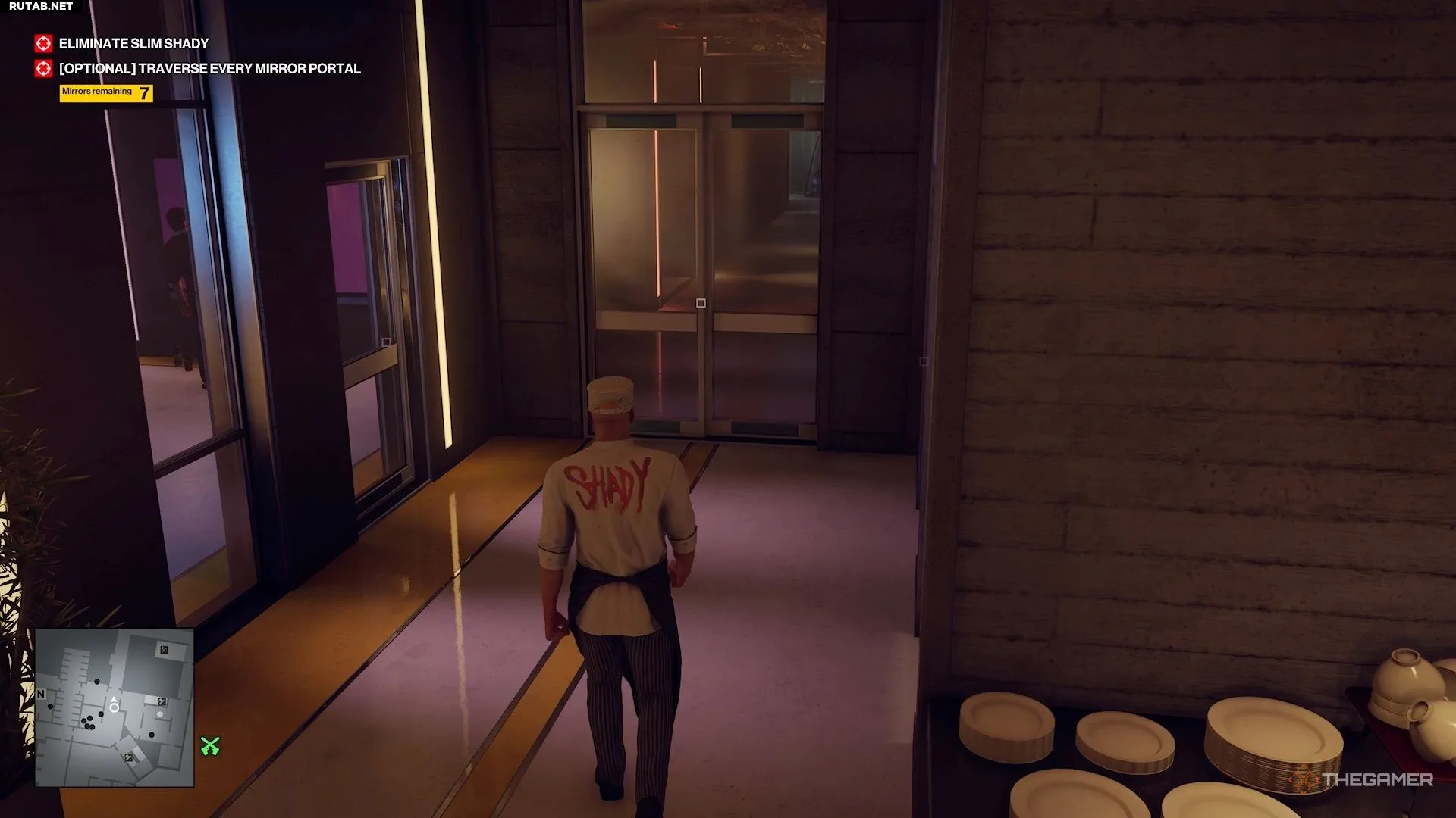 Прежде чем проходить через все зеркала, вам стоит раздобыть маскировку телохранителя, это очень поможет. Для этого сначала добудьте костюм повара тем же способом, что и на первом уровне.