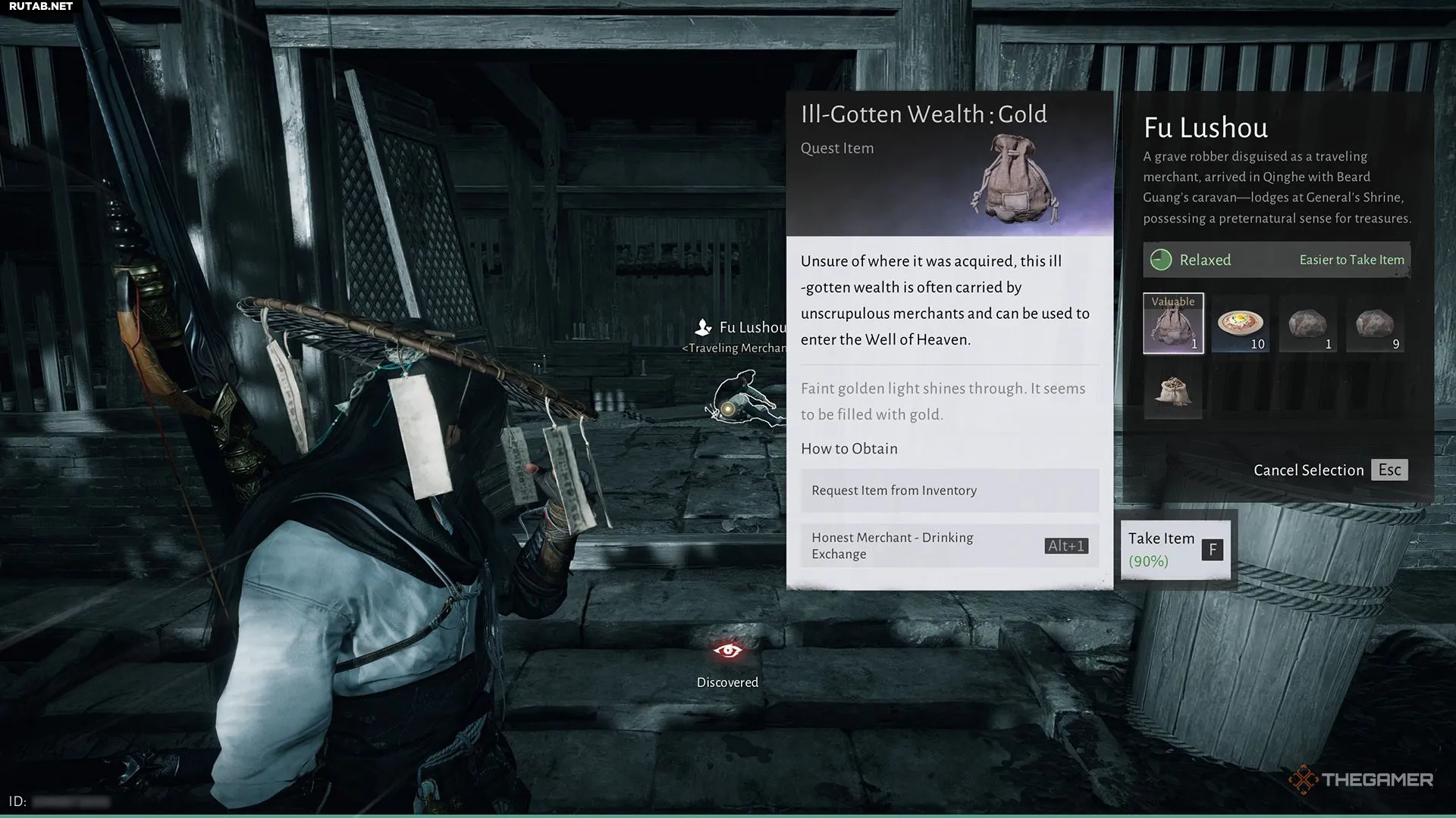 Вместо этого найдите Чжан Ихао и спросите у него о возможности вступления в секту. Для этого вам потребуется добыть три предмета из категории «Неправедное богатство» — по сути, украденные вещи.