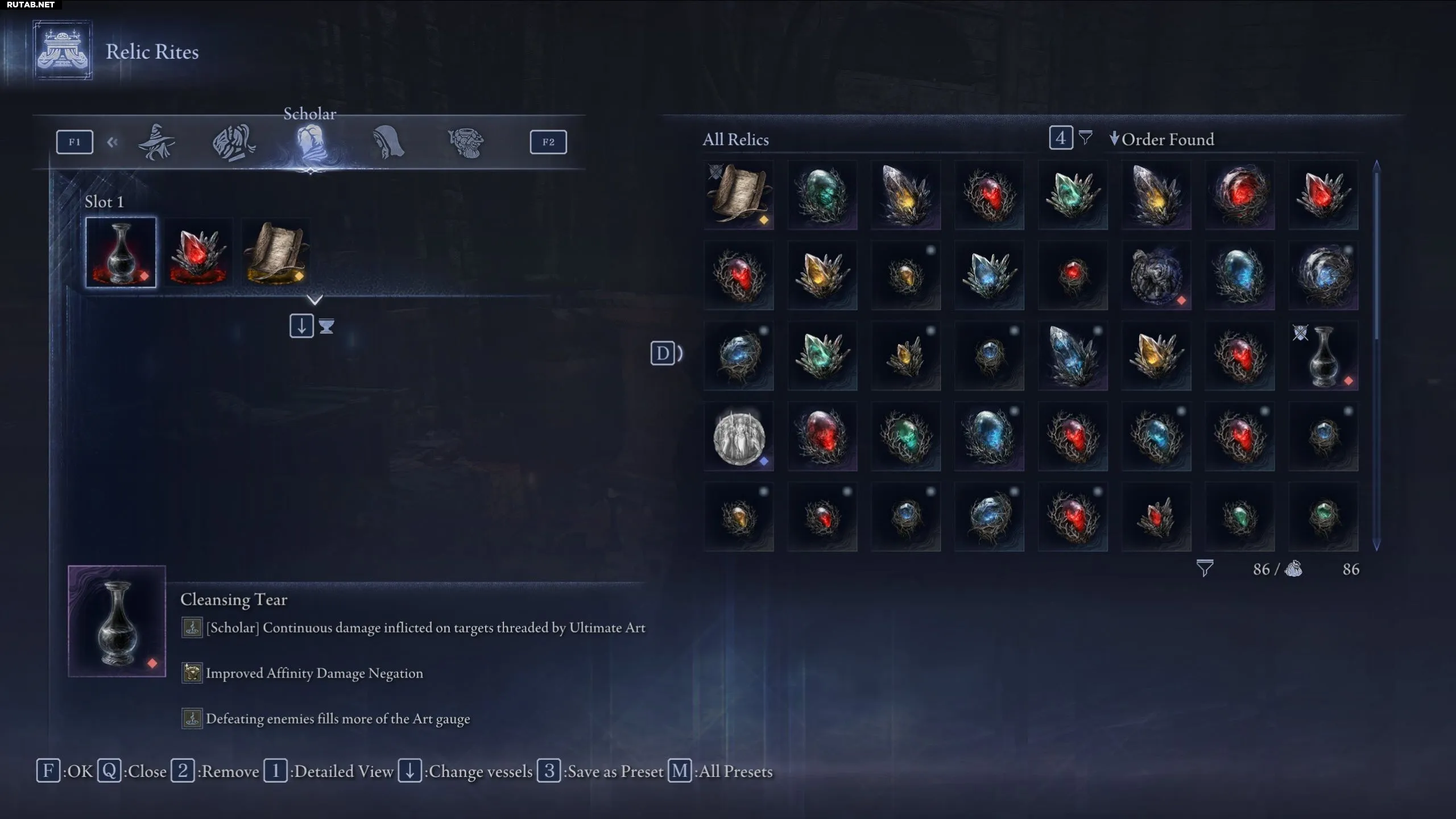 В Nightreign есть несколько реликвий, которые дадут игроку преимущество при игре за Учёного. Большинство из них ориентированы на его стиль игры, так как ему предпочтительнее держаться на расстоянии от угрозы. Они помогут поддерживать его HP, быстрее восстанавливать навыки и ультиматум, а также дадут другие уникальные усиления для Учёного.