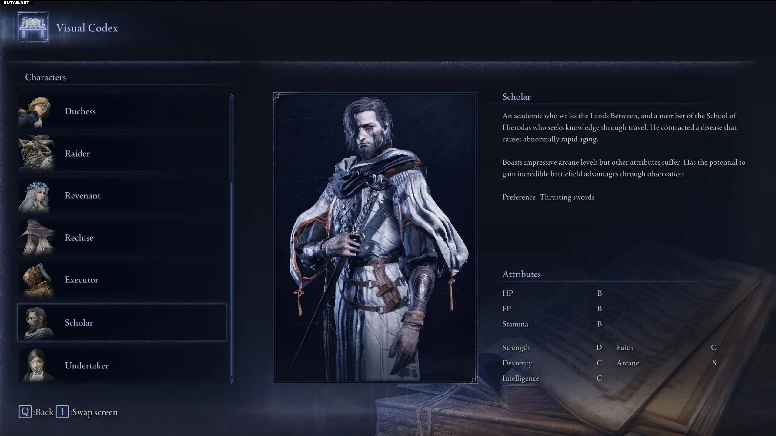 Учёный лучше всего проявляет себя с колющими мечами, особенно если это оружие, основанное на ловкости и обладающее статусным эффектом. Хотя остальные его характеристики средние, его характеристика Аркана имеет рейтинг S, что делает его одним из лучших Ночных Странников для быстрого наложения статусных эффектов на врагов. Вот список оружия, которое лучше всего подходит для Учёного в Elden Ring: Nightreign.
