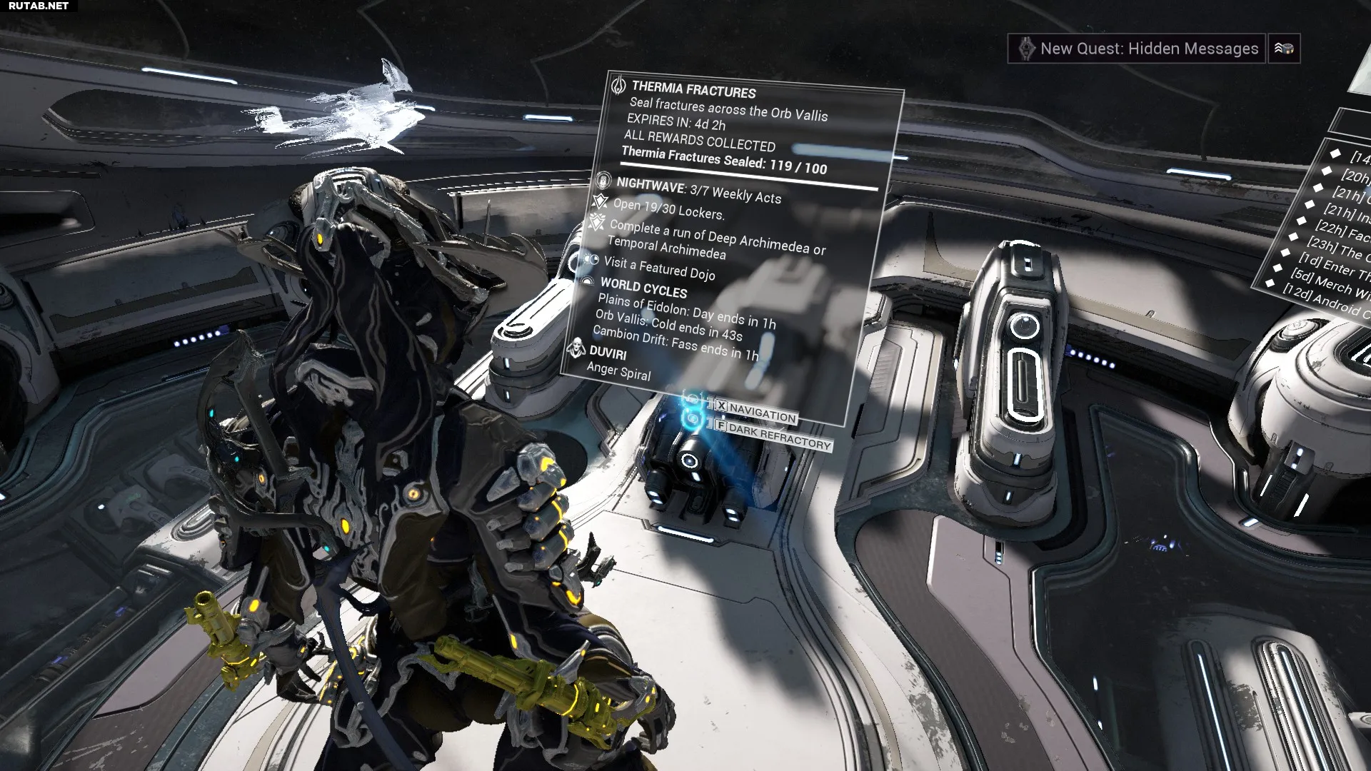 Чтобы открыть меню Темного Рефрактория, вам сначала нужно завершить квест «Старый мир», который становится доступен после прохождения квеста «Пожиратели Лотос». На это уйдет чуть больше часа. После завершения квеста подойдите к консоли навигации на корабле. Не нажимайте на неё — вы увидите, что появилась опция «Темный Рефракторий». Нажмите соответствующую кнопку на экране, чтобы открыть меню.