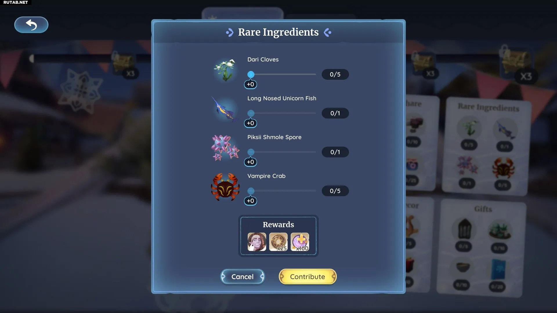 Набор «Редкие ингредиенты», возможно, самый сложный, так как для его выполнения существует очень мало лёгких путей. Хотя первый предмет, гвоздика Дари, можно купить, для остального потребуется терпение и удача.