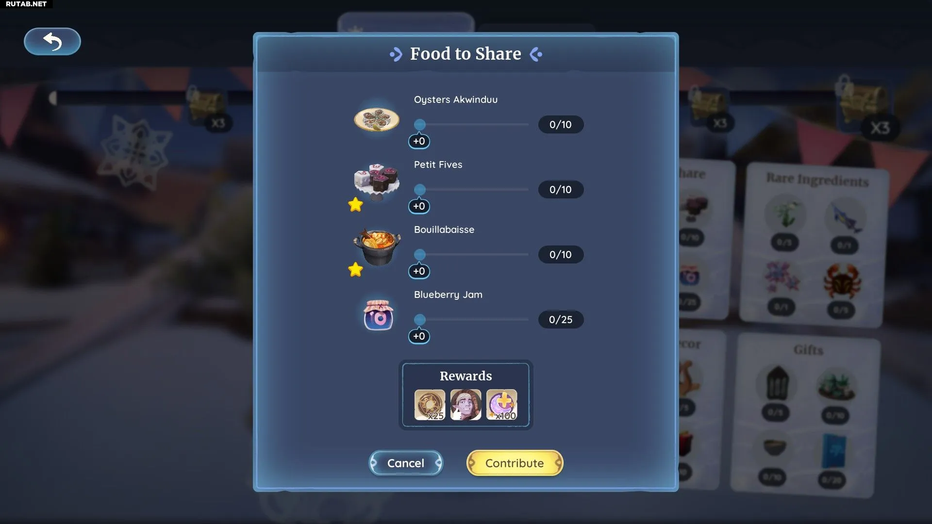 | Птифуры (звёздные) | 10 | Чтобы разблокировать этот рецепт, нужно выполнить квест Рета «Ваш заказ готов». Рецепт готовится партиями по три штуки. Для одной партии нужны: 2 масла, 1 яйцо, 1 мука, 2 сладких листа, 1 молоко, 1 яблоко, 1 кукуруза и 1 сахар. |