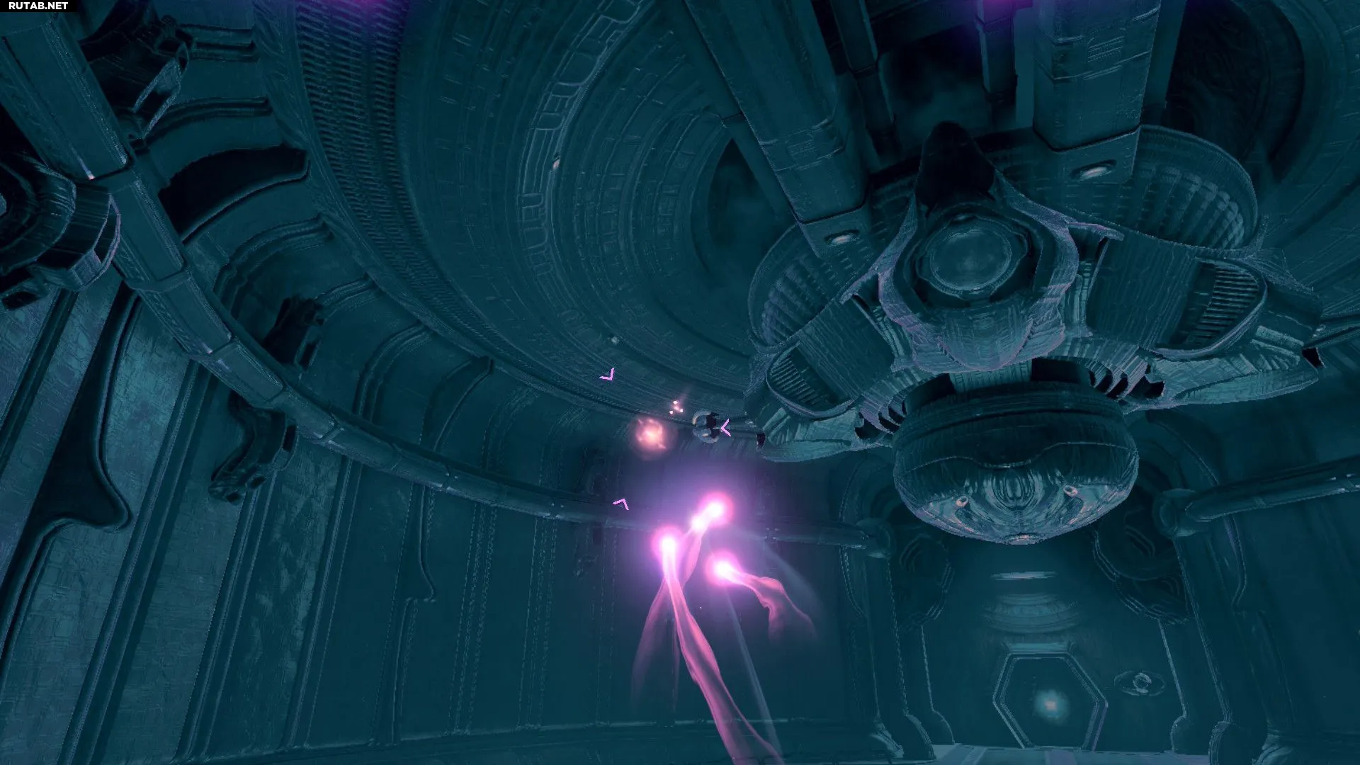 Используйте пси-привязи, чтобы раскачиваться на существах, ползающих по потолку и стенам. Этот путь приведёт к уступу с расширением для ракет.
