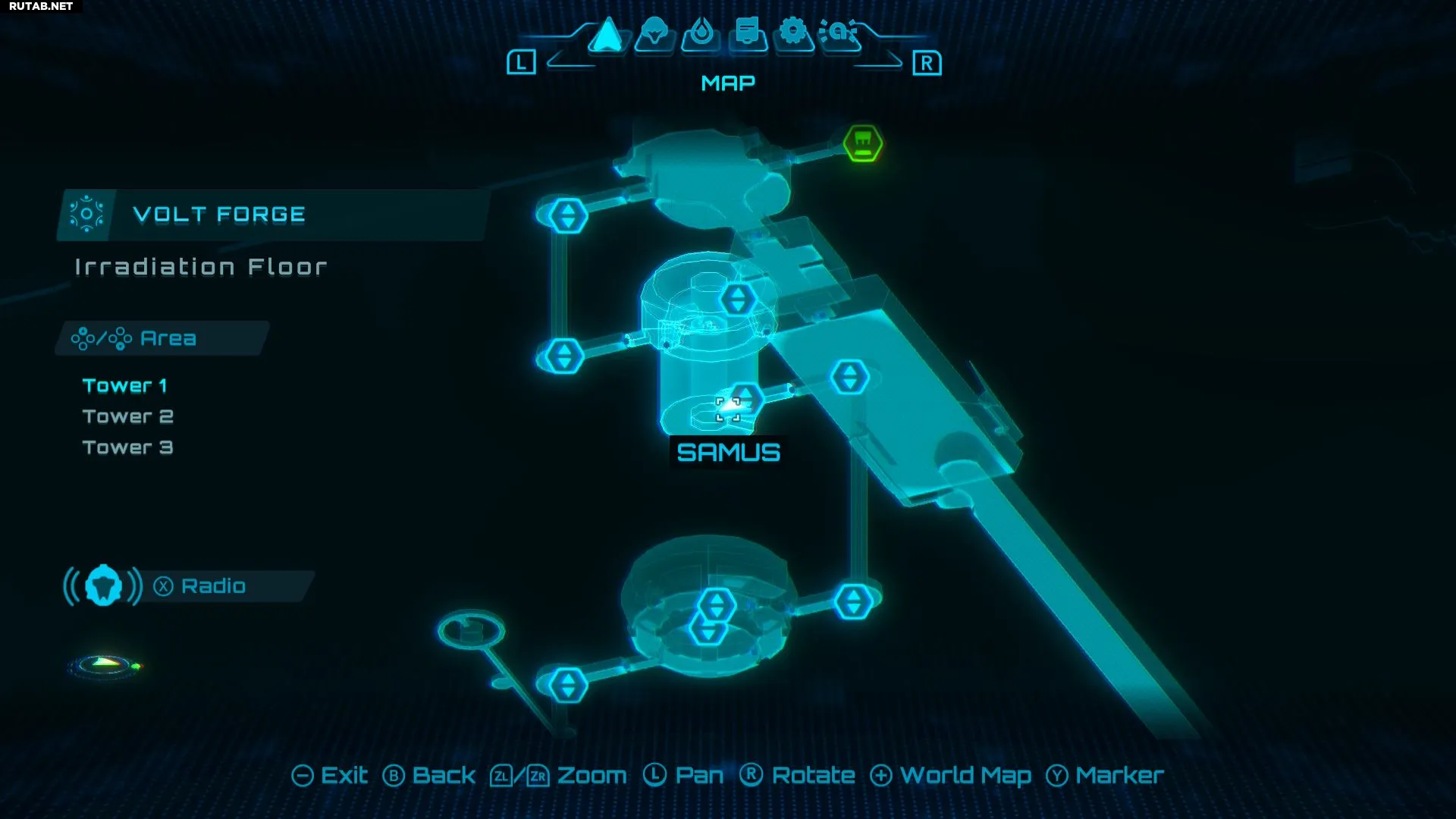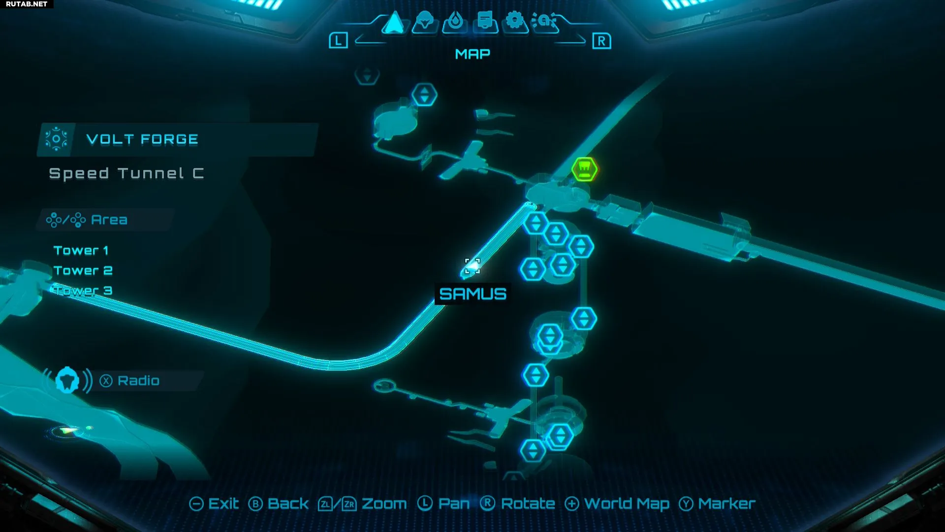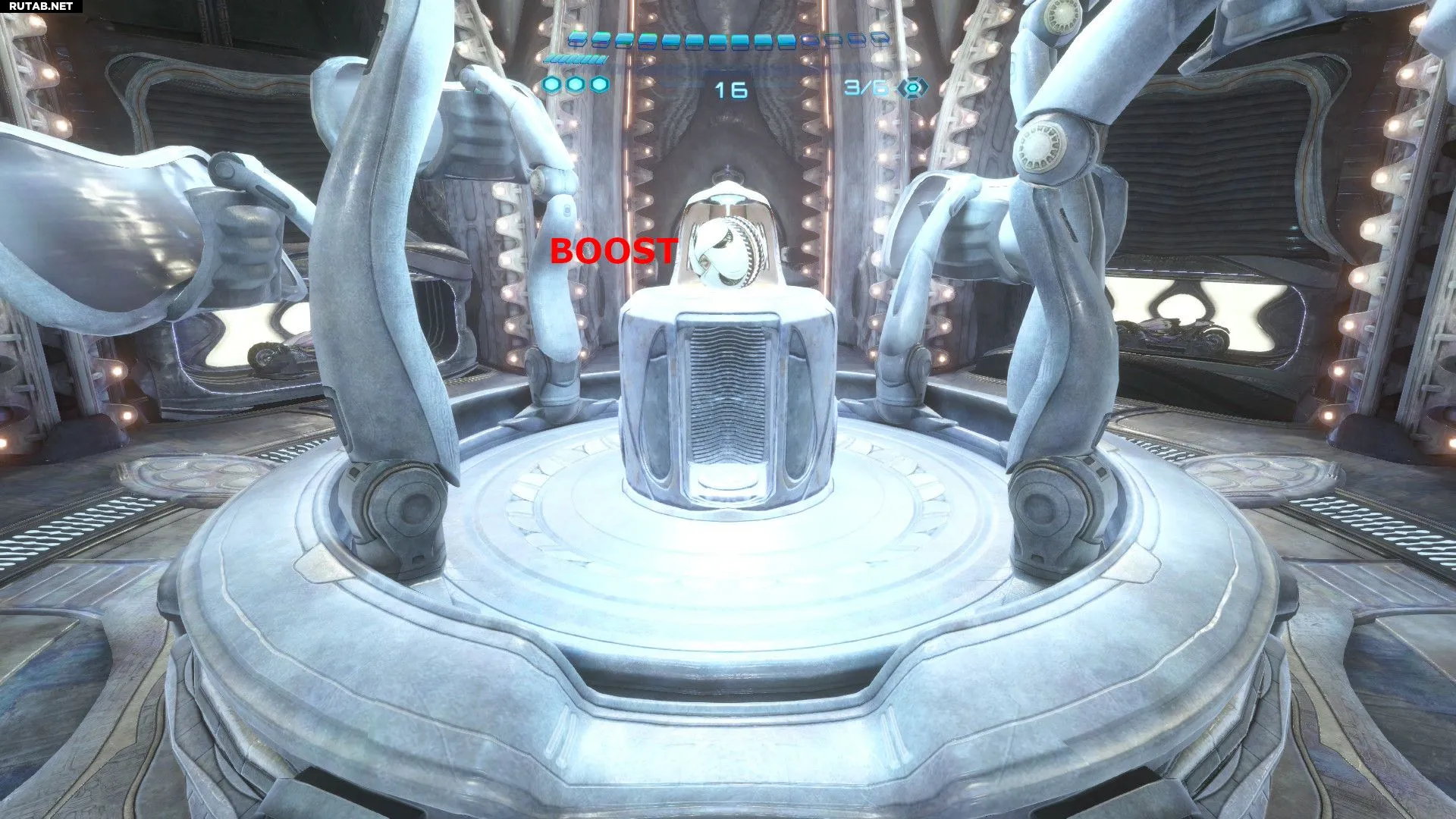 После разблокировки ускоренного шара используйте Морф-шар, чтобы попасть в основание конструкции в центре комнаты. Затем примените ускоренный шар в хафпайпах, чтобы подняться по конструкции и добраться до расширения для ракет наверху.