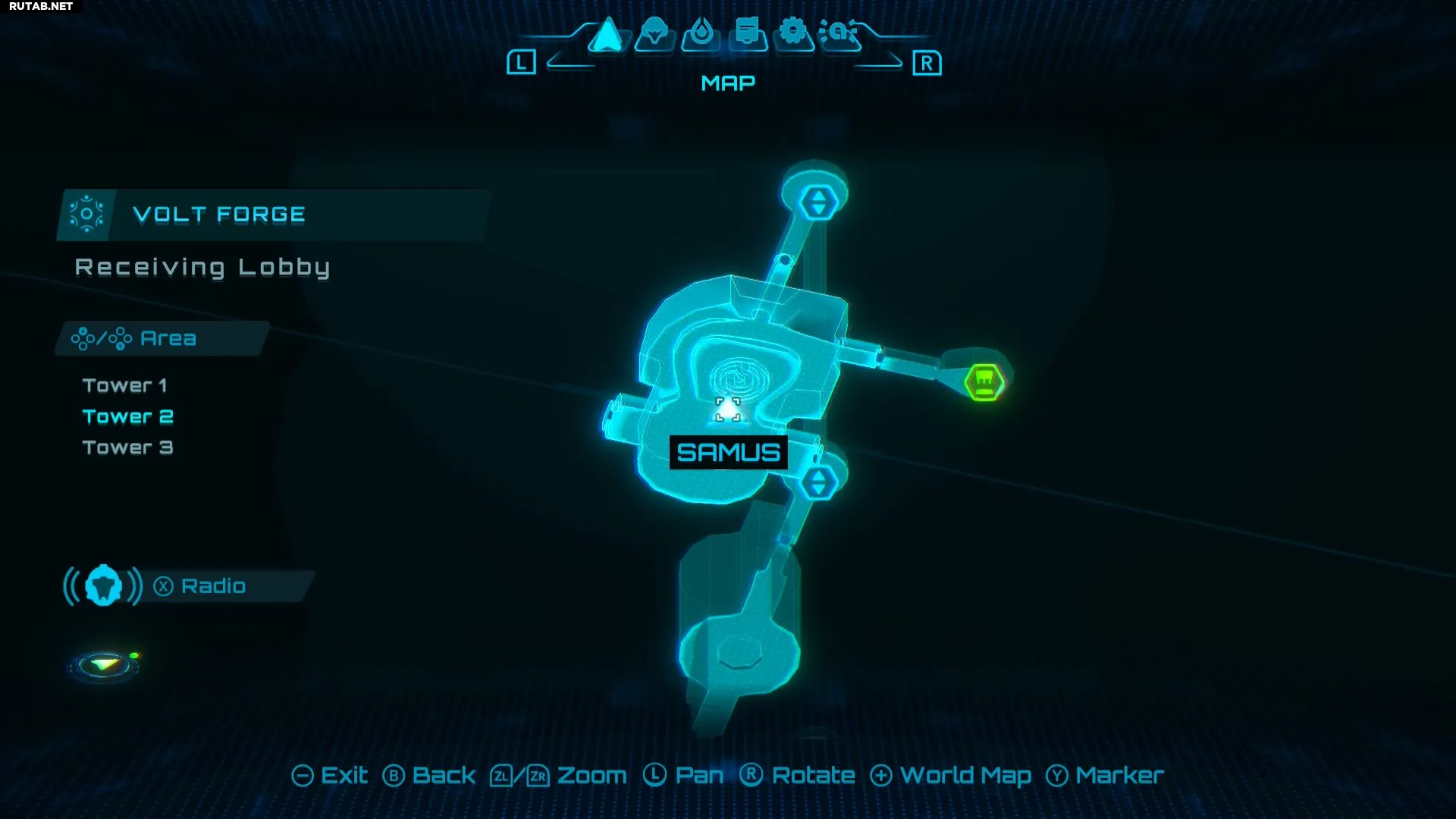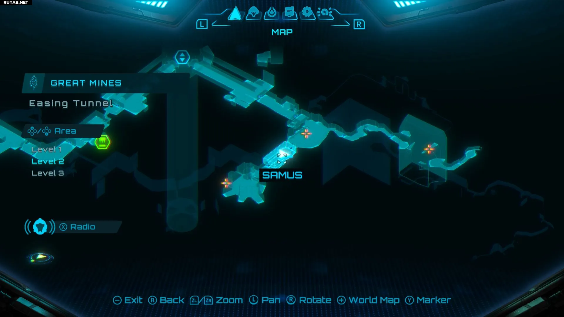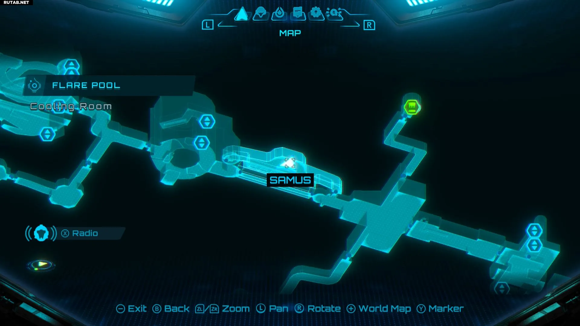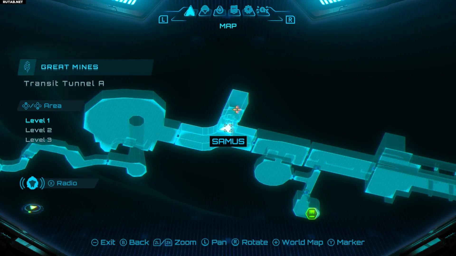 После разблокировки ускоренного шара используйте Морф-шар, чтобы попасть в основание конструкции в центре комнаты. Затем примените ускоренный шар в хафпайпах, чтобы подняться по конструкции и добраться до расширения для ракет наверху.
