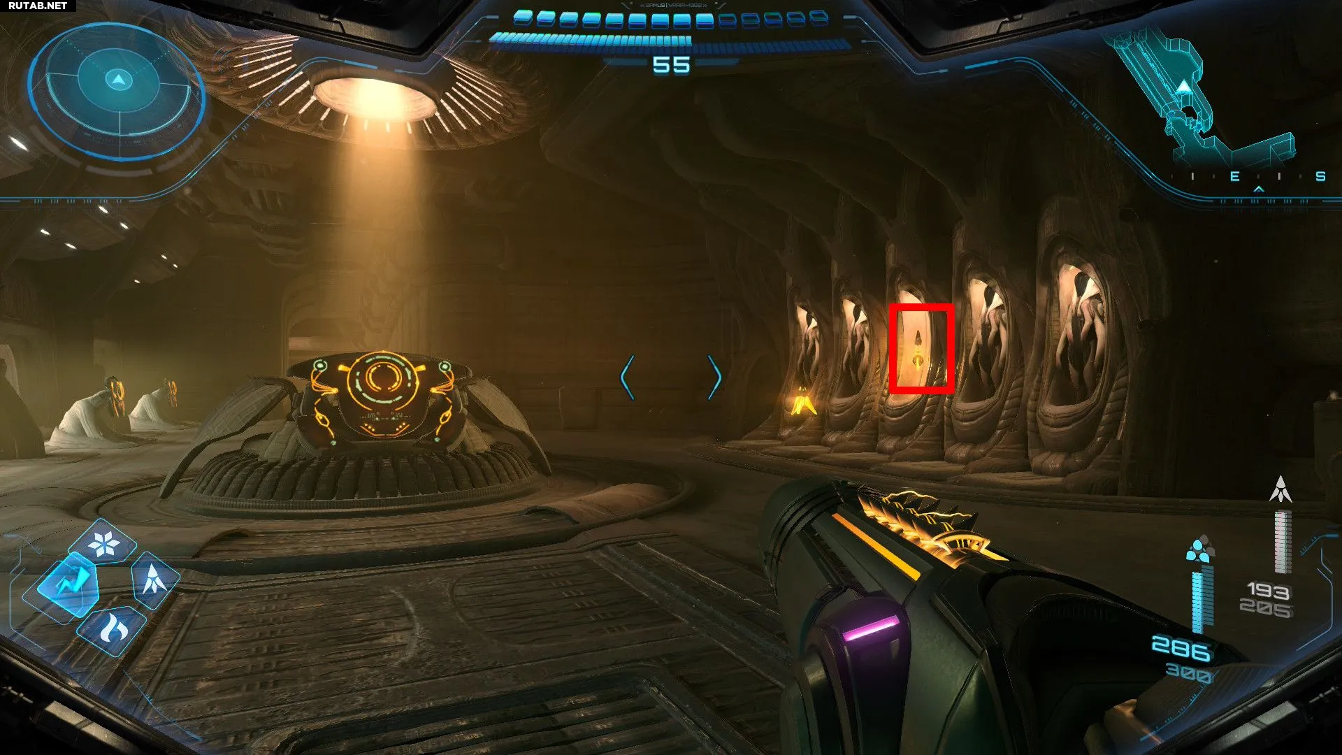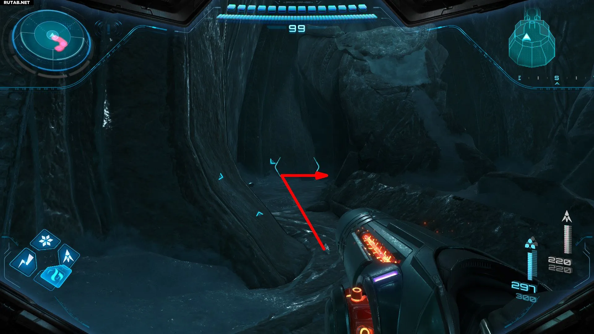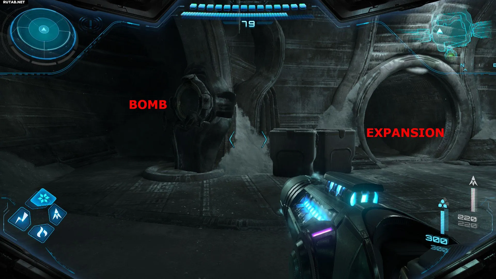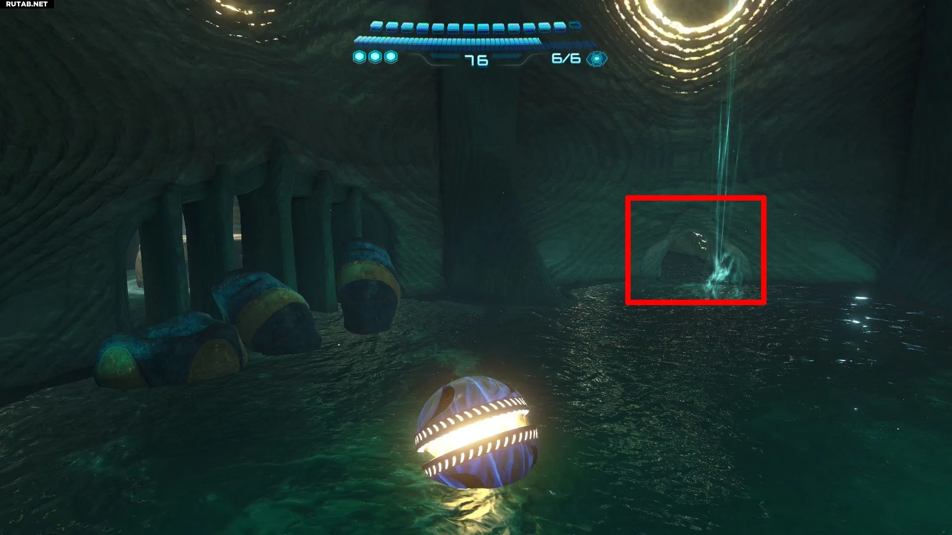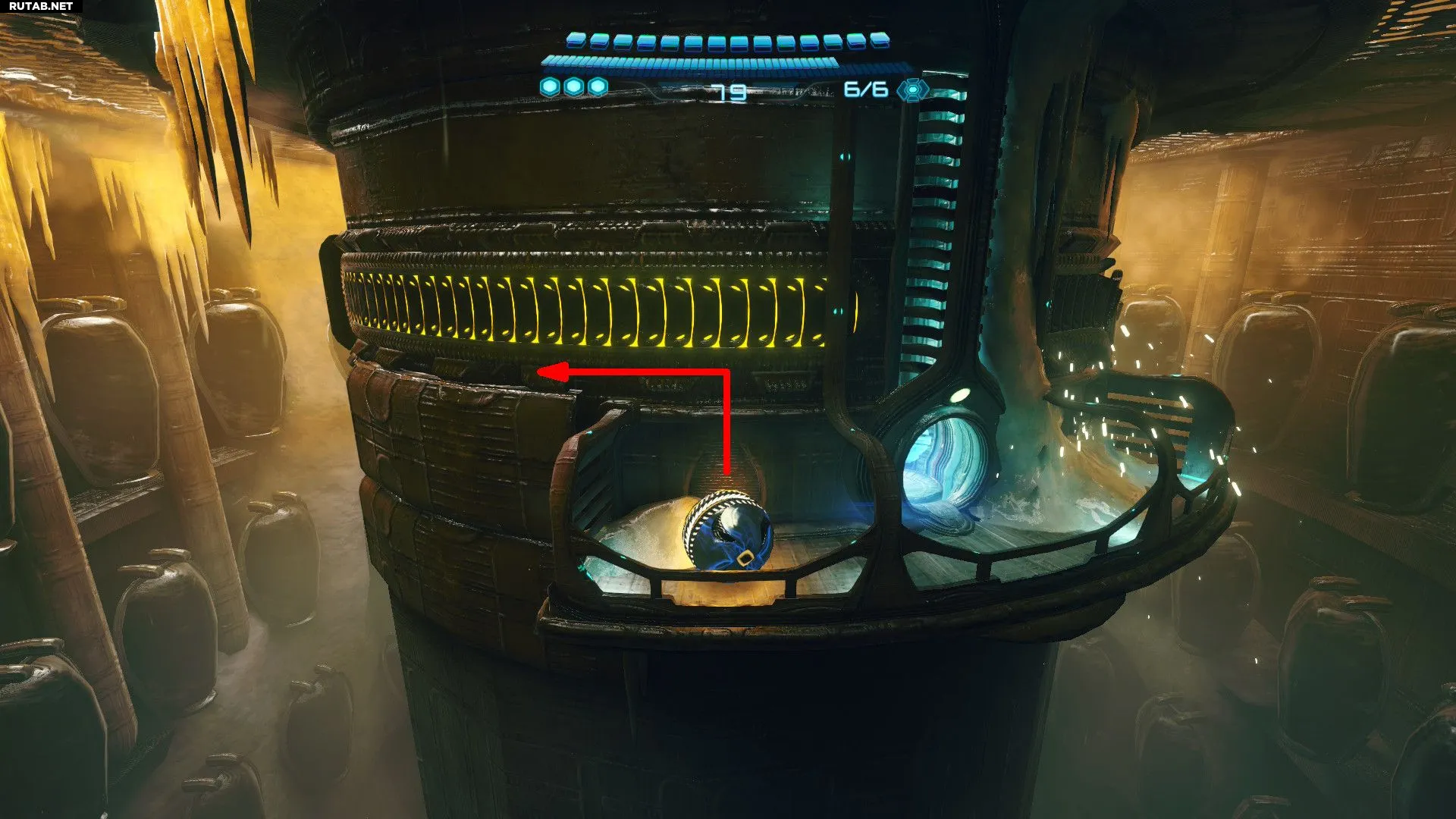 В туннеле для Морф-шара в Разрушенном зале находится ещё один красный нарост. Уничтожьте его бомбой, чтобы забрать спрятанное расширение для ракет.