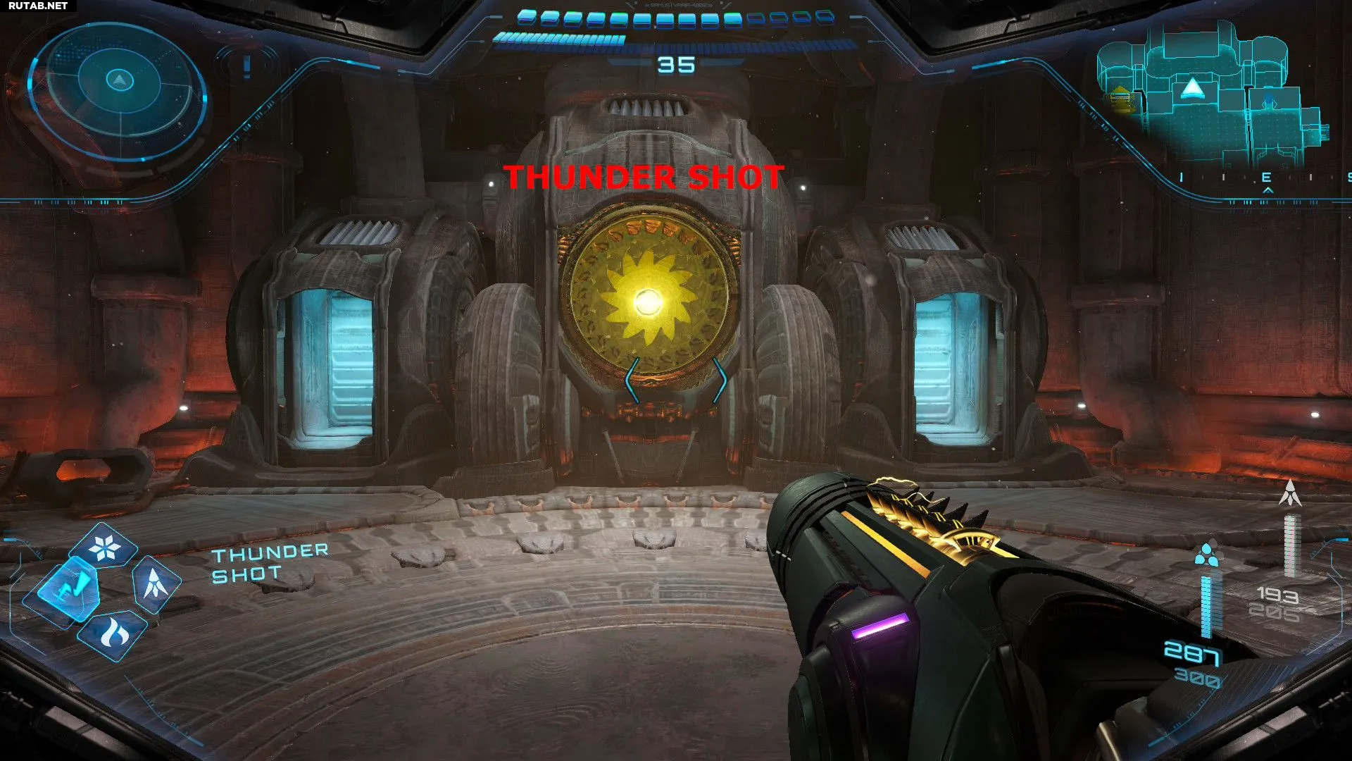 После разблокировки громовых выстрелов воспользуйтесь лифтом в фойе, чтобы вернуться на Площадку лифта. Используйте громовые выстрелы, чтобы открыть большую дверь в комнате, и соберите расширение для ракет за ней.