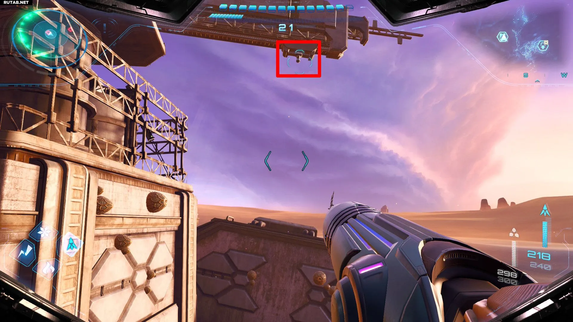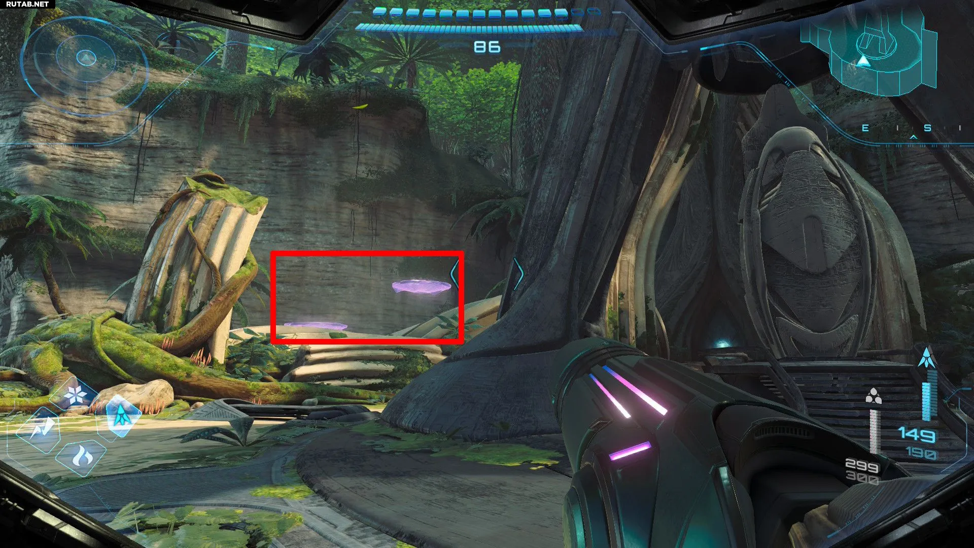 После получения Пси-ботинок используйте Пси-визор, чтобы активировать платформы в локации Привратник Утёса. Используйте эти платформы, чтобы запрыгнуть на уступ с расширением для ракет.