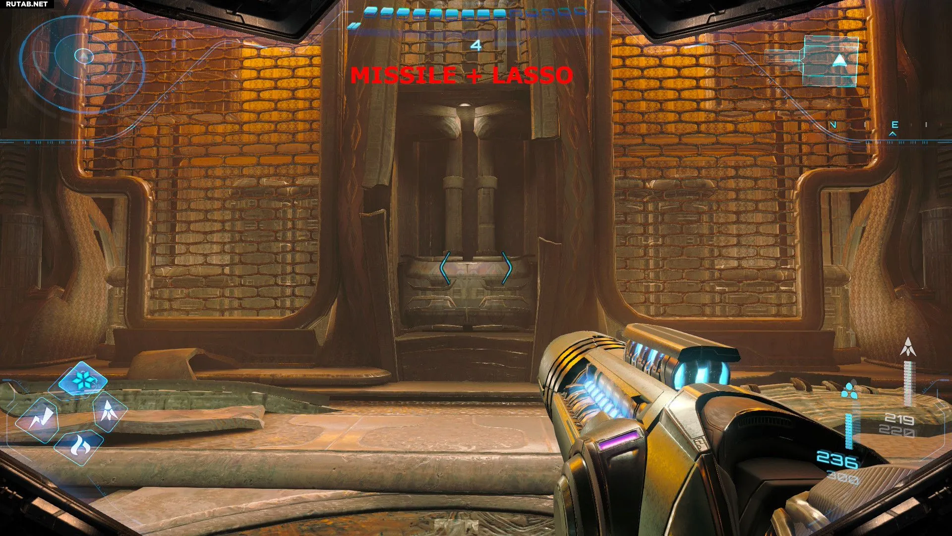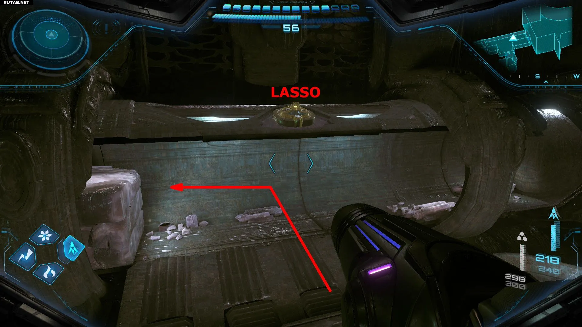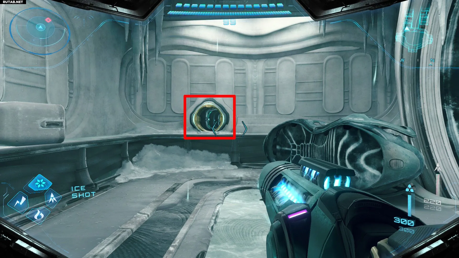 Используйте пси-лассо, чтобы снять замок с двери в биолабораториях. Пройдите по пути, очистите завал слева с помощью лассо и войдите в туннель для Морф-шара. Уничтожьте ледяную стену за туннелем с помощью огненного выстрела, чтобы открыть расширение для ракет.