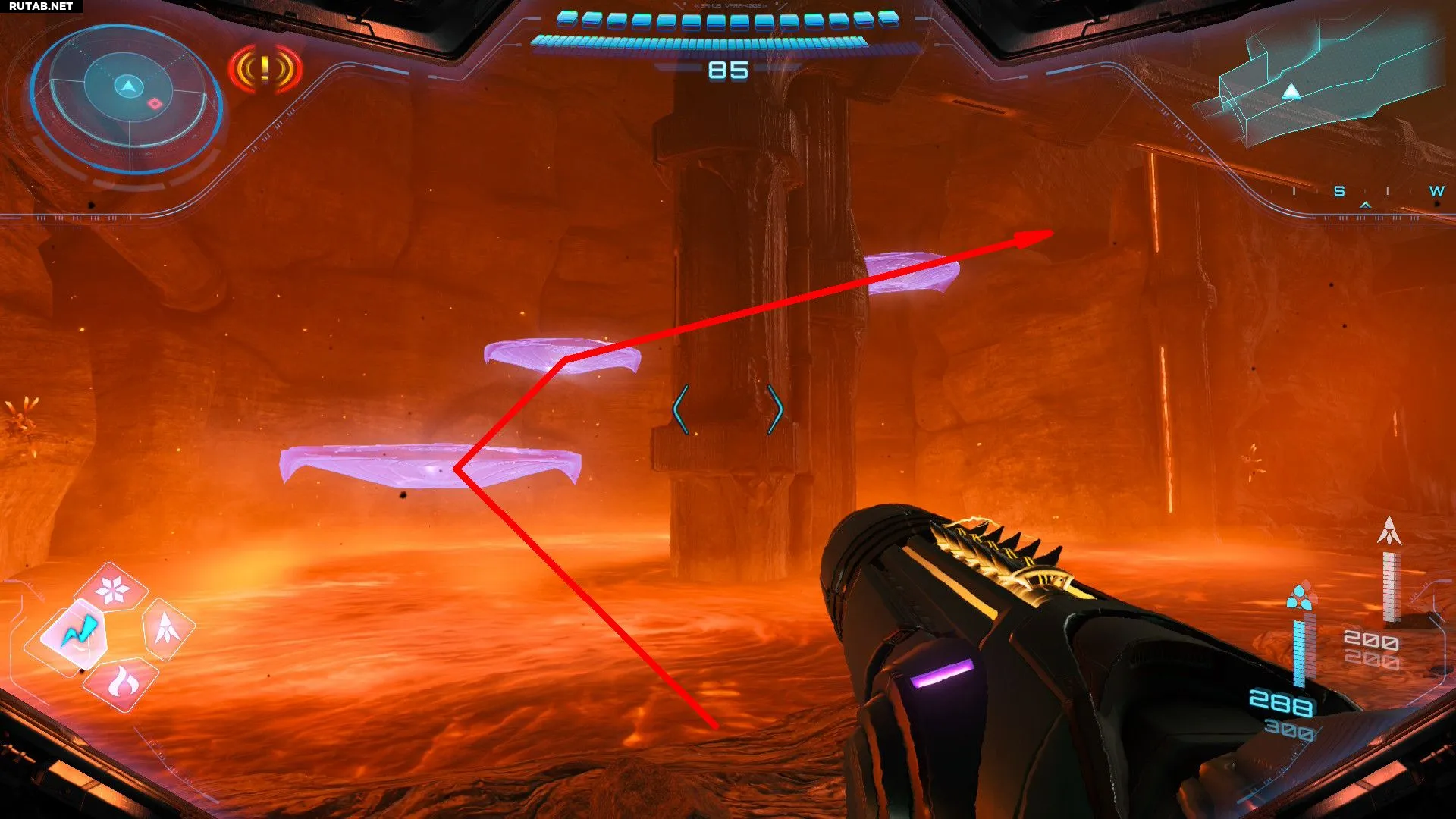 Используйте Пси-визор, чтобы активировать платформы над озером лавы. С их помощью можно добраться до расширения для ракет, если у вас уже есть Пси-ботинки.