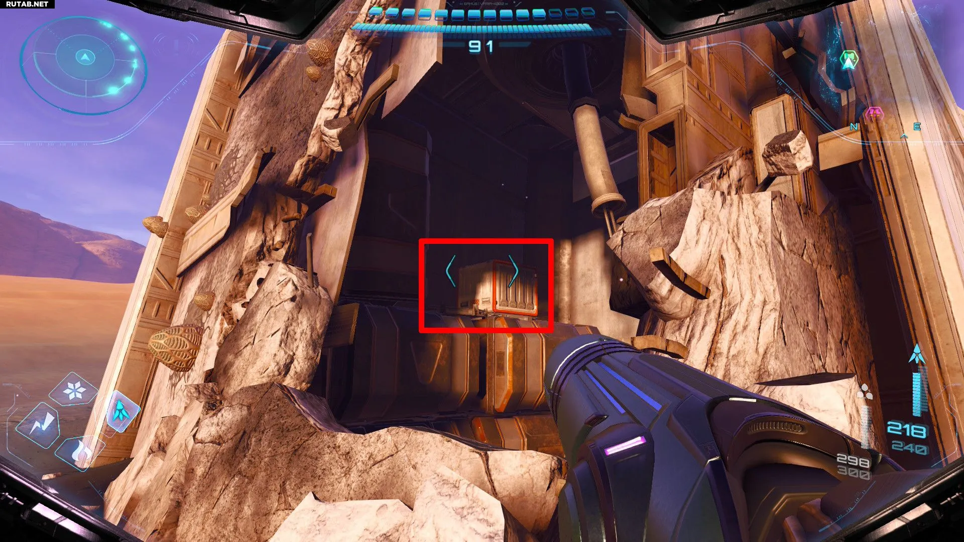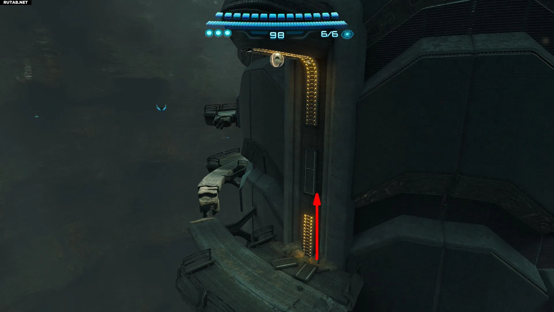 Поразите металлическую преграду на стене ракетой, чтобы открыть кронштейн. Используйте пси-лассо, чтобы потянуть его, после чего можно будет попасть в зону за ограждением с помощью Морф-шара. В верхней части этой зоны выполните двойной бомбовый прыжок, чтобы добраться до расширения для ракет.