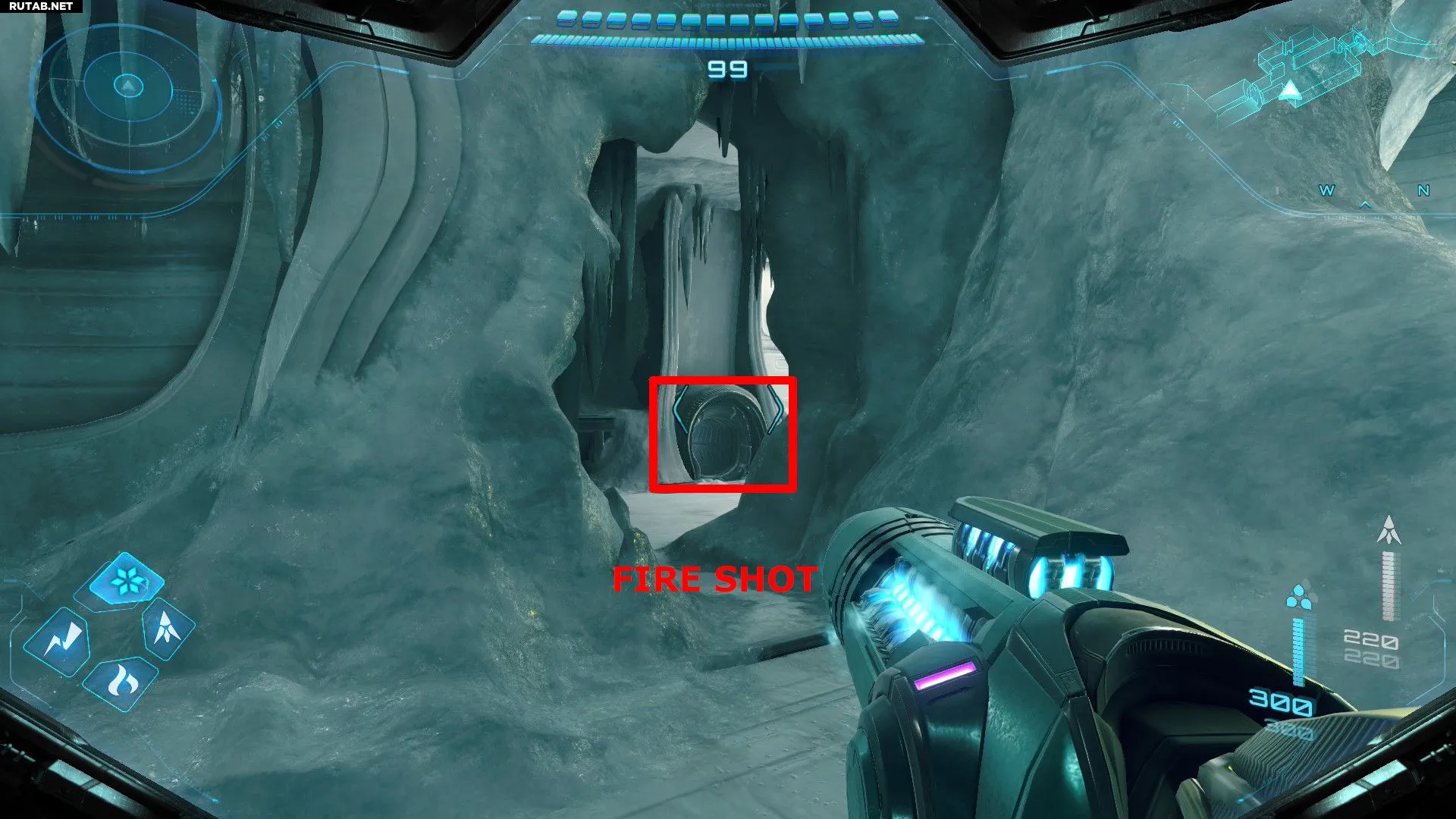 Используйте огненный выстрел, чтобы разрушить ледяную стену в этой комнате, а затем примените пси-лассо, чтобы очистить туннель для Морф-шара, который теперь стал доступен. Этот туннель ведёт к круговому проходу вокруг расширения для ракет. Чтобы убрать металлическую преграду, блокирующую его, используйте бомбу.